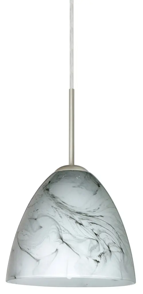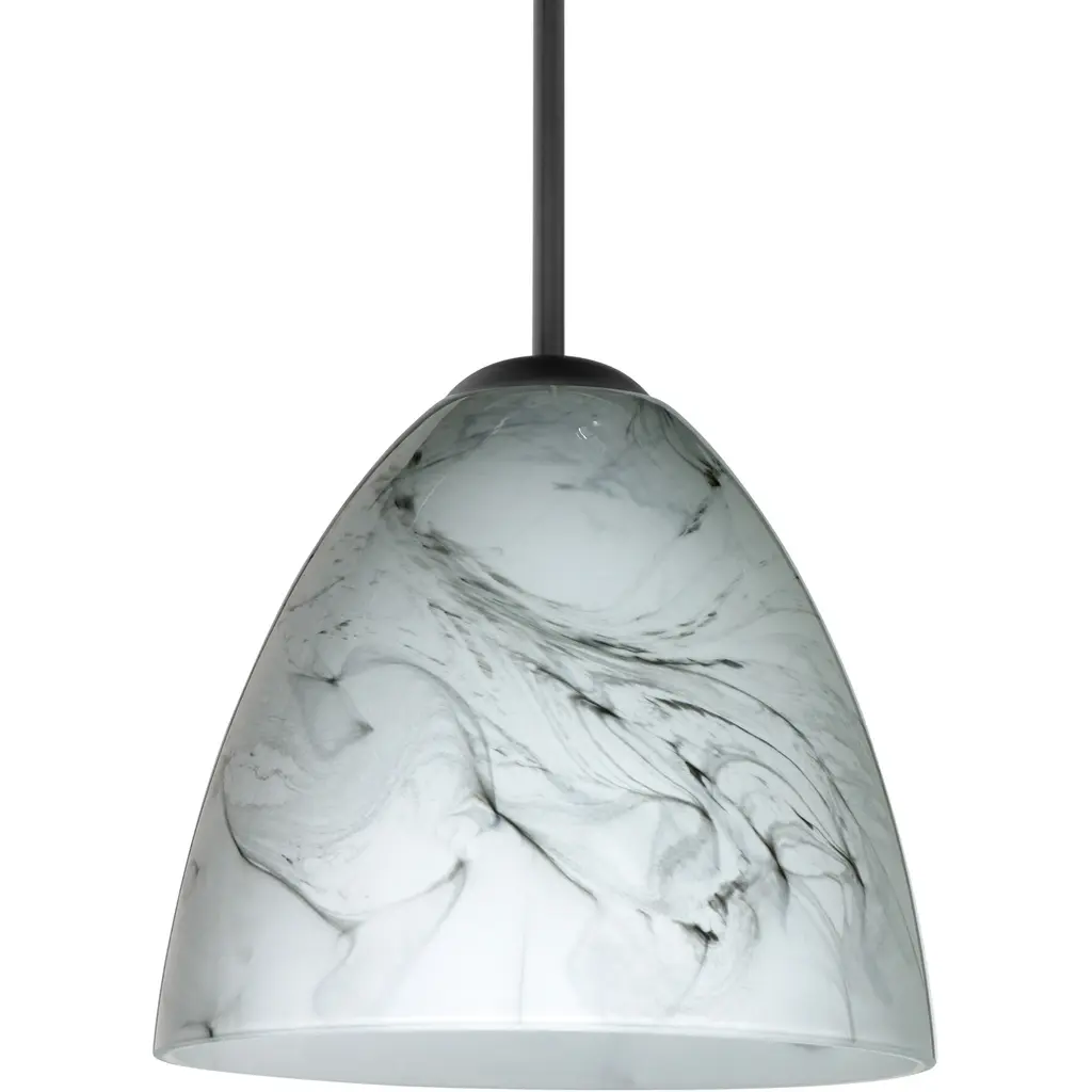 Sasha has a classical bell shape that complements aesthetic, while also built for optimal illumination. Our Carrera glass is a classic yet modern décor that gives off a soft white light. Clear molten glass is rolled in alabaster powder like frit, and then blown into shape with a semi-clear frosted white inner finish. This décor is created by rolling molten glass in small bits of white called frit. The smooth satin finish on the clear outer layer is a result of an extensive etching process. This blown glass is handcrafted by a skilled artisan, utilizing century-old techniques passed down from generation to generation. Each piece of this décor has its own artistic nature that can be individually appreciated. The cord pendant fixture is equipped with a 10' SVT cordset and a low Profile flat monopoint canopy. These stylish and functional luminaries are offered in a beautiful Black finish.