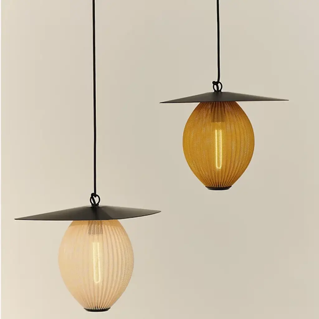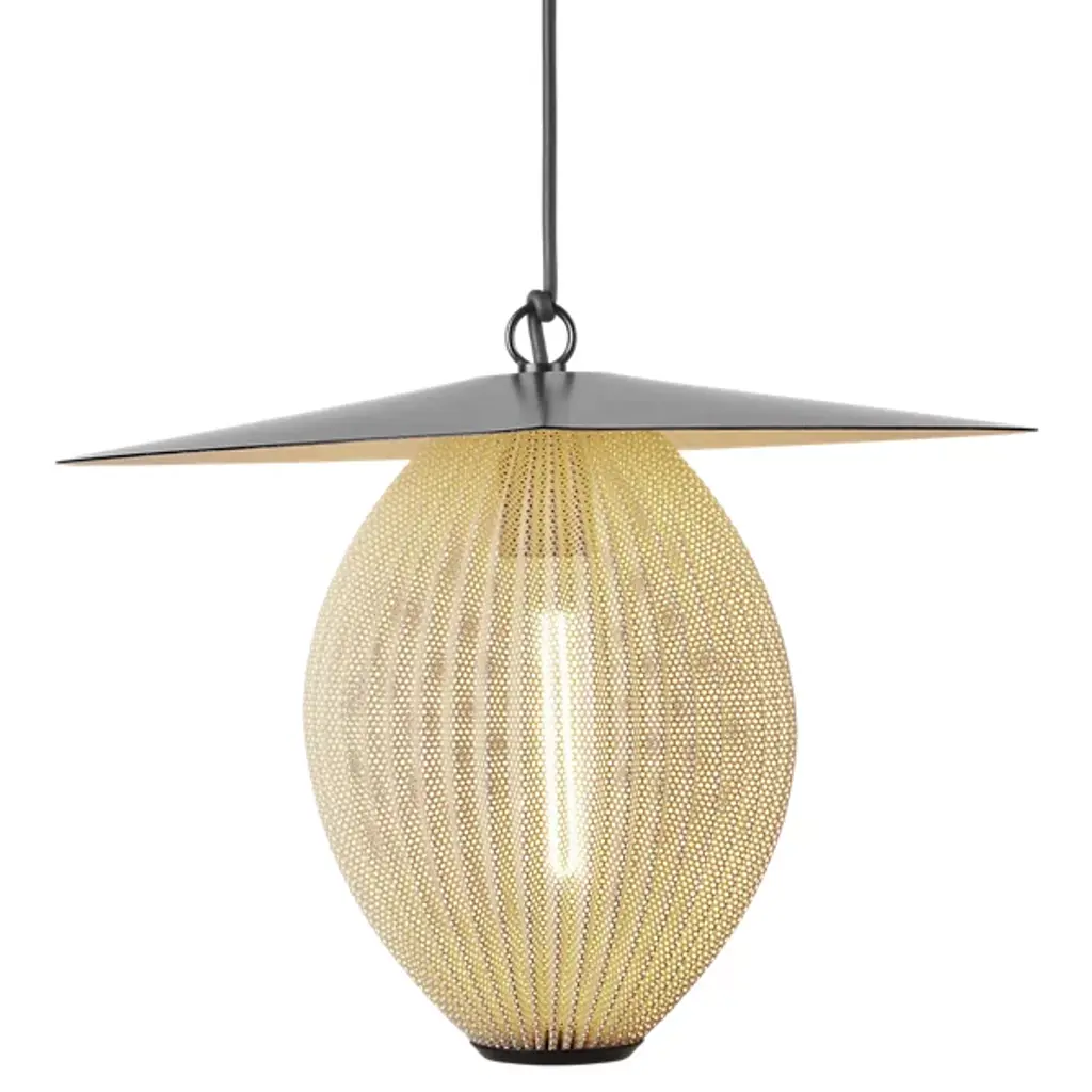 The Satellite Outdoor Pendant is presented by Gubi, based on an original 1953 design by Mathieu Matégot. Modernist, whimsical, and sculptural, this luminary features a composition of an ovoid shade crafted from a perforated sheet of stainless steel, which is then topped with an aluminum piece with an outdoor-focused finish. Even after seventy years since the Satellite’s first iteration, the Satellite Outdoor Pendant will animate your spaces with light and time-tested luxury aesthetic.
