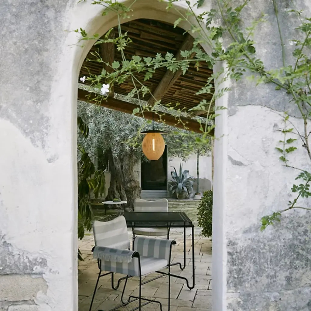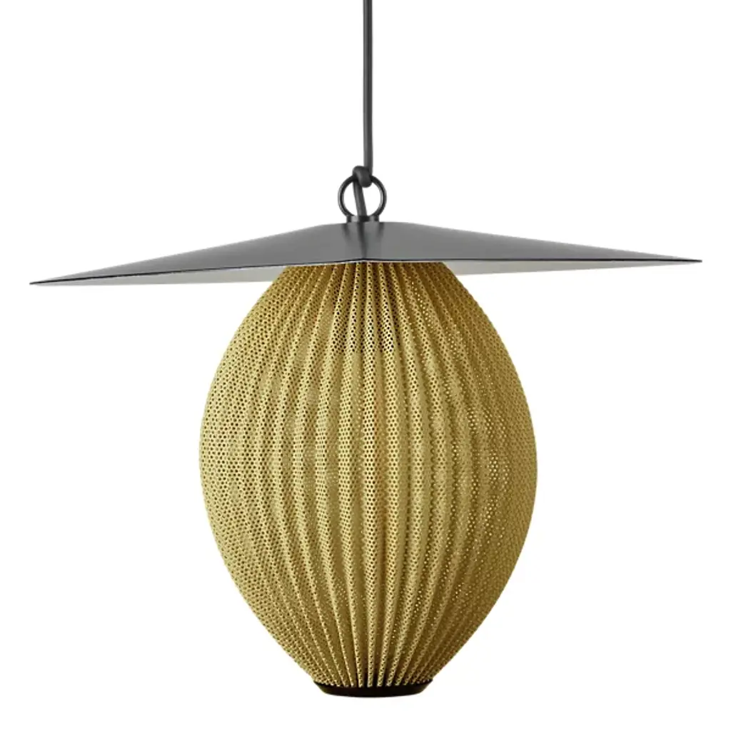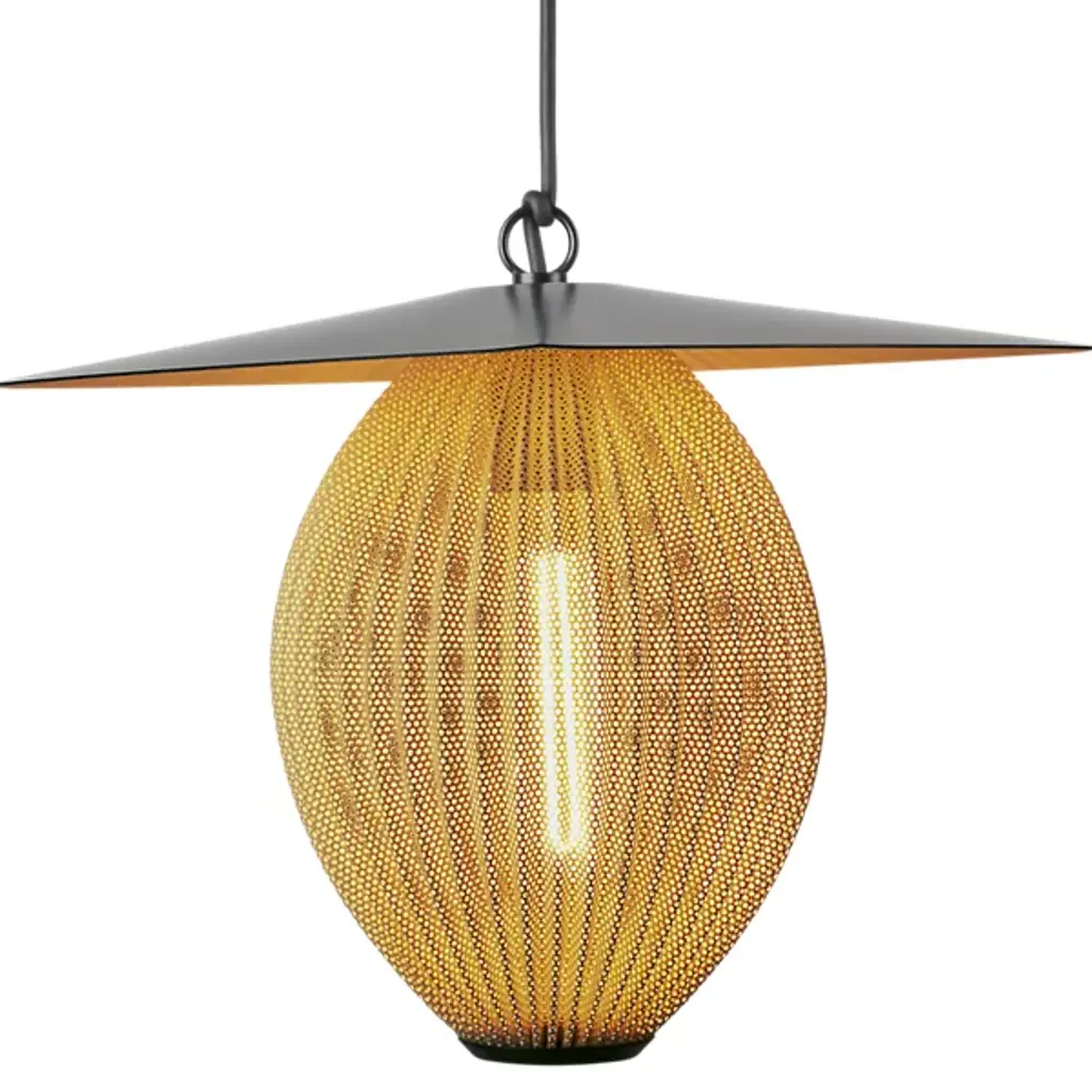 The Satellite Outdoor Pendant is presented by Gubi, based on an original 1953 design by Mathieu Matégot. Modernist, whimsical, and sculptural, this luminary features a composition of an ovoid shade crafted from a perforated sheet of stainless steel, which is then topped with an aluminum piece with an outdoor-focused finish. Even after seventy years since the Satellite’s first iteration, the Satellite Outdoor Pendant will animate your spaces with light and time-tested luxury aesthetic.