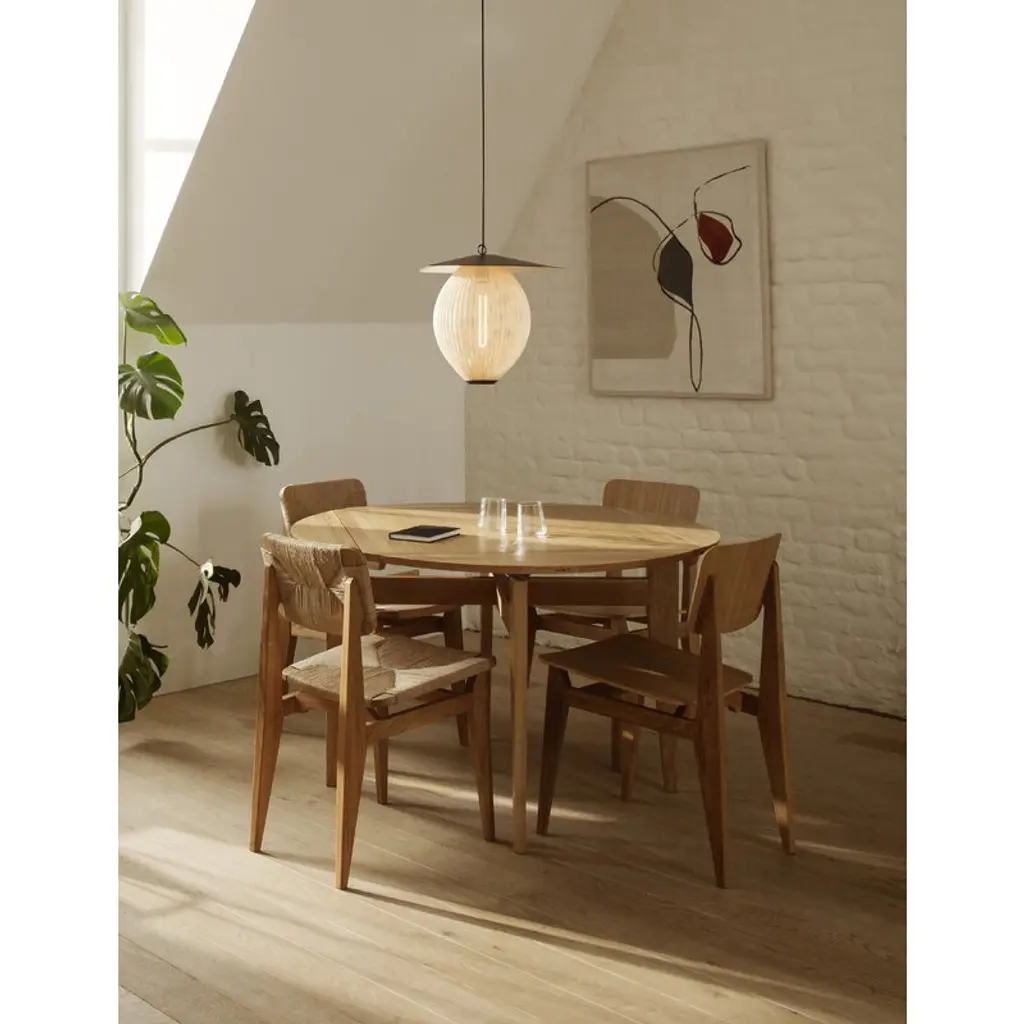 GUBI has reissued the fascinating Satellite pendant light Mathieu Matégot designed in 1953. The lantern-like pendant is an application of Rigitulle, a technique and material invented by the French designer himself: a sheet of metal is bent and folded to form an oblong shape. The perforated and pleated metal shade creates an illusion of soft fabric and filters light in a pleasant, festive manner. Satellite has a unique, colorful design that catches the eye immediately. Its name is Matégot’s tribute to the scientific progress in France after the Second World War.