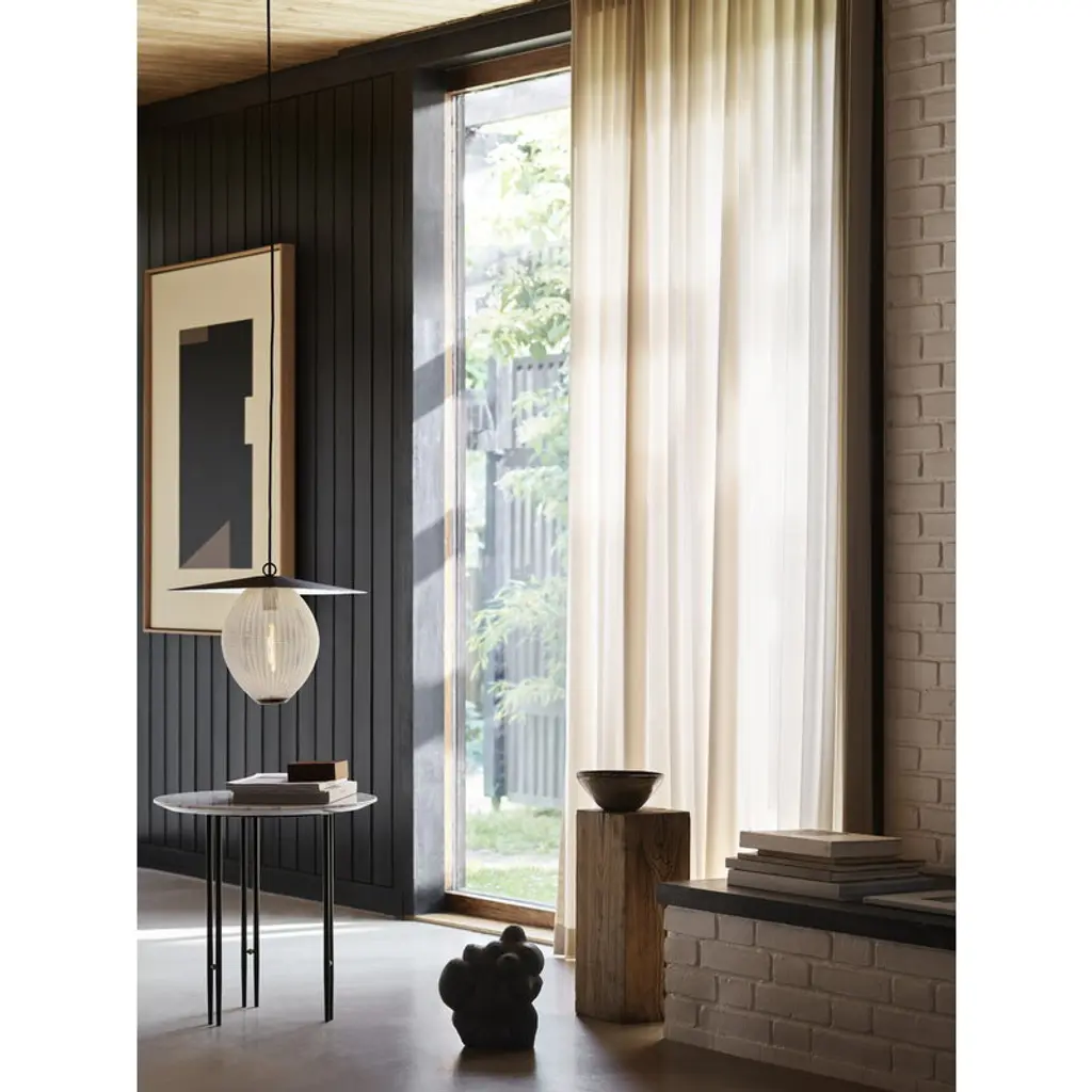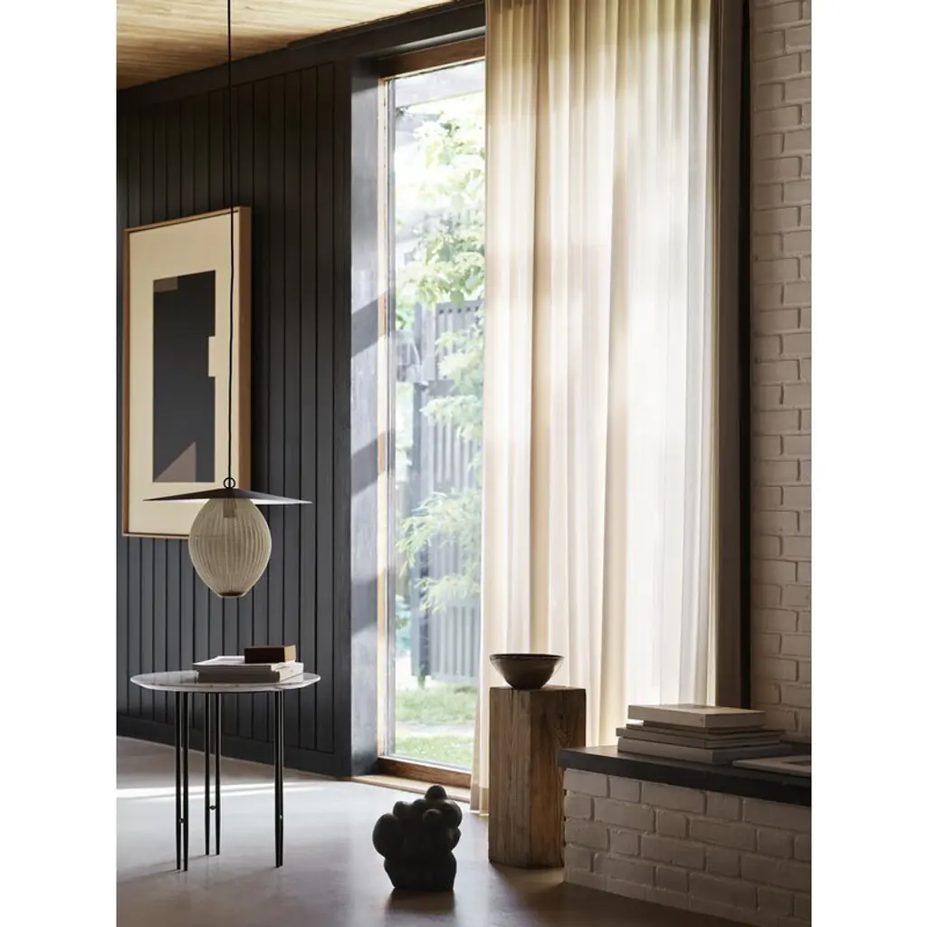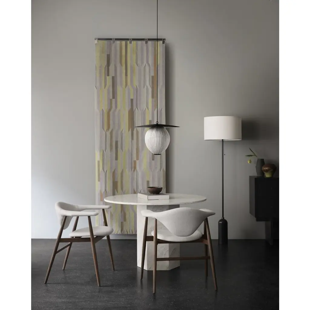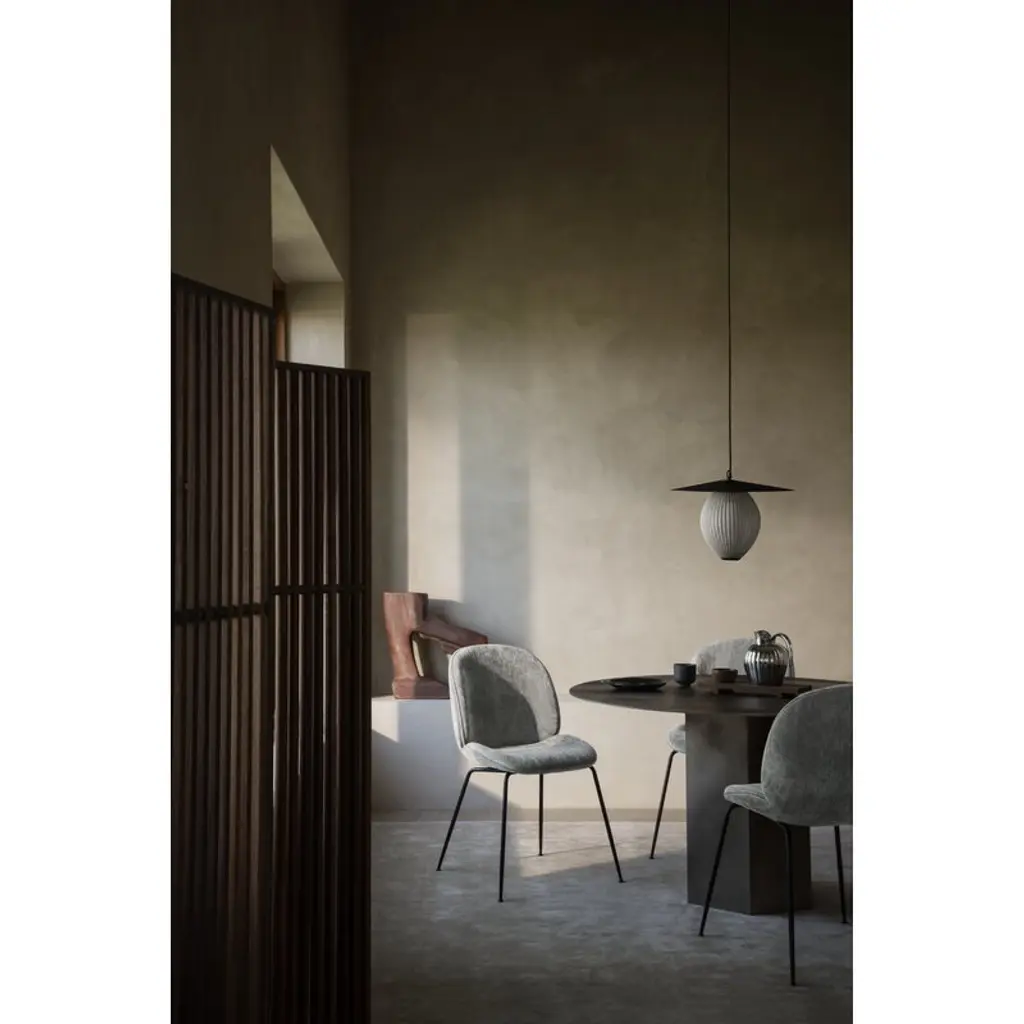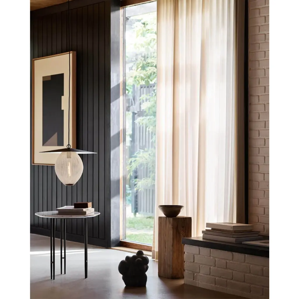 GUBI has reissued the fascinating Satellite pendant light Mathieu Matégot designed in 1953. The lantern-like pendant is an application of Rigitulle, a technique and material invented by the French designer himself: a sheet of metal is bent and folded to form an oblong shape. The perforated and pleated metal shade creates an illusion of soft fabric and filters light in a pleasant, festive manner. Satellite has a unique, colorful design that catches the eye immediately. Its name is Matégot’s tribute to the scientific progress in France after the Second World War.