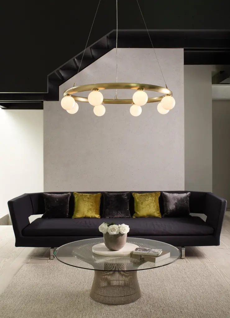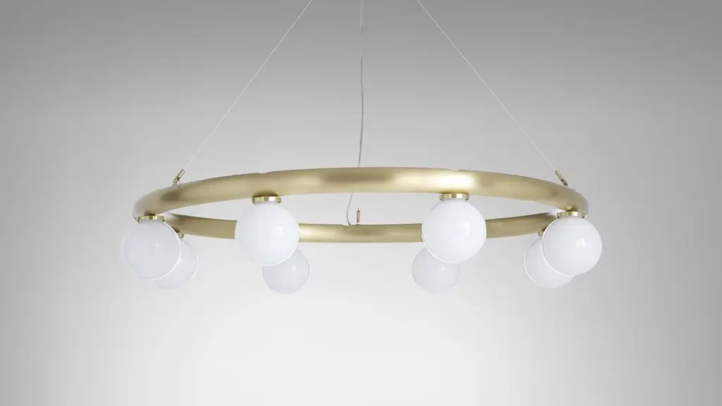 Orb pendant by CTO LightingMaterials: Satin brass, opal glass shades, stainless steel suspension wire/clear flexDimensions: W 120 x D 120 x H 20 cm 8 x G9, 25w max halogen (or 2.3w LED 2700k)weight 11kg (24.3lbs)supplied with 2000mm (78.8”) flex and suspension wire as standard (adjustable on site)additional flex and suspension wire $110 per 1000mm (39.4”)for installation a minimum total drop of 600mm (24”) is required, maximum 3000mm (118”)no bulbs suppliedmounts onto 4” junction boxFounded in 1998 by Chris and Clare Turner, CTO Lighting launched their first collection on the guiding principles of designing lights of uncompromising quality, using only the finest materials and working with elite British craftsmen. This collection of lighting symbolised elegance and the excellence of British design and manufacturing; the benchmark for all future collections.