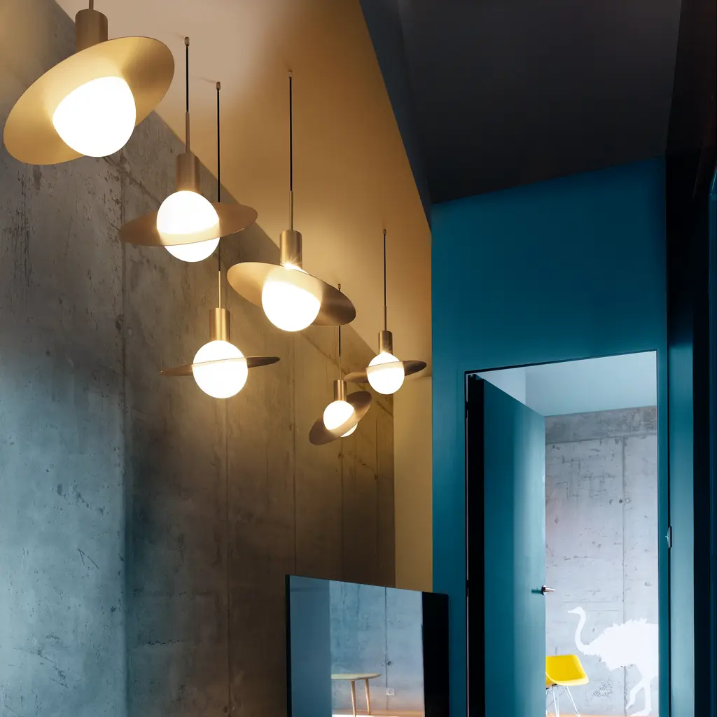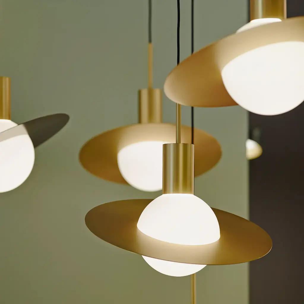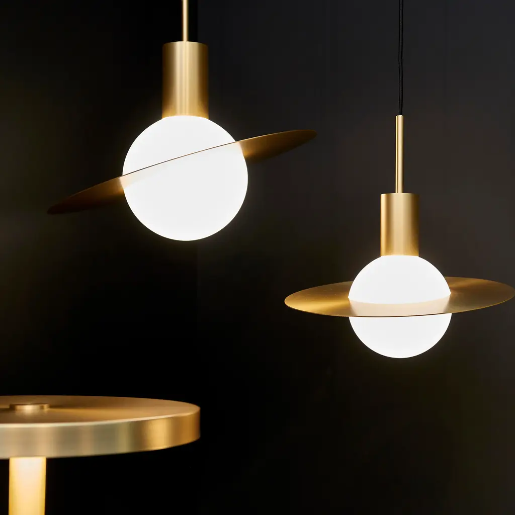 Whether lighting needs require a single “planet” or an entire galaxy, this luminous sphere creates its own cosmos. Designer Herve? Langlais posits a mouth-blown opal glass orb encircled with a solid-brass ring for Saturne, available in 2 sizes that each incorporate an appropriately sized LED light source. And for larger-scale installations, pendants can also be clustered from a single canopy in either a circular model in a range of standard sizes or a custom rectangular version.
