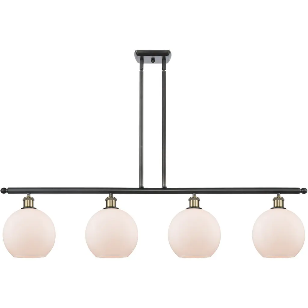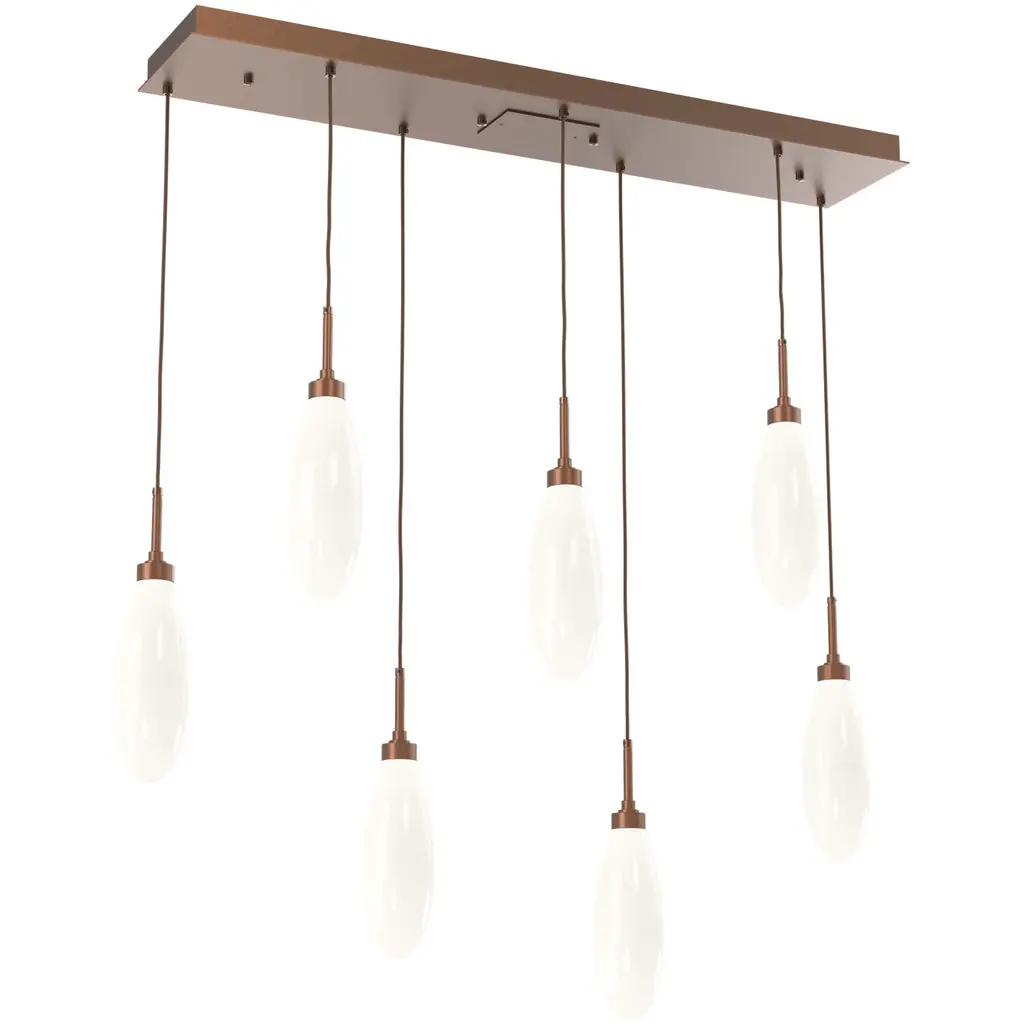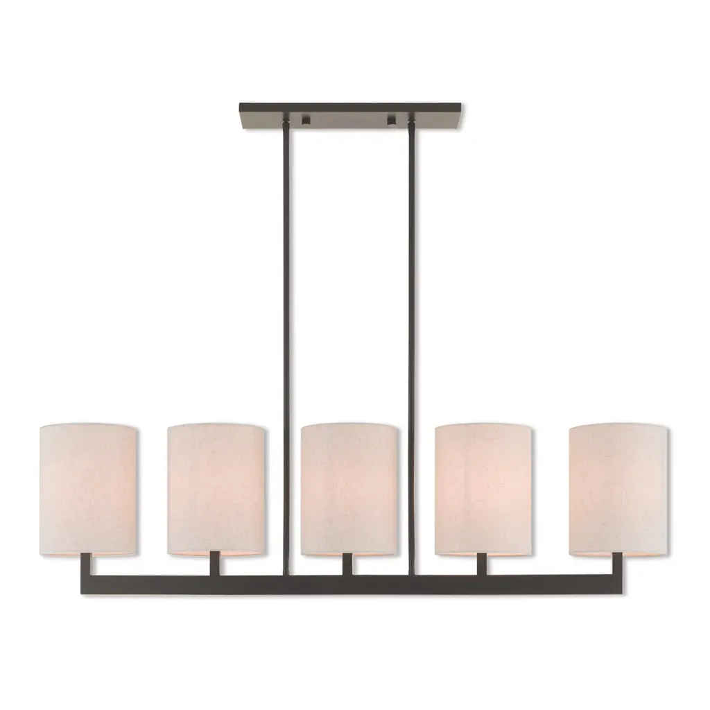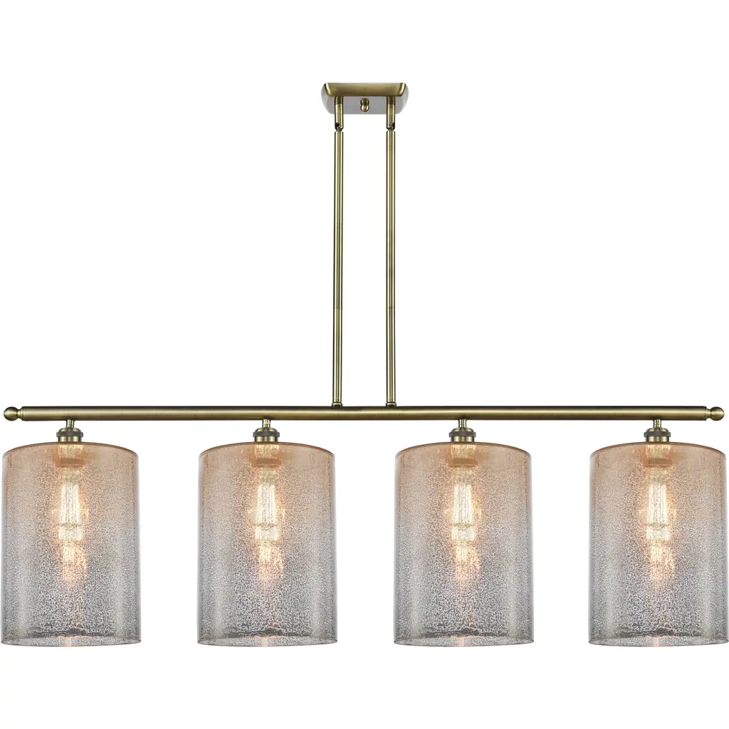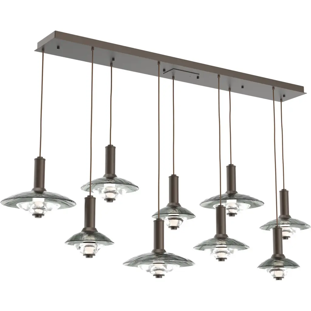 The Robert Abbey Saturnia Linear Suspension brings warm light and metallic shimmer into modern spaces. It features four cylindrical shades of transparent metallic fabric over light-diffusing cylinders of Ascot White fabric. A variety of included stems allows you to hang the shades all at the same length or stagger them as desired.