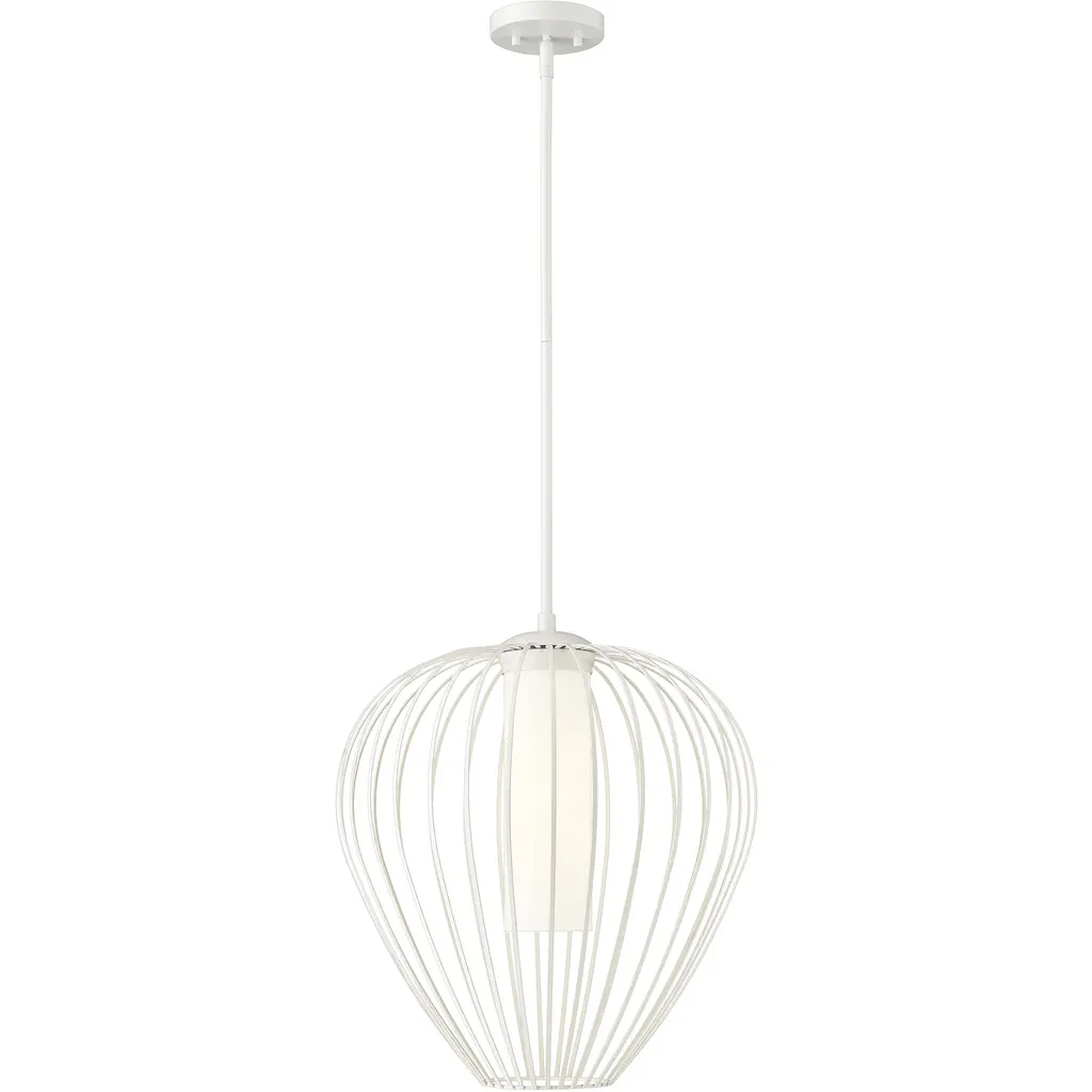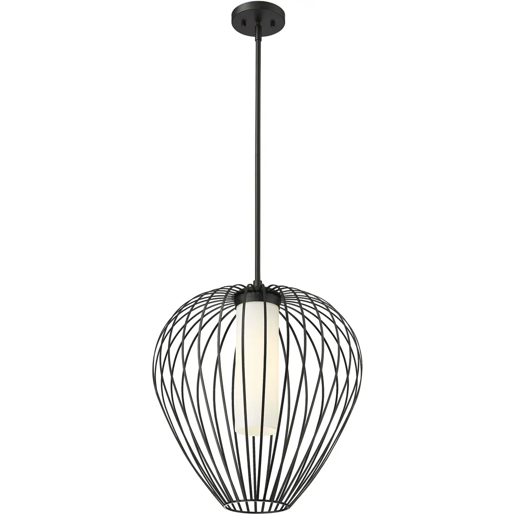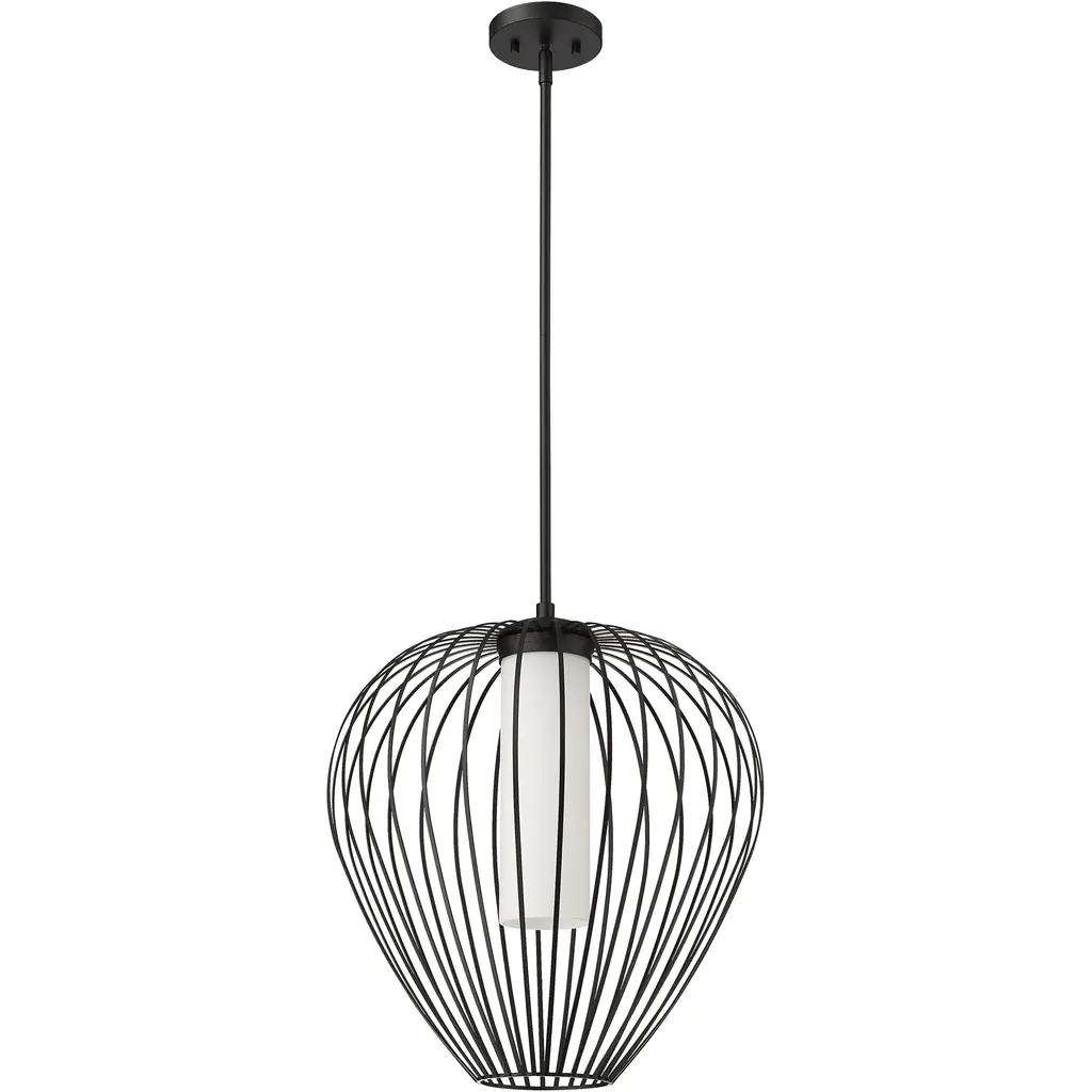 Slender spokes curve and taper to create the bulbous profile of a modern one-light pendant. Striking over a kitchen island or living room, it boasts a striking matte black finish paired with a white opal glass inner diffuser, creating inviting, true illumination and wonderful ambiance.