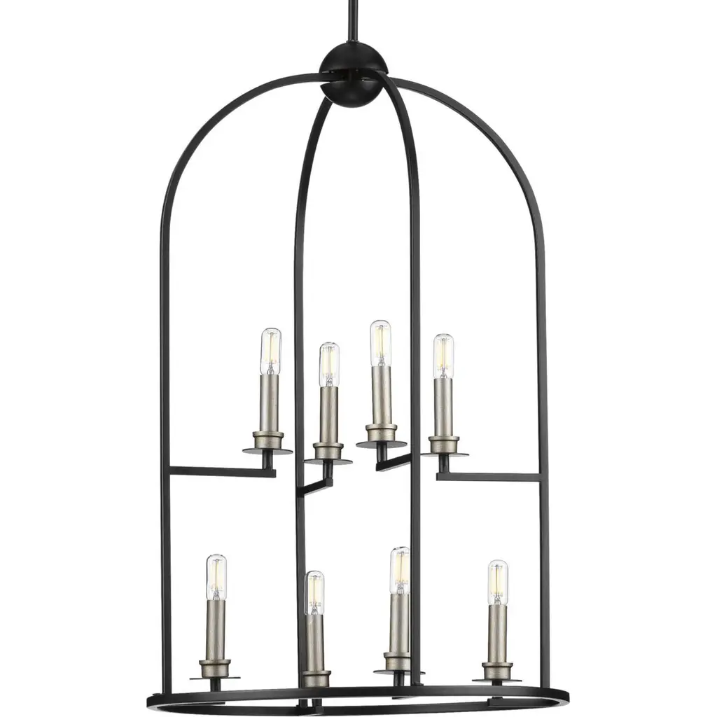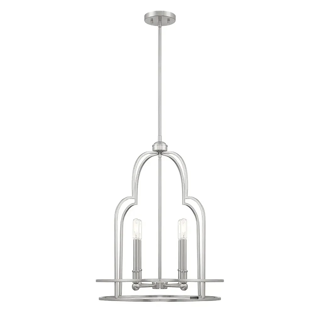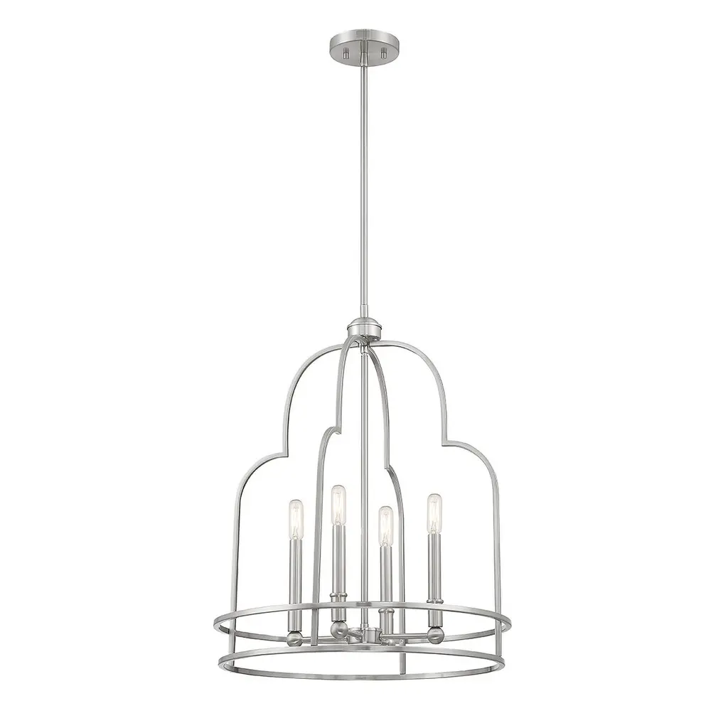 The eye-catching curves on the Savoy House Diplomat 4-light pendant make it an intriguing lighting choice for any space, especially for creating great first impressions in foyers and entryways! Diplomat is 20" in width and has an adjustable height ranging from 25" to 79". Comes with four 12" downrods and one 6" downrod. It uses 4 candelabra size bulbs of up to 60 watts per bulb (bulbs not included).Features:Dimensions:Electrical Specifications: