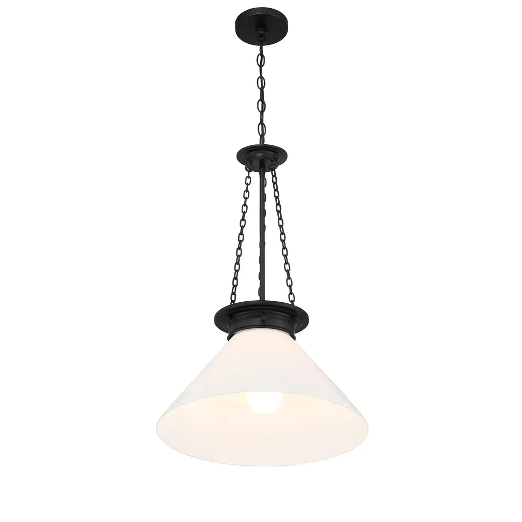 Bring in a bright, vintage-inspired lighting look with the Savoy House Myers 1-light pendant. Its white cased glass shade has a rich and lustrous appearance that makes it ideal for a wide variety of applications. Slim strands of chain add a decorative touch and heighten the vintage intrigue. Myers is 27" in height and 18" in width. Uses one standard size bulb of up to 60 watts. The bulb is not included.Features:Dimensions:Electrical Specifications: