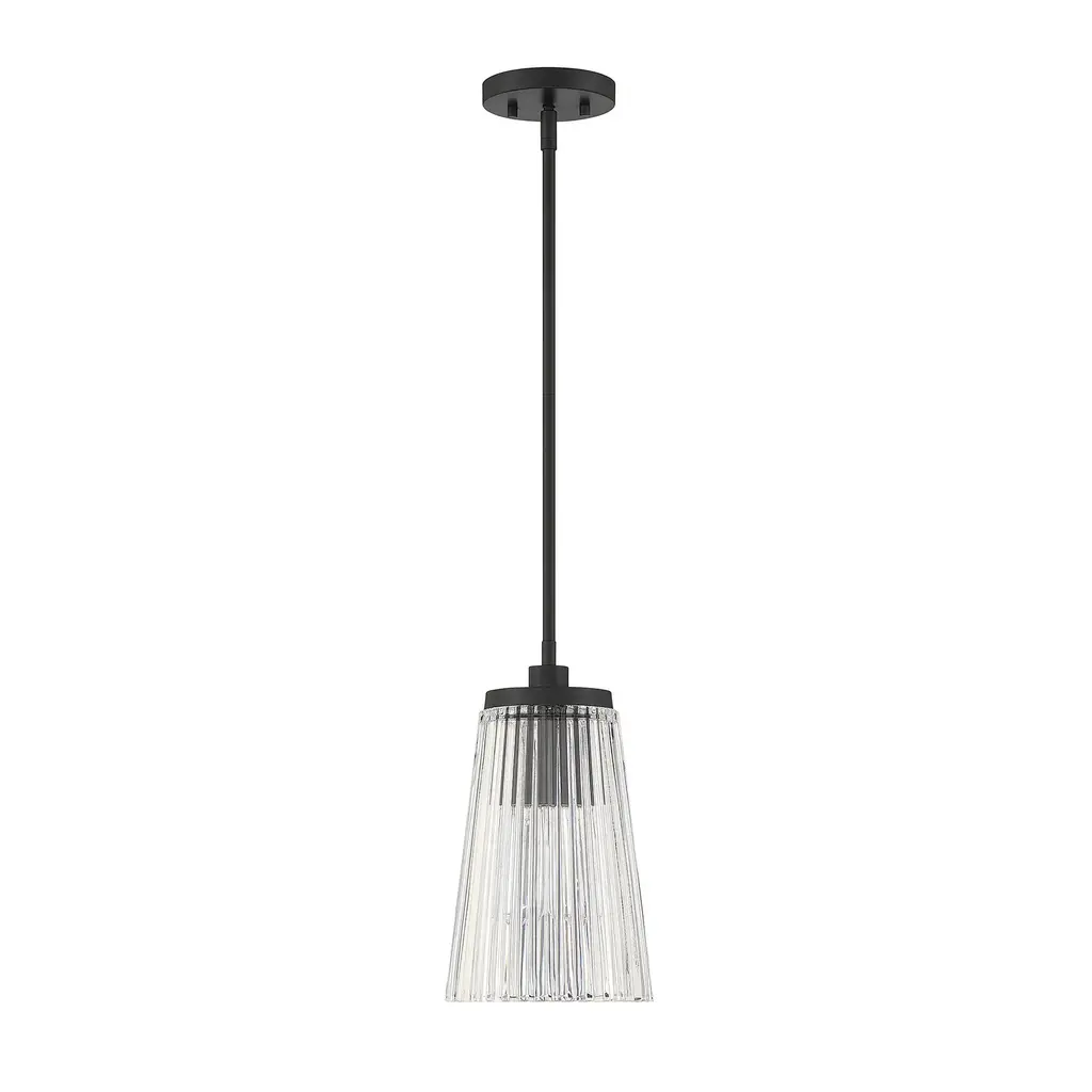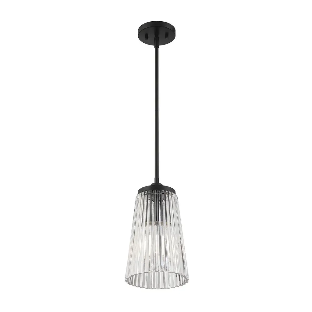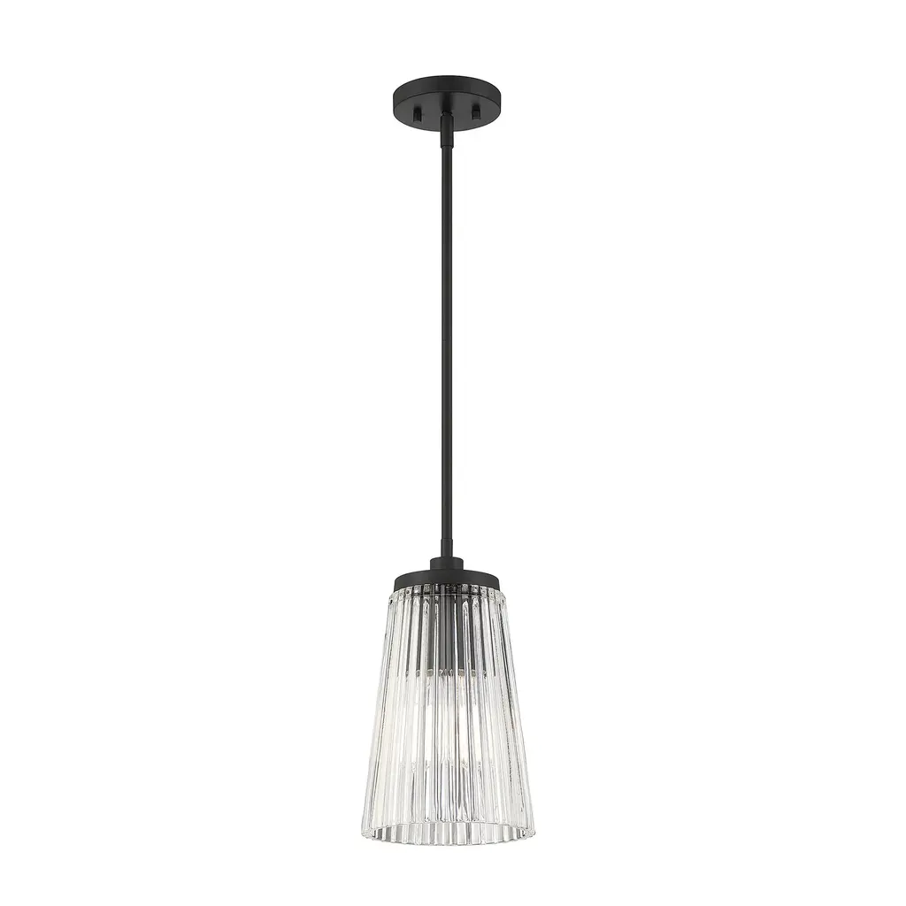A textured, eye-catching shade of clear ribbed glass takes center stage in the Chantilly 1-light pendant from Savoy House.FeaturesDimensionsElectrical Specifications