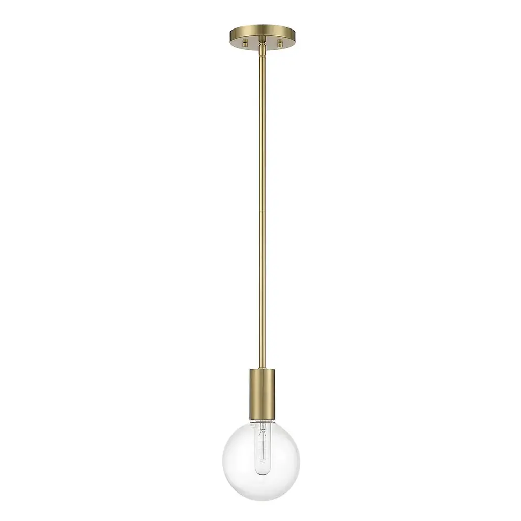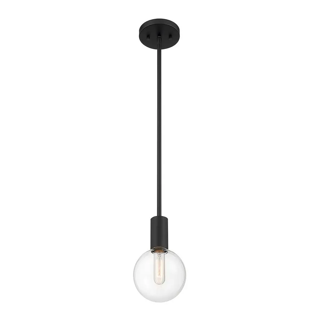 This Savoy House Wright 1-light mini pendant showcases streamlined style that makes it ideal for any space. A round glass shade adds an extra dimension and extra protection for the light bulb within. Wright is 5.75" in width and has an adjustable height ranging from 9.75" to 63.75". Comes with four 12" downrods and one 6" downrod. Uses 1 standard size bulb with a max of 60 watts (bulb not included). We recommend using a tubular shaped bulb.Features:Dimensions:Electrical Specifications: