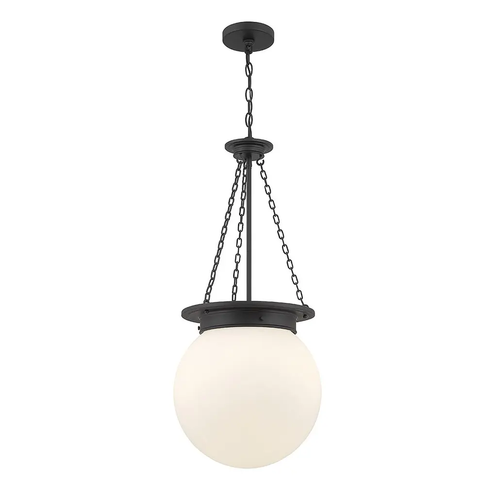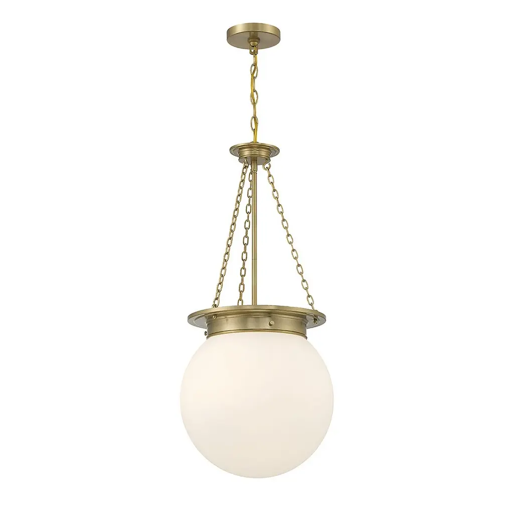The Savoy House Manor 3-light pendant proves that a classic style can be stunning! An orb-shaped shade of opal glass hangs down from an understated structure with timeless details. Manor is 31” in height and 13.5” in width. It uses 3 candelabra size bulbs of up to 60 watts per bulb (bulbs not included).Features:Dimensions:Electrical Specifications: