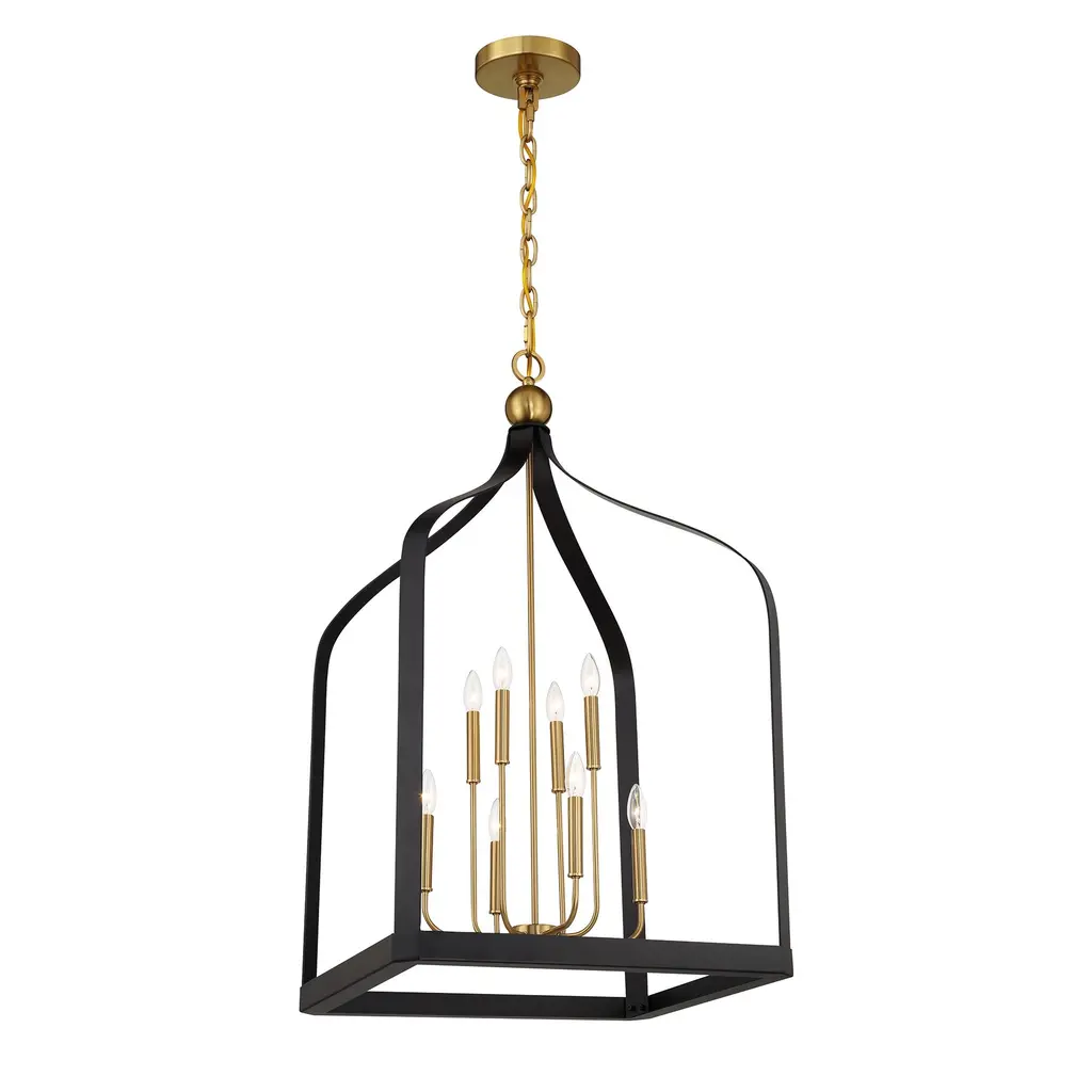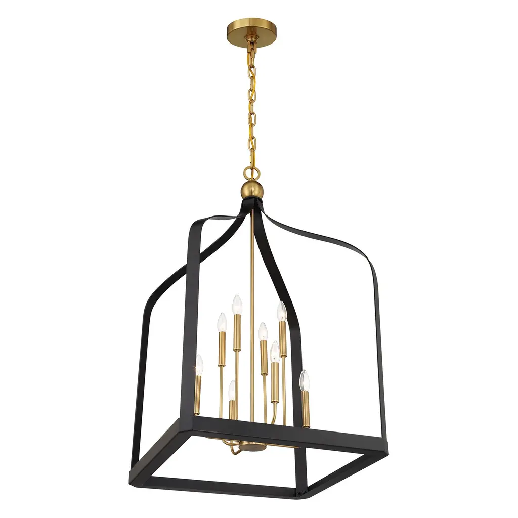 Savoy House 7-7800-8 Sheffield 8 Light 24" Wide Taper Candle Pendant - Matte Black / Warm Brass
