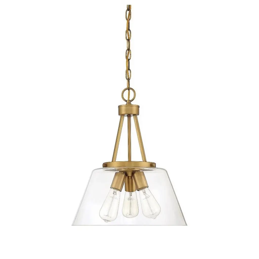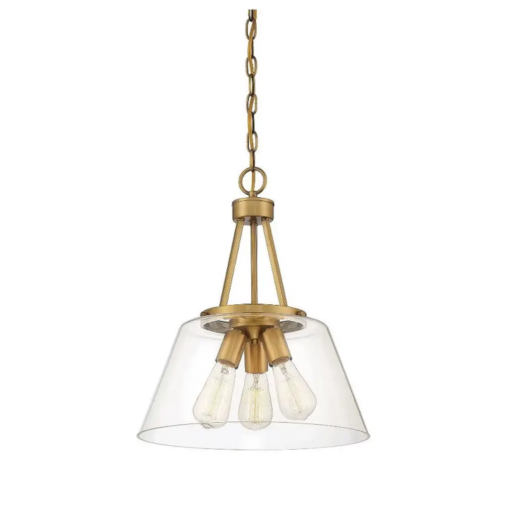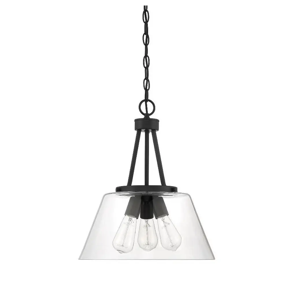 The Calhoun Collection is distinguished by simple lines that can easily enhance transitional and contemporary décor. Measuring 18" high x 15" wide, this three-light pendant offers a clean silhouette in a matte black finish and clear glass shades. It is illuminated by three 60-watt Edison-base bulbs. Material: Metal, Finish Color: Matte Black, Width: 15", Height: 18", Hanging Method: Chain, Chain Length: 120", Lamping Type: Incandescent, Number Of Bulbs: 3, Wattage: 180 Watts, Dimmable: Yes, Moisture Rating: Dry Rated
