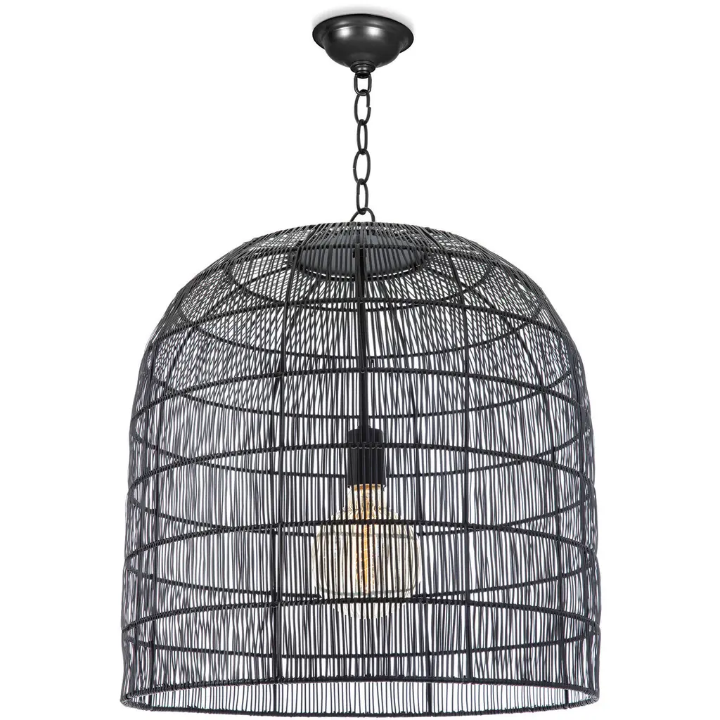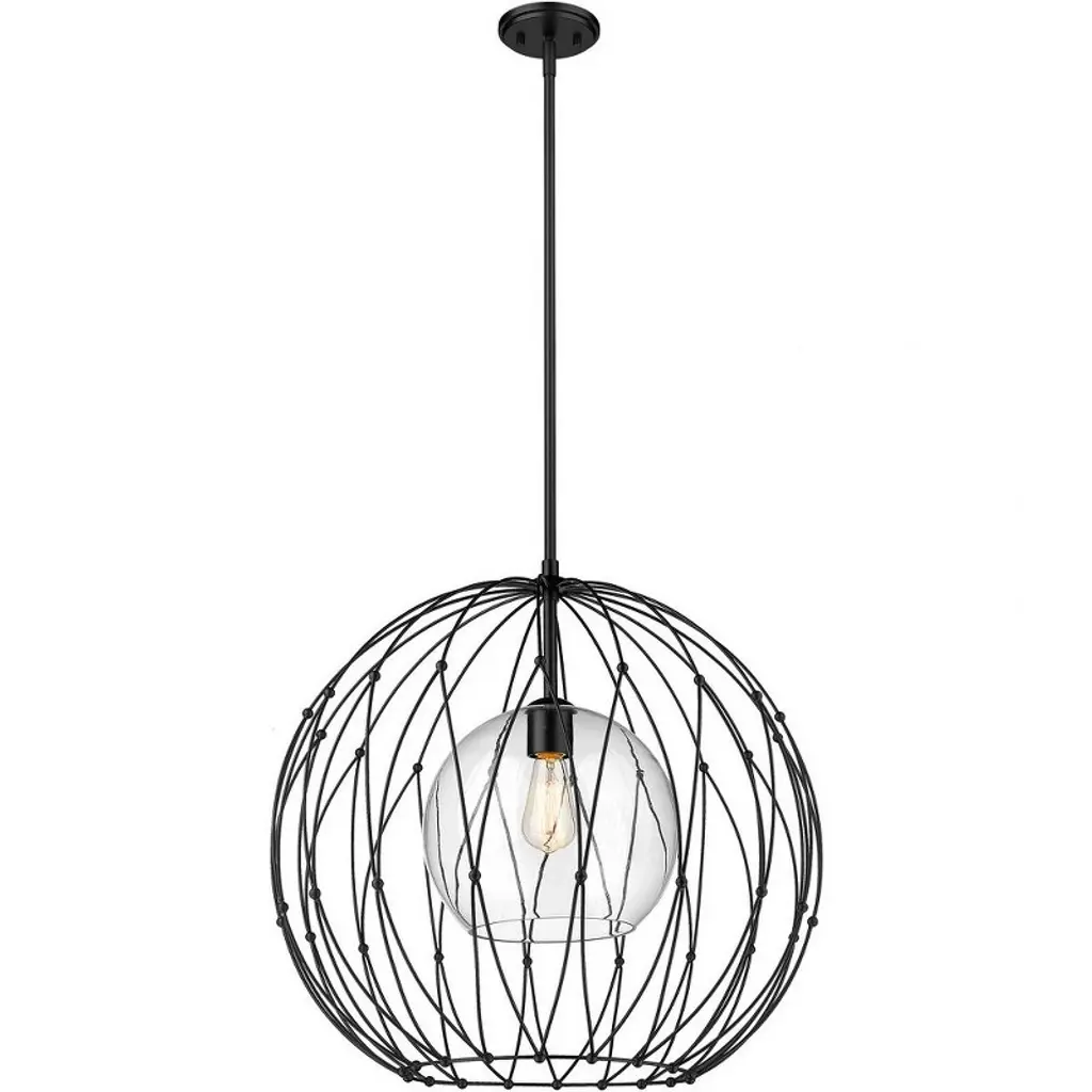 Collection: Marcy, Material: Rattan, Finish Color: Matte Black, Width: 30", Height: 13.75", Length: 30", Lamping Type: Incandescent, Number Of Bulbs: 1, Wattage: 60 Watts, Dimmable: Yes, Moisture Rating: Damp Rated, Desc: Savoy House brings the natural beauty of rattan lighting to the great outdoors with the Marcy 1-light pendant. A basket-like black rattan resin surrounds an orb of clear seeded glass. Together, these elements create touchable, eye-catching texture. Matte Black finish. Marcy is 30" in width and has an adjustable height ranging from 13.75" to 67.75". Comes with four 12" downrods and one 6" downrod. Uses one standard size bulb of up to 60 watts. The bulb is not included. Marcy is damp area rated and can also be used indoors.,