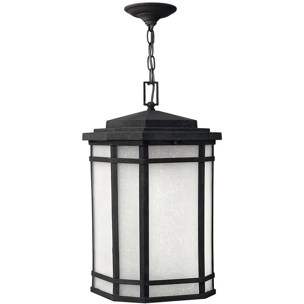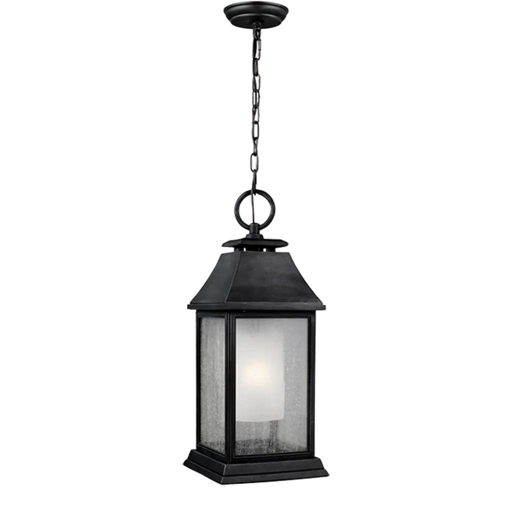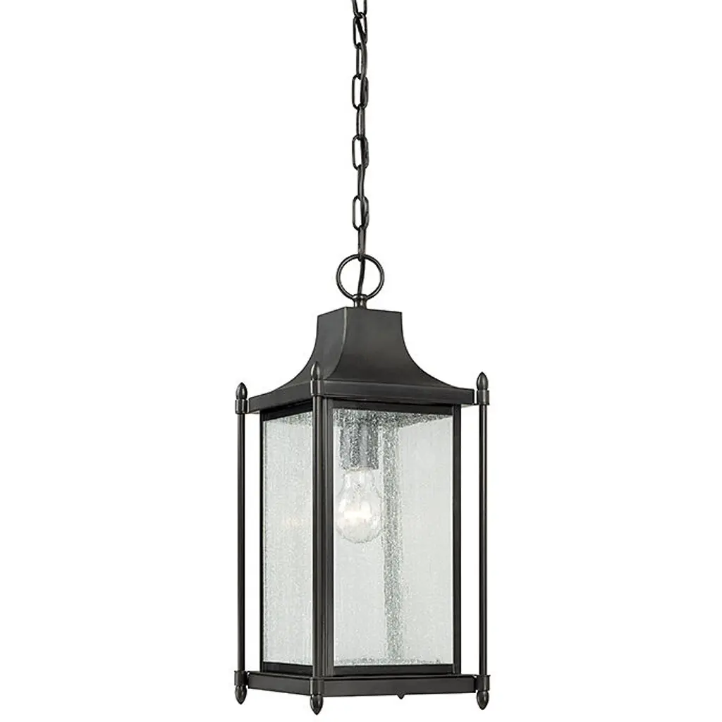 The Monte Grande is an elegant, clean-lined version of a classic, box-shaped lantern. It’s a timeless and pleasing style from designer Karyl Pierce Paxton —a hanging lantern that will not only illuminate the exterior of your home, it will welcome you and your guests with a familiar, traditional aesthetic. The English bronze finish is a wonderful neutral that goes with other hardware and architectural materials. And the panels are made of beautiful, pale cream, seeded glass. Three cream-colored, drip candle covers add to the vintage charm, and hold 40W, C-style bulbs for plenty of soft light. This lantern is 10” wide, 22.5” high, and UL rated for damp locations: perfect for your porch, patio, sunroom, pergola, and other covered outdoor living areas.