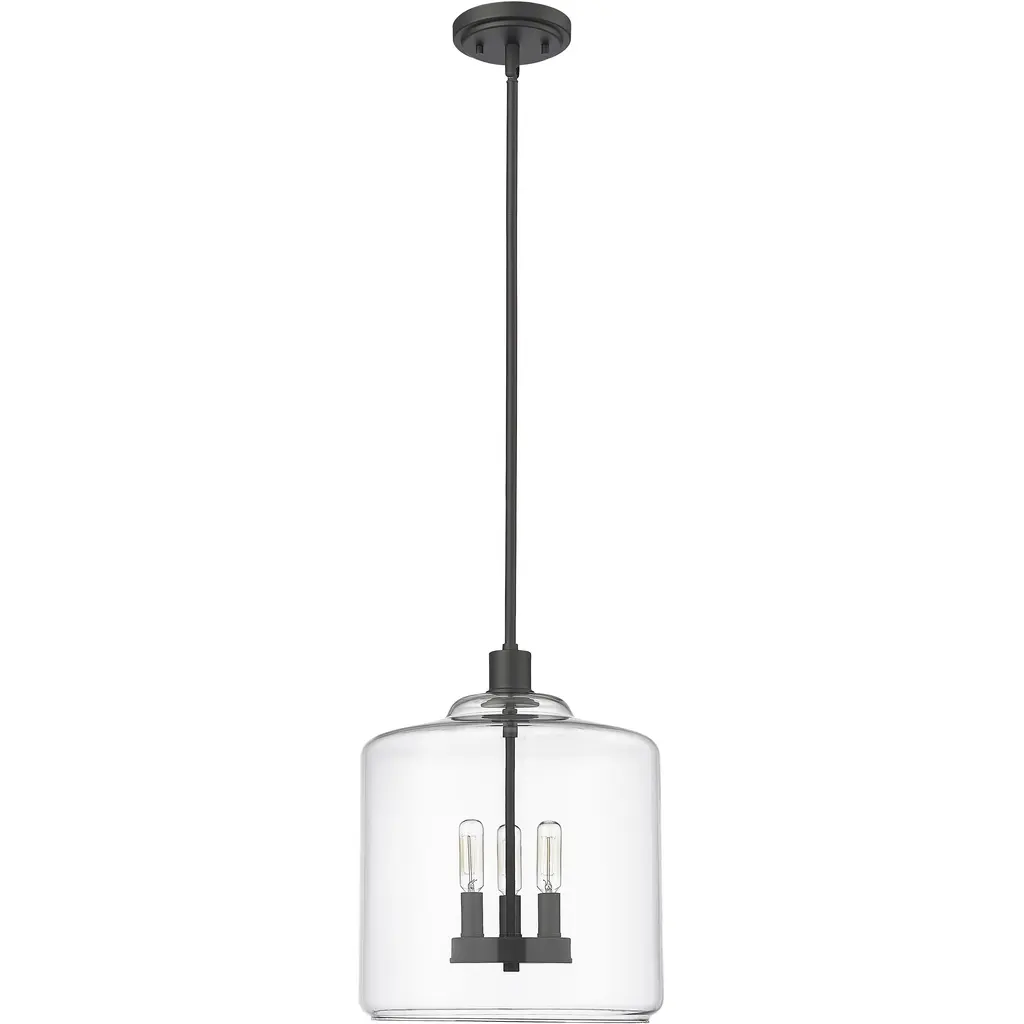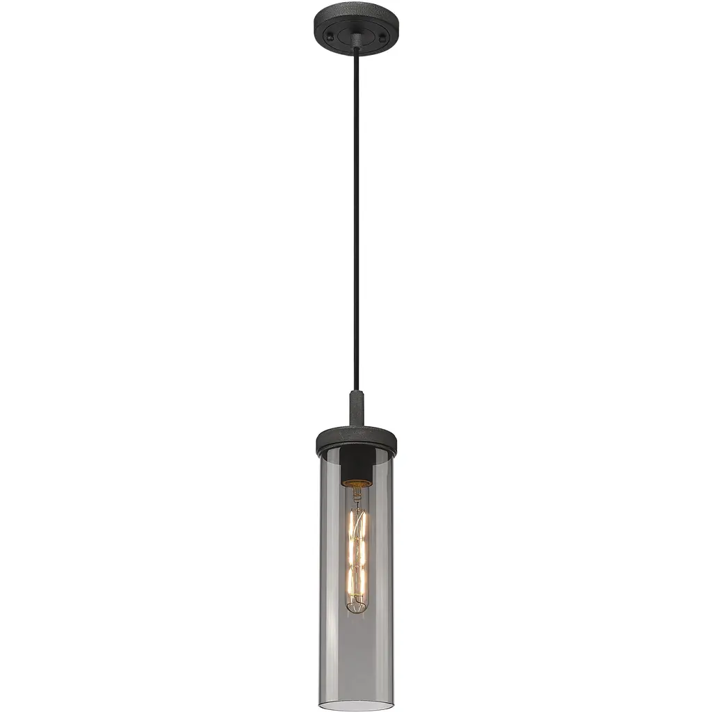 This Savoy House Winfield 1-light mini pendant showcases a bold, slim look with a shade of clear glass, thoughtful minimal detailing and a matte black finish. It is 5.125" in width and has an adjustable height ranging from 15.75" to 47.25". It uses one standard size bulb of up to 60 watts. Comes with three 9.5" downrods.