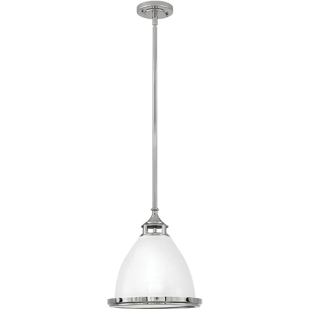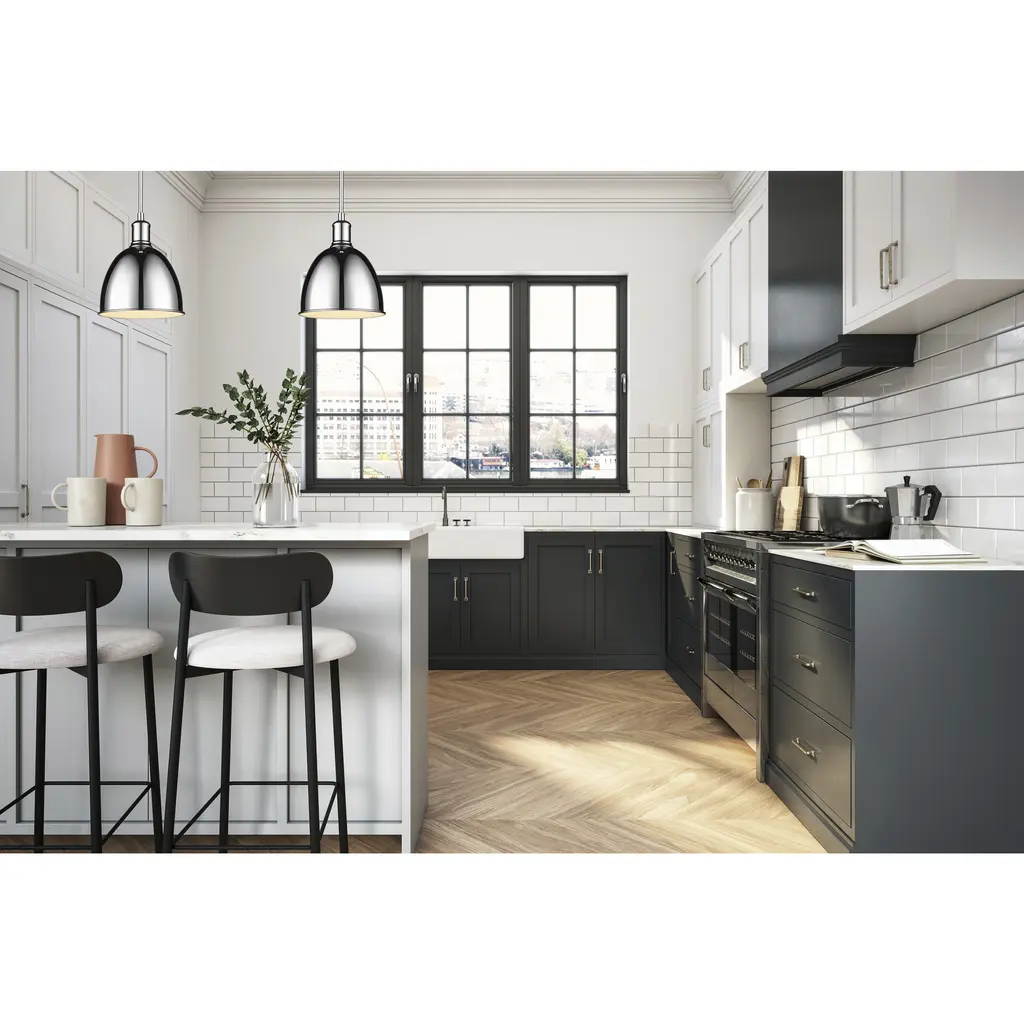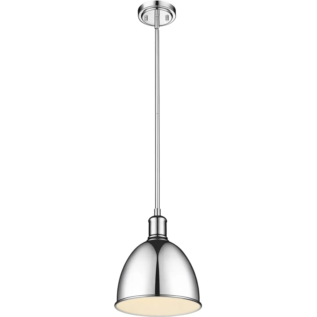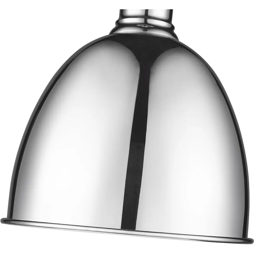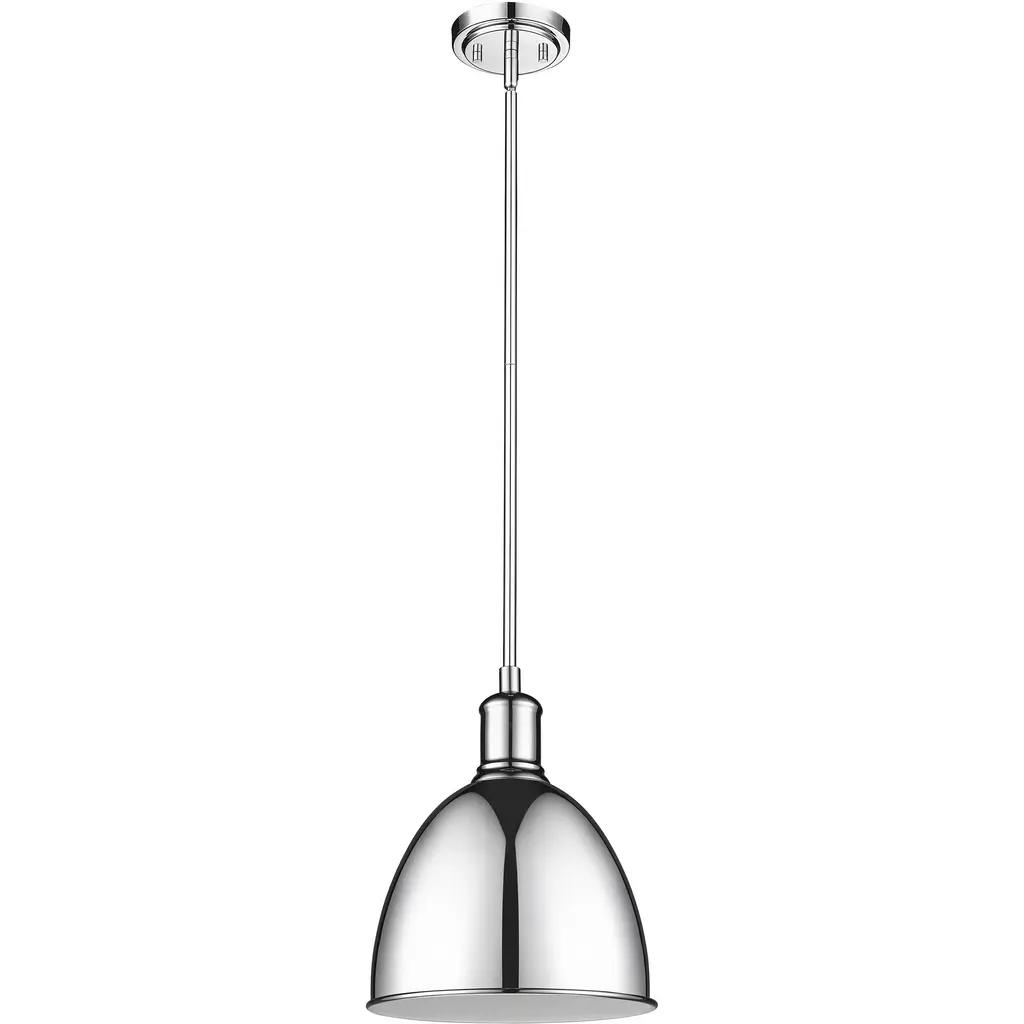 Create ample lighting over a gourmet kitchen countertop or island with a series of these transitional modern farmhouse pendants. Designed with a lustrous, polished chrome finish iron shade that resembles a restored schoolhouse or industrial lighting fixture, this petite single light pendant lends a classically appointed urban-inspired flair. Sleek and simple with contoured lines, this charming pendant is perfect for illuminating kitchen islands where you prep, bake and entertain family and guests.