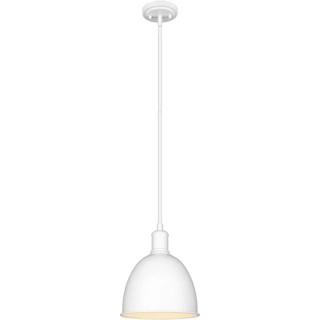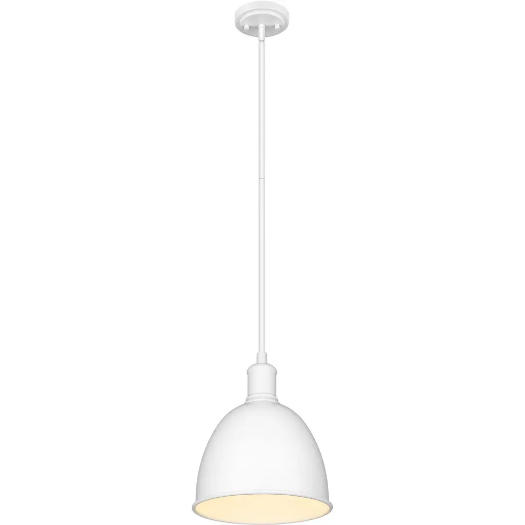 Create ample lighting over a gourmet kitchen countertop or island with a series of these transitional modern farmhouse pendants. Designed with a minimal, crisp satin white finish iron shade that resembles a restored schoolhouse or industrial lighting fixture, this petite single light pendant lends a classically appointed urban-inspired flair. Sleek and simple with contoured lines, this charming pendant is perfect for illuminating kitchen islands where you prep, bake and entertain family and guests.