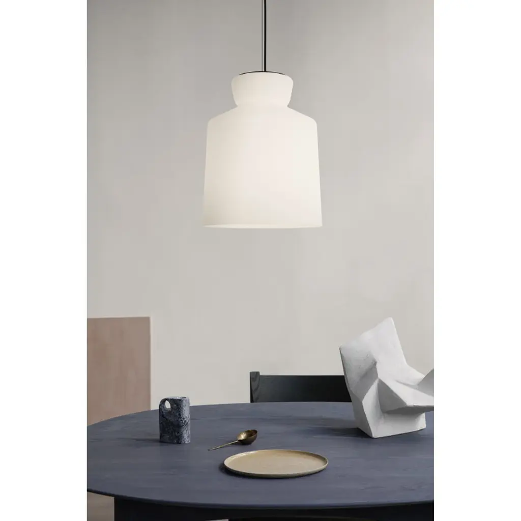 Astep's SB Cinquantotto pendant light was originally designed by the Italian architectural duo Santi Borachia (Carlo Santi and Vittorio Borachia) back in 1958. The atmospheric Cinquantotto pendant light is composed of a white, frosted opal glass shade and a black cord running freely along a thin suspension wire. Thanks to its timeless and simplistic expression, Cinquantotto looks great in any kind of interior, and can also be hung in clusters or pairs. The Cinquantotto pendant has been manufactured in Italy, and its opal glass shade is handblown.