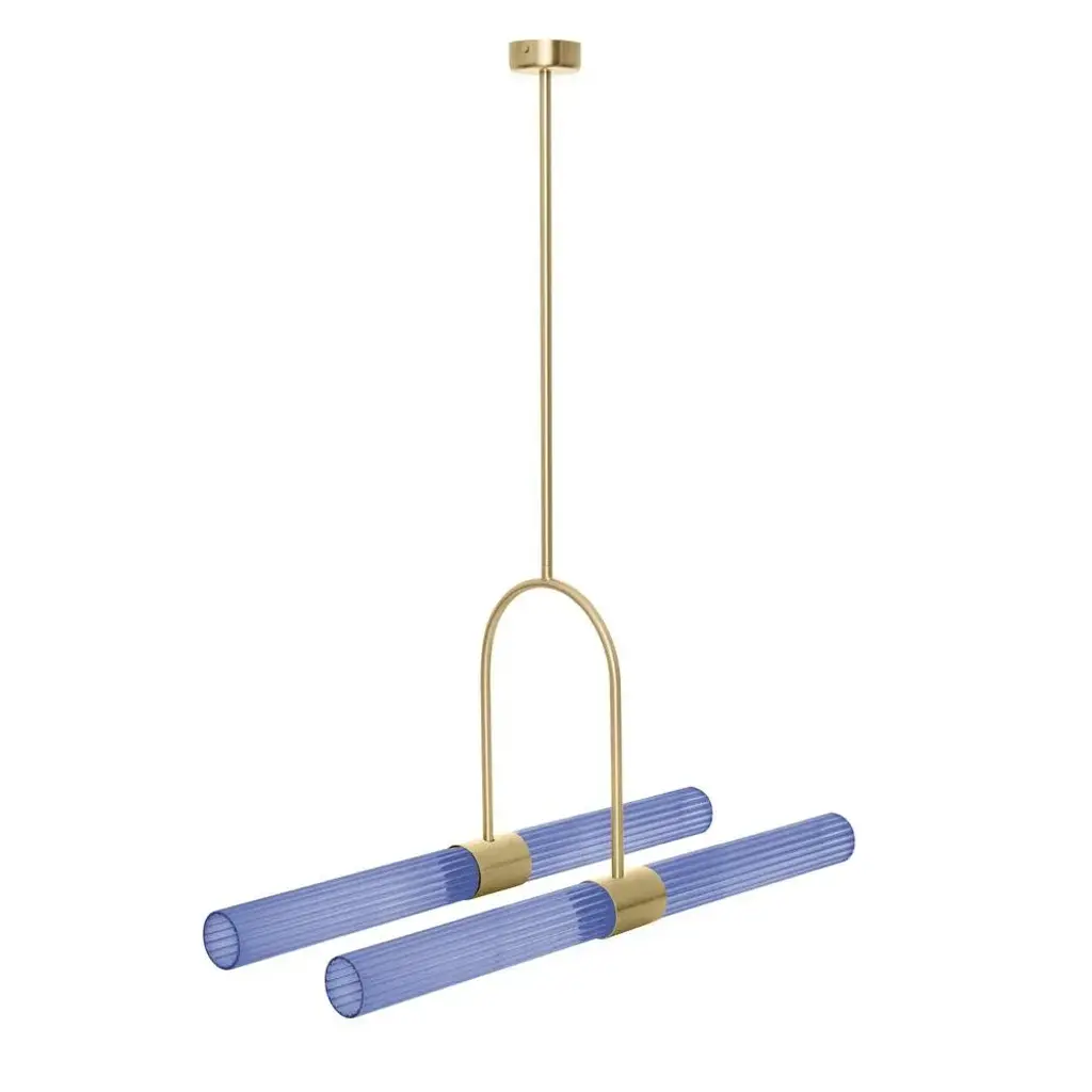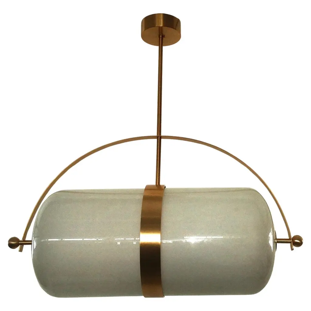 Sbarlusc pendant lamp by Luce Tu. Dimensions: 71.4 x 35-75 cm. Materials: brass and glass. State-of-the-art technology and craftsmanship come together in this suspension with an almost timeless charm. Like a precious jewel, the Sbarlusc collection is perfect for enriching a space, without losing elegance and character Sbarlusc in Milanese dialect represents the sparkle of a precious and very bright object. The colored glasses, which combine with each other creating games of color and light, are embedded in the illuminated bodies like glittering jewels. Entirely handmade by the craftsmen of the Milan area, these lamps are the conjugation between advanced lighting technology and fine and precise craftsmanship. This piece is attributed to the mentioned designer/maker. It has no attribution mark and no official proof of authenticity, however it is well documented in design history. I take full responsibility for any authenticity issues arising from misattribution, Up to 250V (Europe/UK Standard).