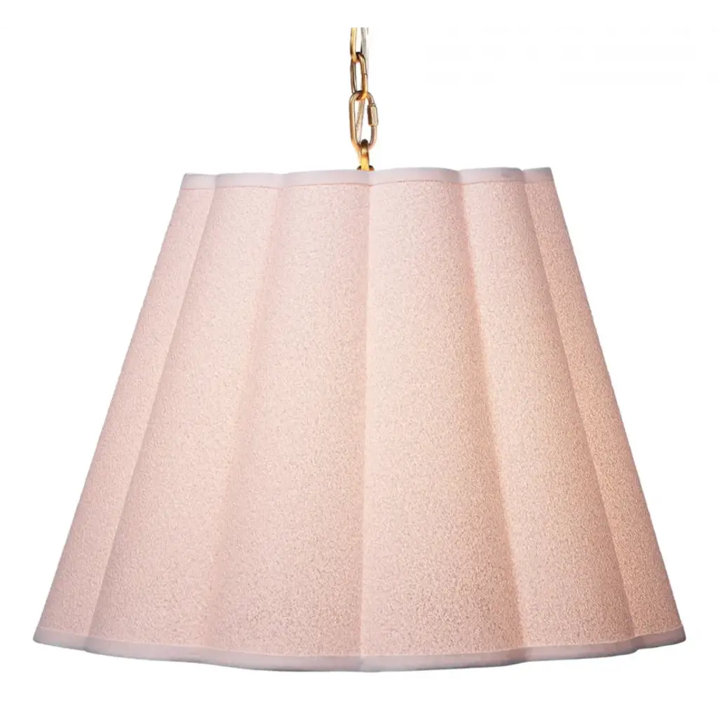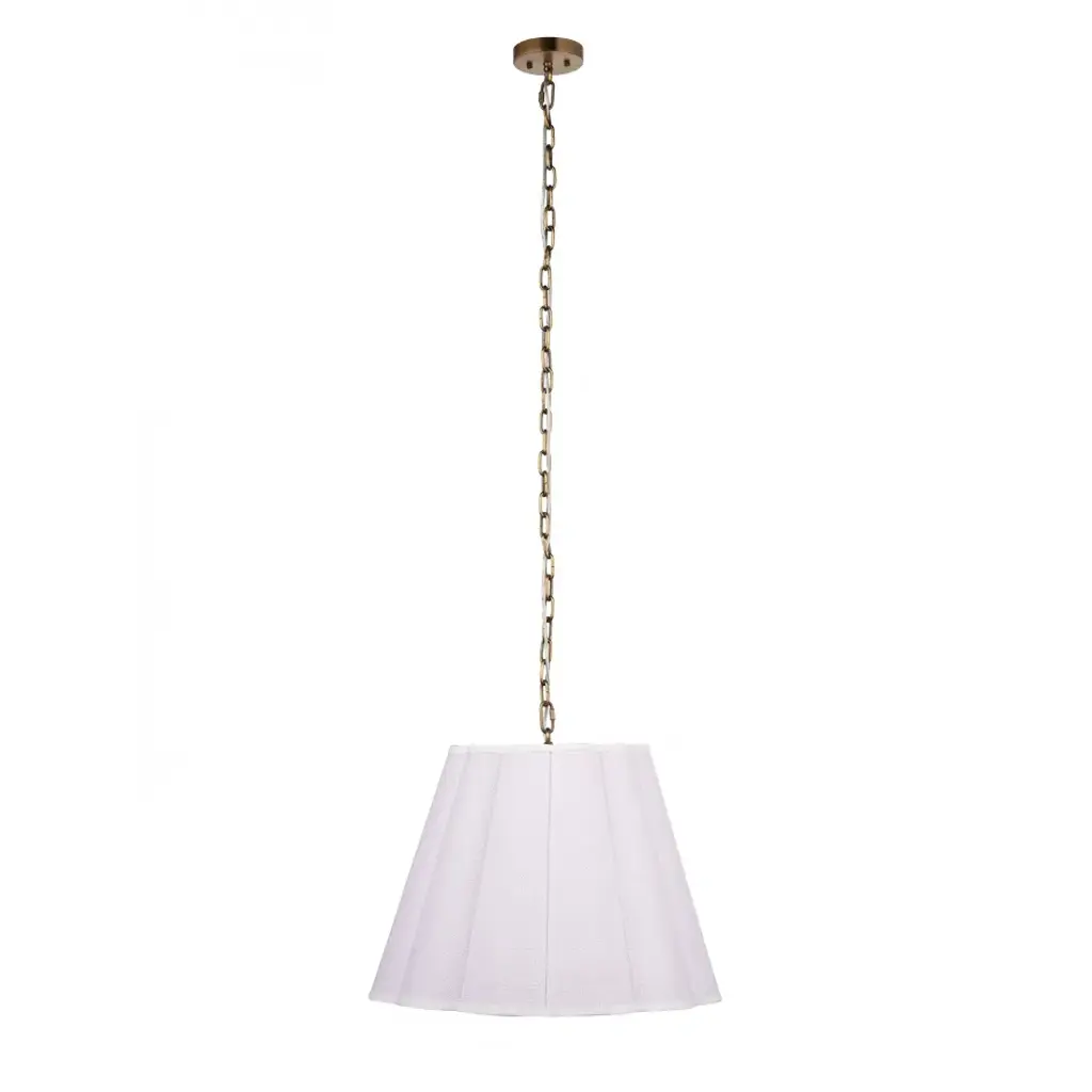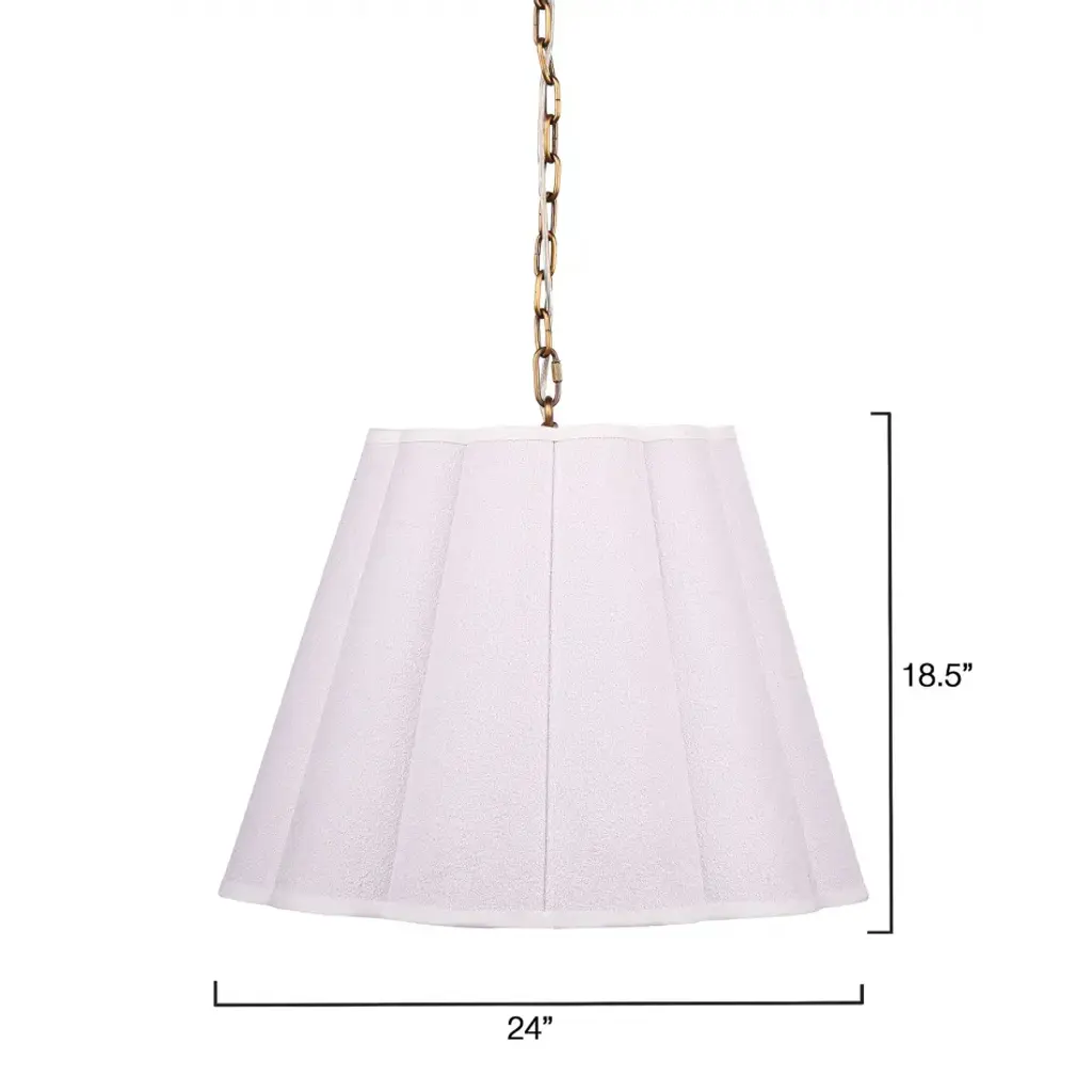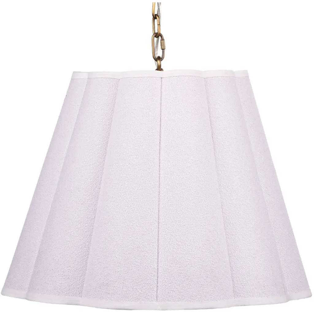 Install these casually elegant and gently scalloped pendants strategically to provide diffused, soft light precisely where you need it. Each features an expertly crafted white linen boucle shade and bottom diffuser to soften and direct the illumination with an adjustable antiqued brass chain.