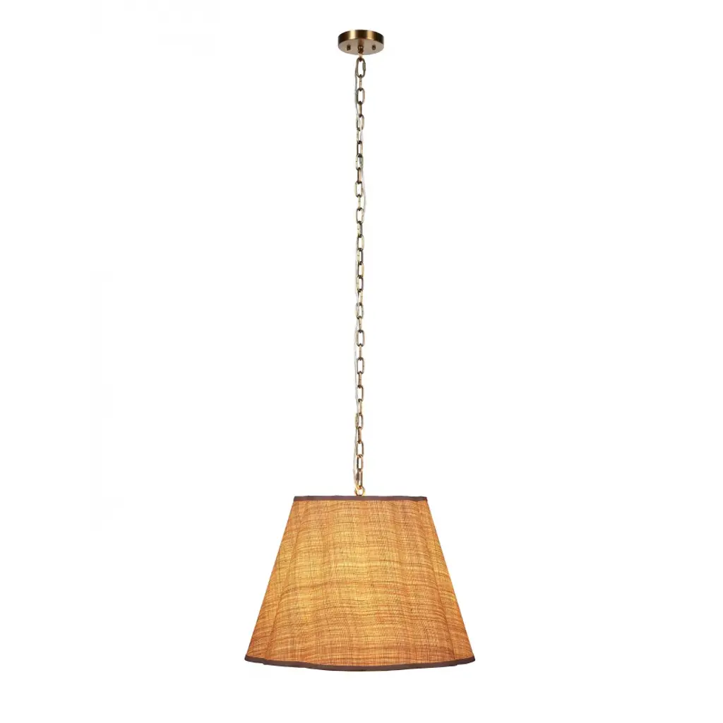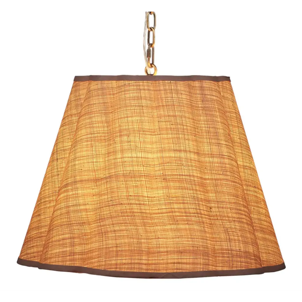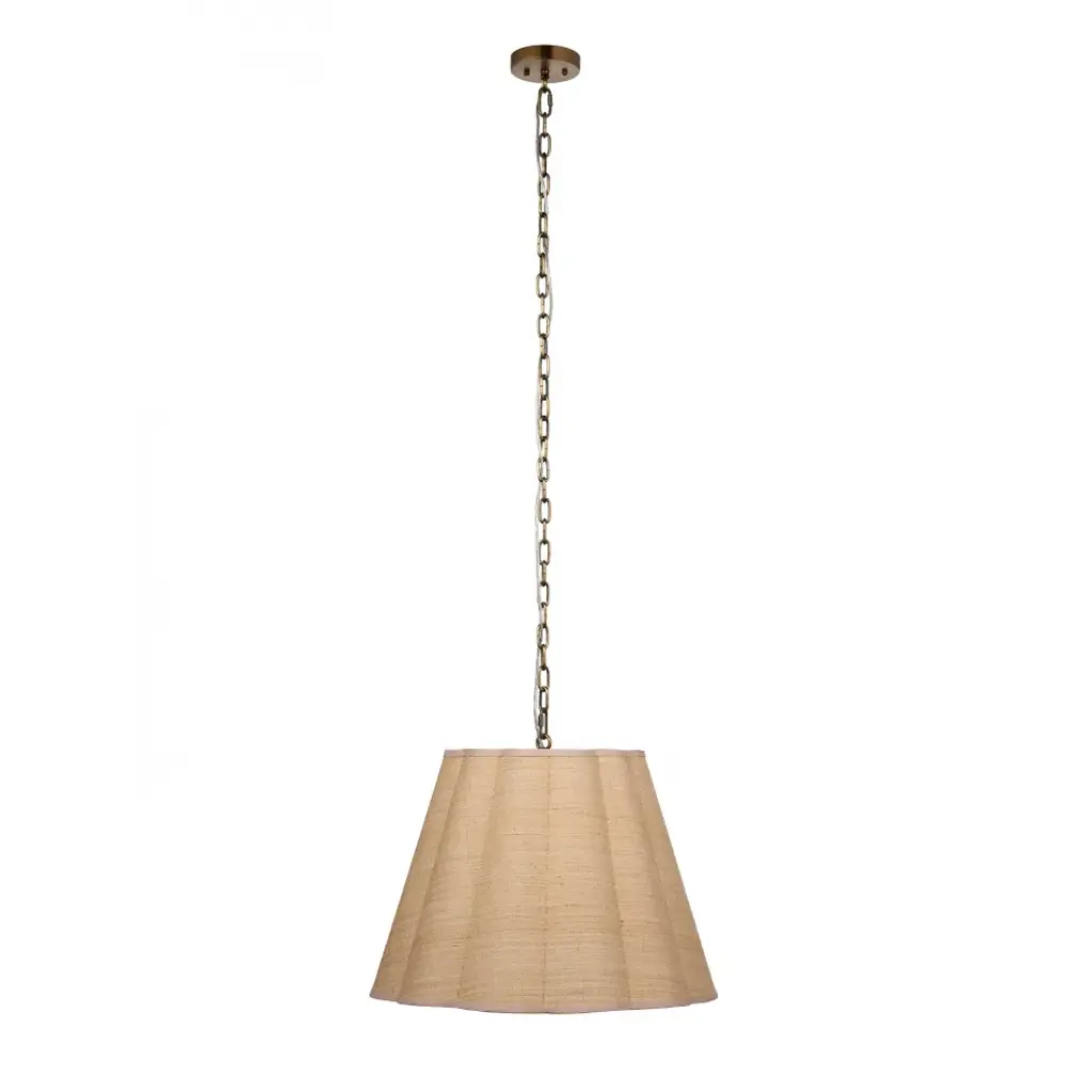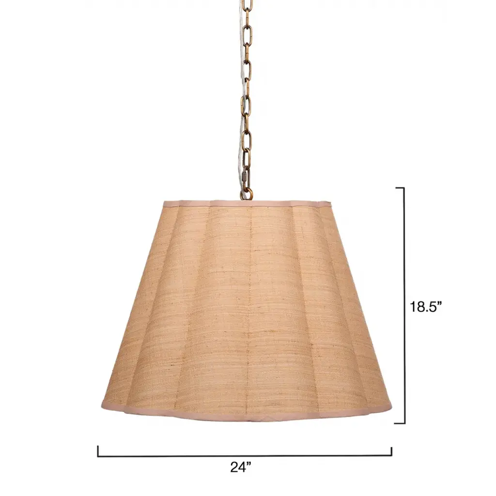 Install these casually elegant and gently scalloped pendants strategically to provide soft light precisely where you need it. Each features an expertly crafted natural raffia shade and bottom diffuser to soften and direct the illumination with an adjustable antiqued brass chain.