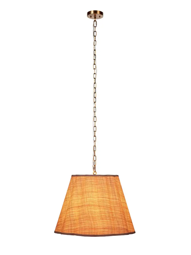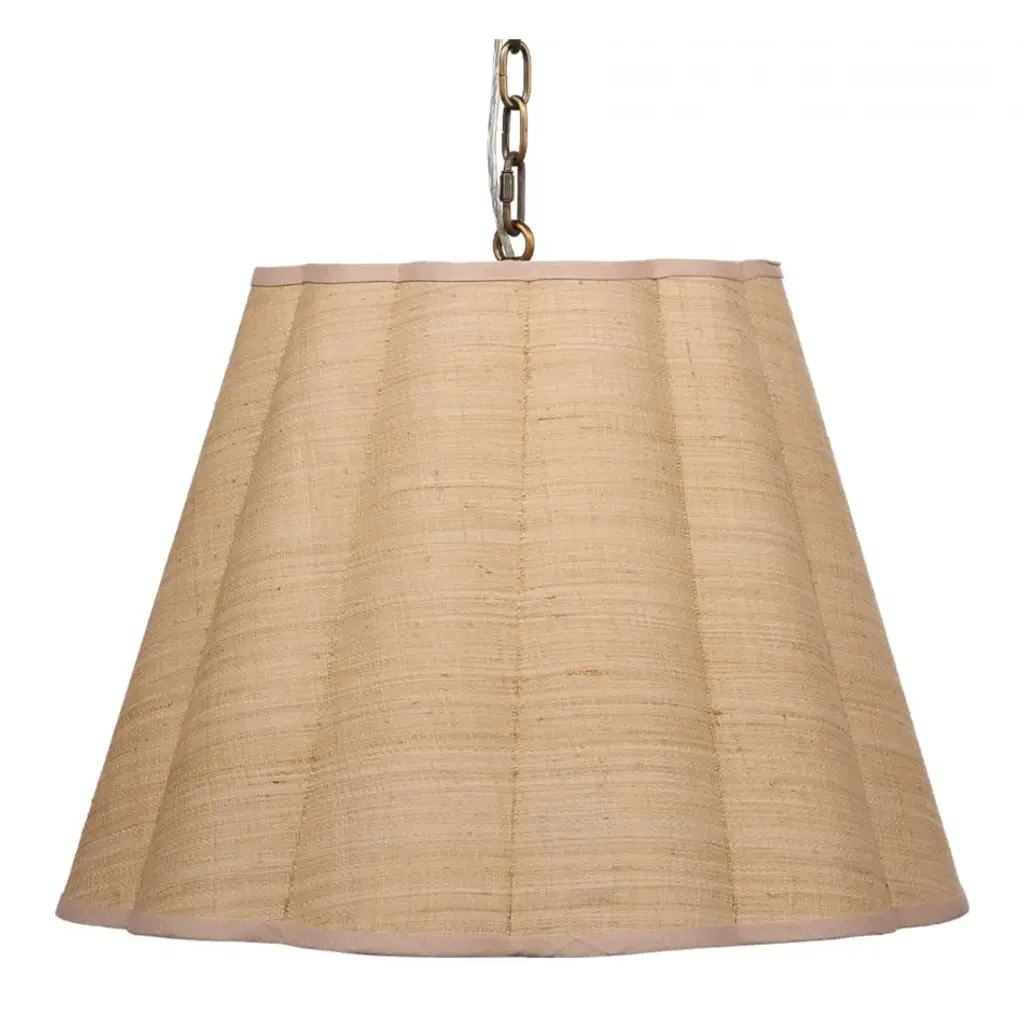 Install these casually elegant and gently scalloped pendants strategically to provide soft light precisely where you need it. Each features an expertly crafted natural raffia shade and bottom diffuser to soften and direct the illumination with an adjustable antiqued brass chain.