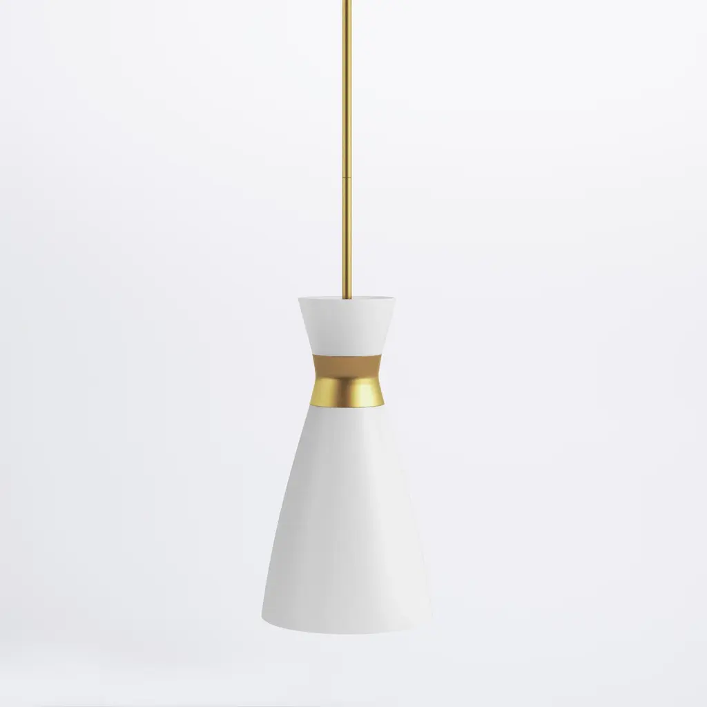 This elegant pendant lamp is a charming piece of functional decor. Mounted downwards on a unique brass and metal structure with a polished gold finish, the truncated cone shade of rigid black and gold inside fabric will emit a diffused. Attached to the ceiling with a metal rose, the structure is also available in other finishes, please ask the Concierge for details.