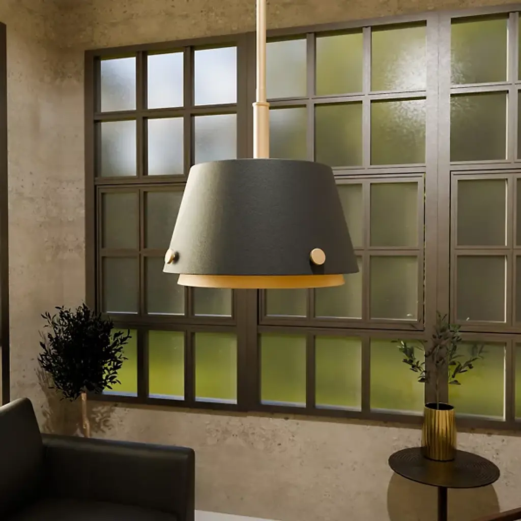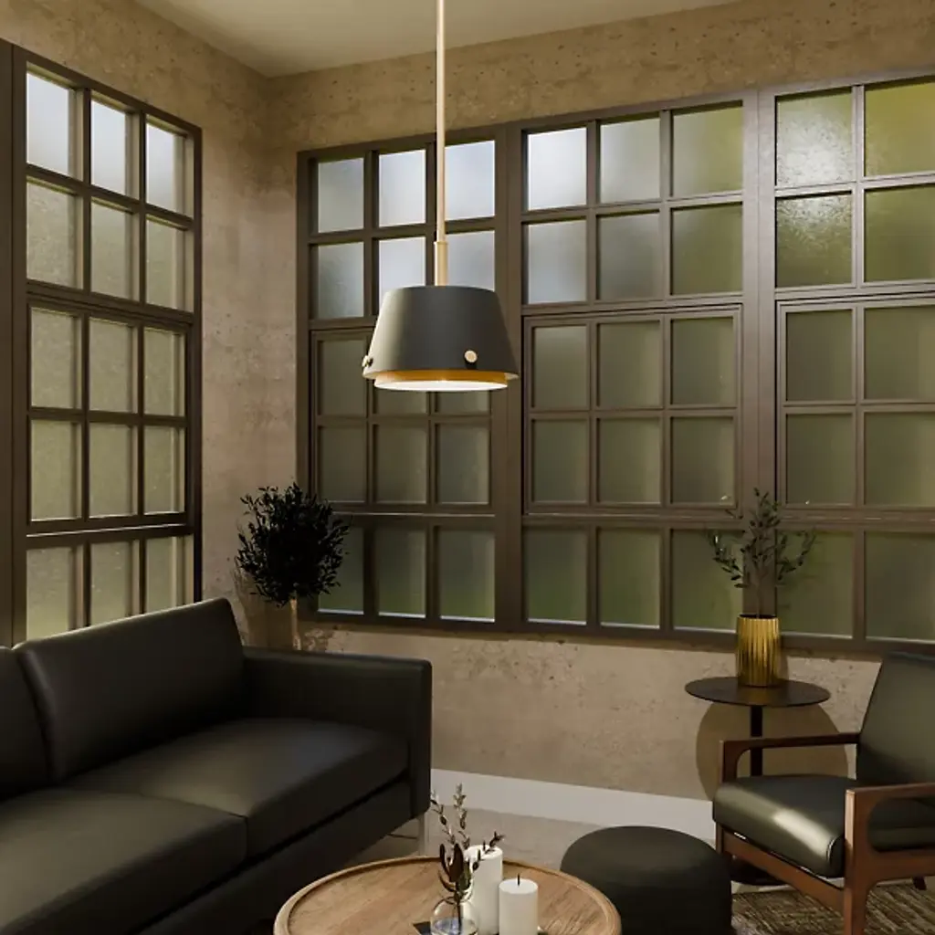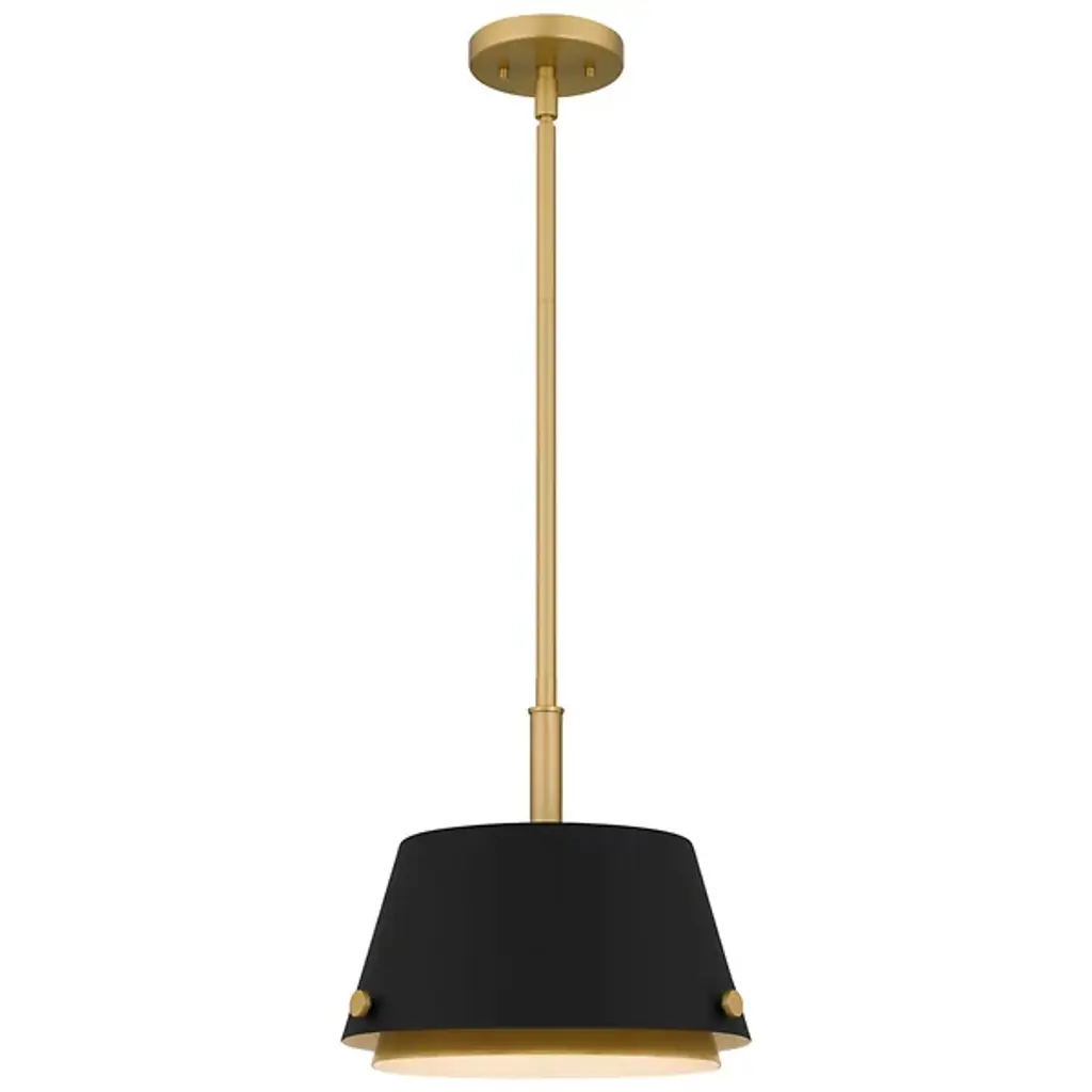 The Scarlett Pendant from Quoizel effortlessly combines simplicity with elegance. Its metal drum shade boasts a double-layer design: a matte black outer shade with a brushed, weathered brass inner metal shade. Subtle brass industrial accents add contrast and drama, making the Scarlett Pendant a standout piece in any room. With its modern and sleek aesthetic, this pendant brings a touch of sophistication to your space while making a bold statement.