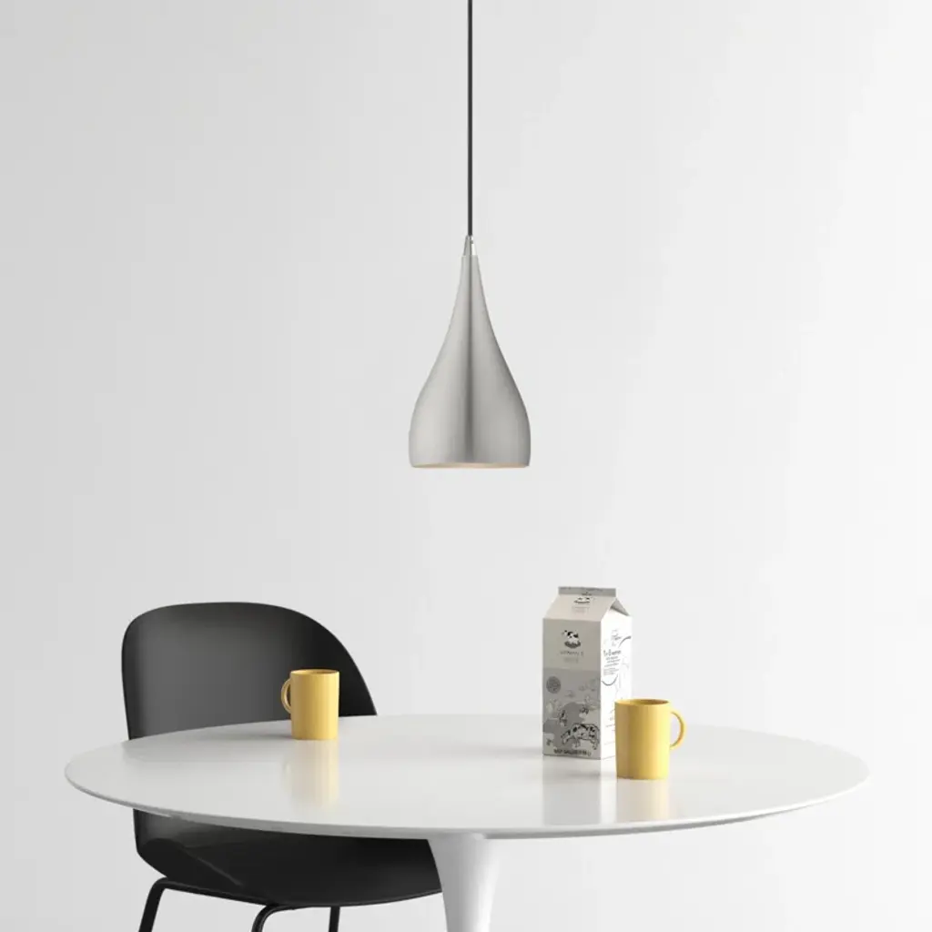 Brighten up your kitchen island or covered porch (or anywhere else) in more ways than one with this stylish and functional pendant light. Made from metal, this teardrop-shaped pendant light hangs from an adjustable length of the cord suspended from a metal canopy. Compatible with sloped ceilings and dimmer switches, this design is also safe to use in a bathroom or on a screened-in porch. Plus, it comes in an array of solid hues, so you can pair it with both vibrant and neutral color palettes with ease.