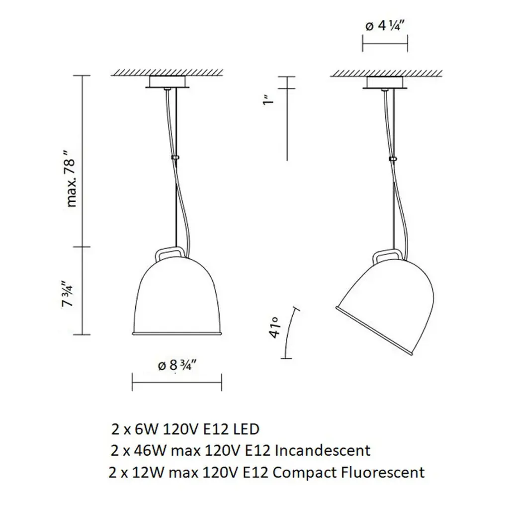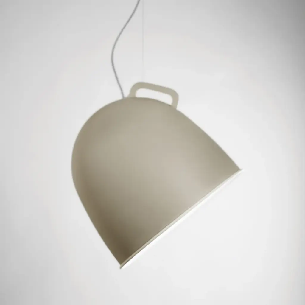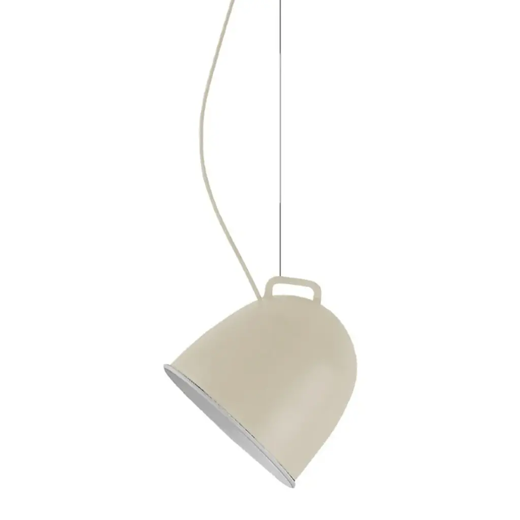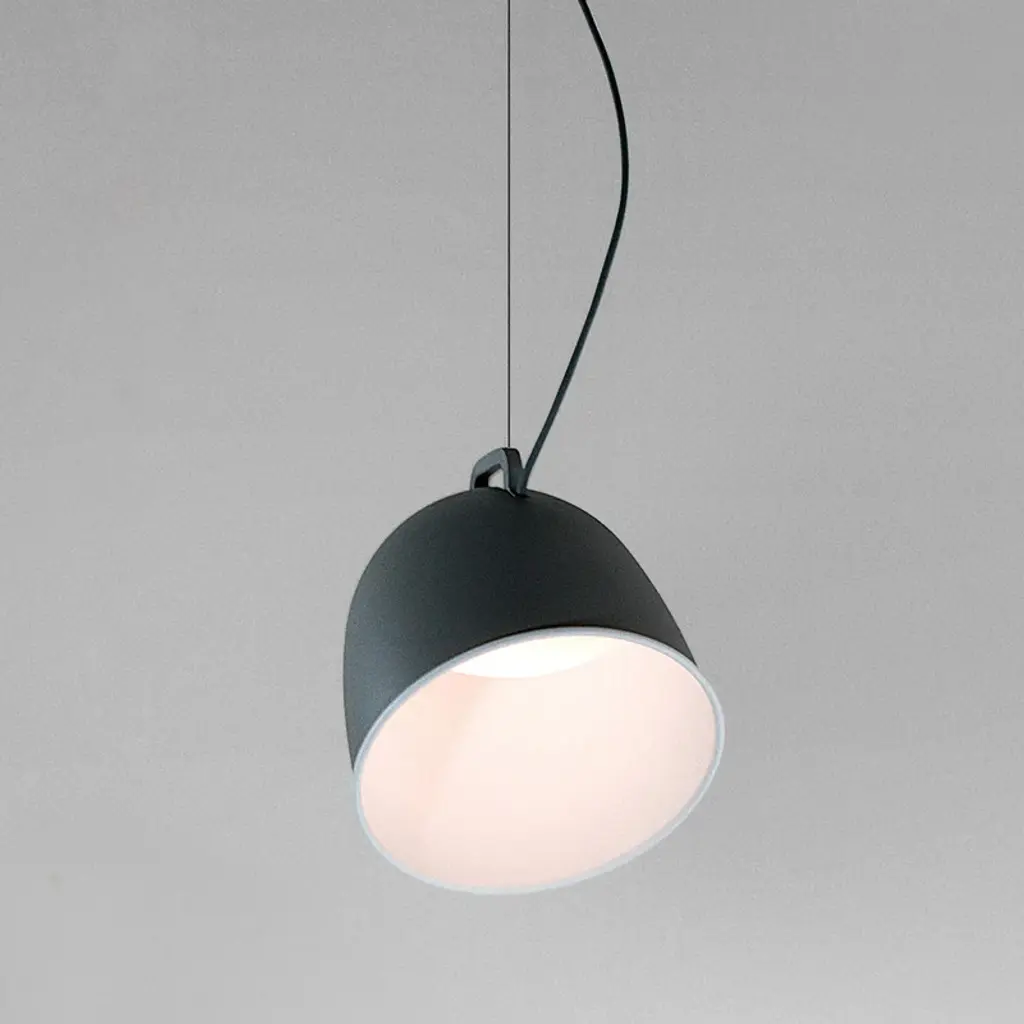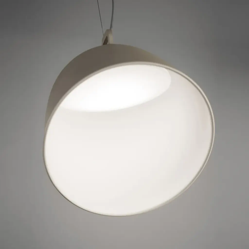 Adjustable suspension lamp with a metal structure and opaline glass diffuser. Features