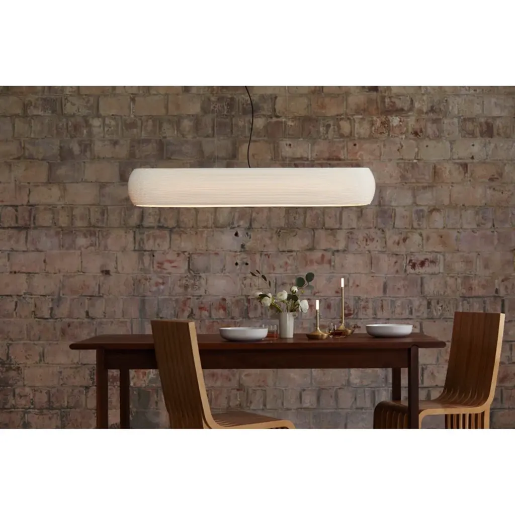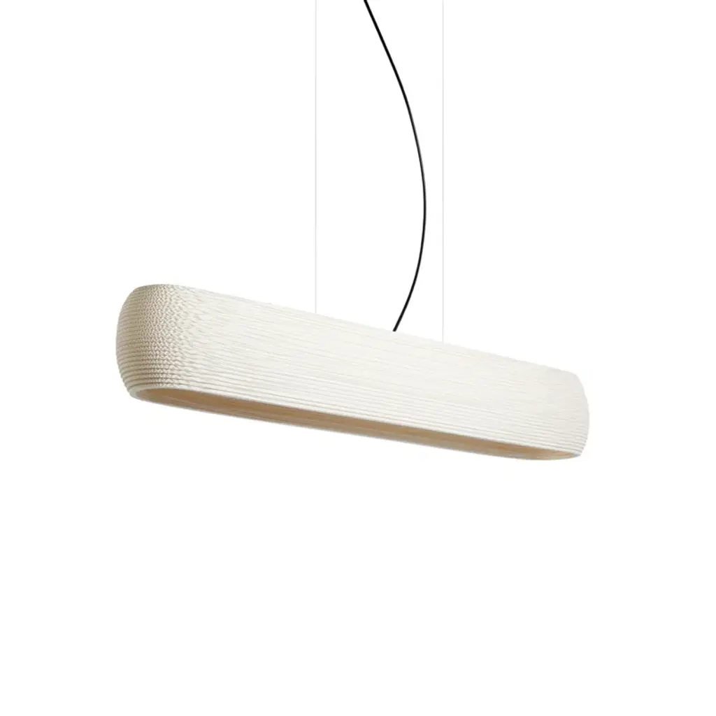 Handcrafted from recycled or pure cardboard, Graypants' flagship Scraplights provide warm, intimate, and functional lighting for any occasion or space. Depending on the finish, each piece of a Scraplights fixture is precision-cut with a laser or knife. Tough and elegant, each fixture is assembled by hand using non-toxic adhesive, and all Scraplights are treated with a non-toxic fire retardant. The Scraplights linear iterations represent a design evolution for Scraplights into warm down-lit fixtures. While romance isn't usually associated with linear fixtures, the design team purposely iterated to create organic, rounded silhouettes that would echo the softness of the light. In addition to a strong down-lighting capacity, the Scraplight linear fixtures also offer an ambient glow.