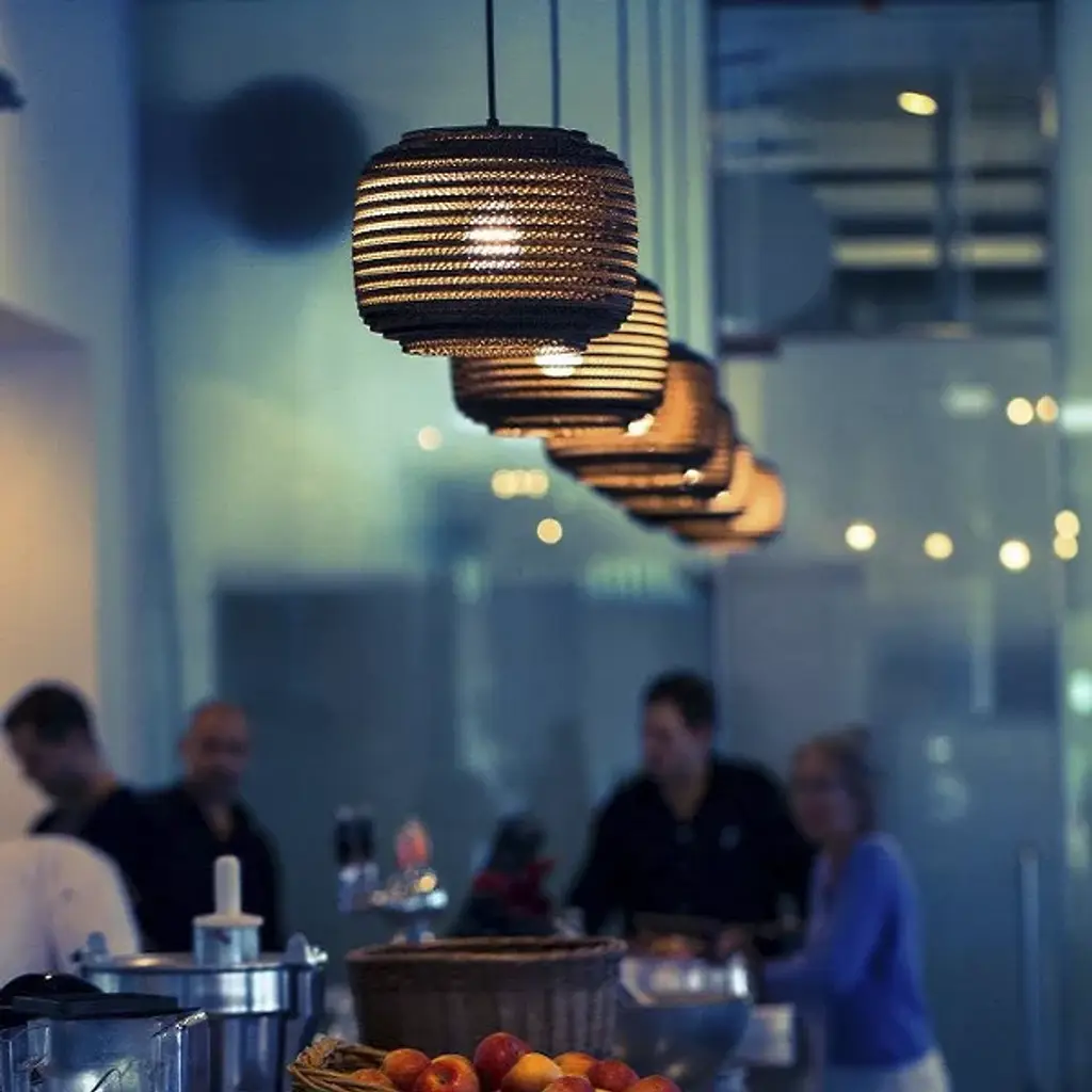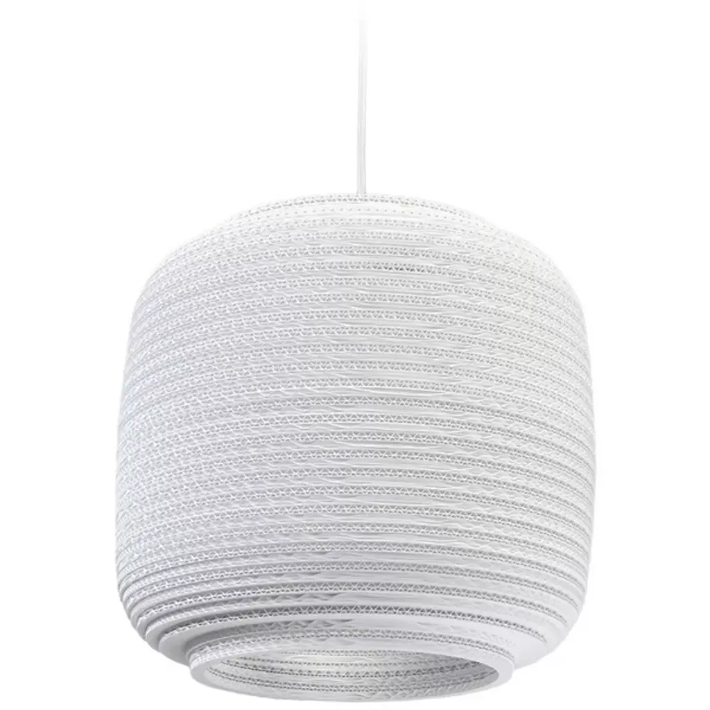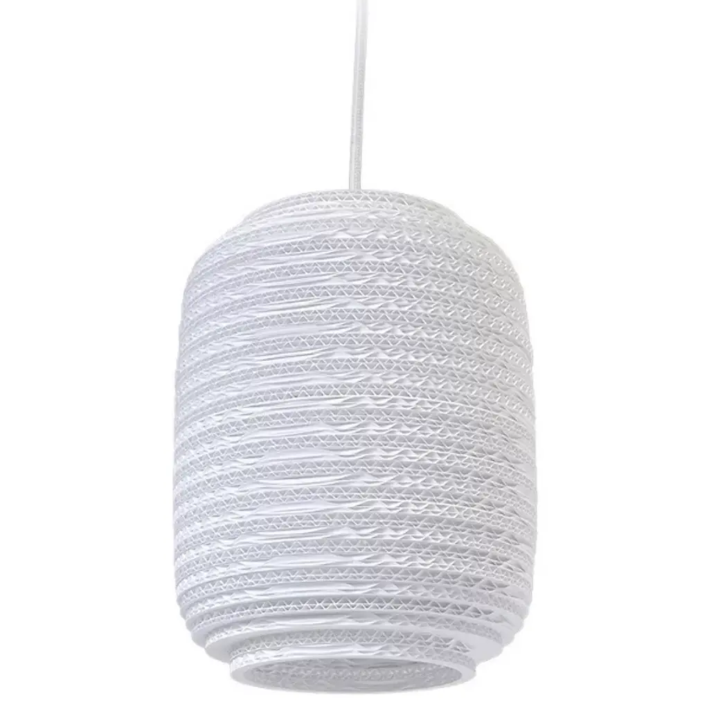 Showcasing a new way to reuse cardboard, the handmade Graypants Scraplights Ausi Pendant features a shade where light peeks through tiny nooks to create unique displays of illumination throughout a space. Its shape, not quite circular yet not exactly oval, offers a soft, warm feel to modern spaces.