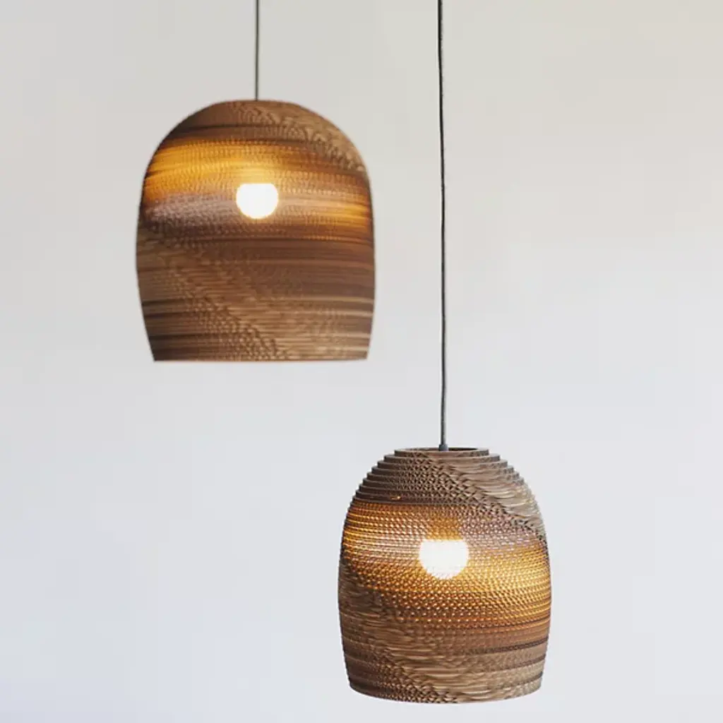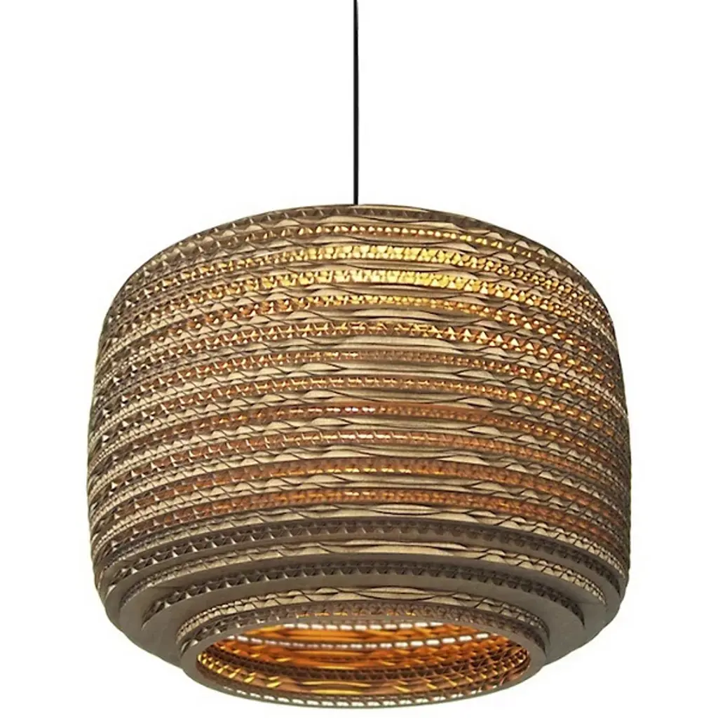 Handmade with layers of corrugated cardboard, the Graypants Scraplights Bell Pendant makes recycling design-worthy, transforming the raw material with warm light. Once lit, the intricate layers create a comforting ambience that manages to be both contemporary and rustic at the same time. Graypants maintains their ideals of sustainable production with the Scraplights series, using only FSC-certified paper and environmentally-friendly treatments for the cardboard.