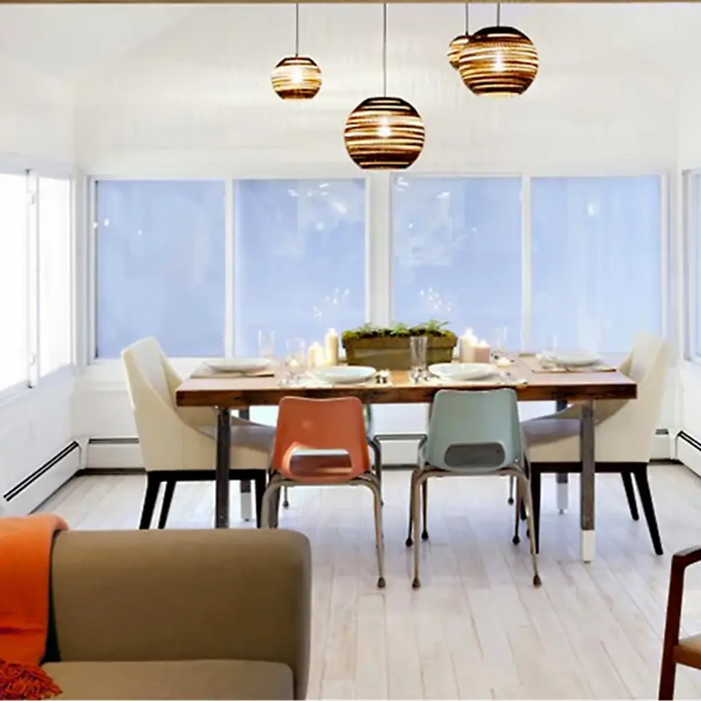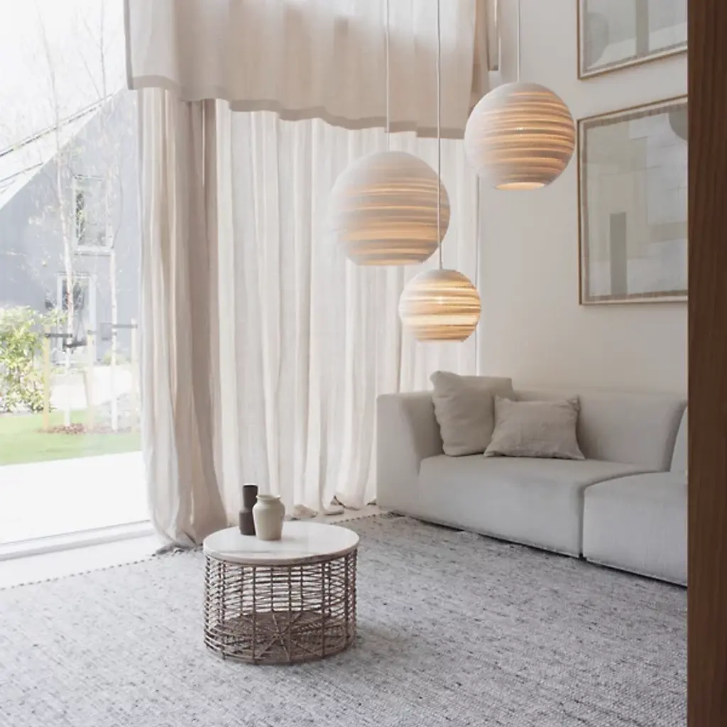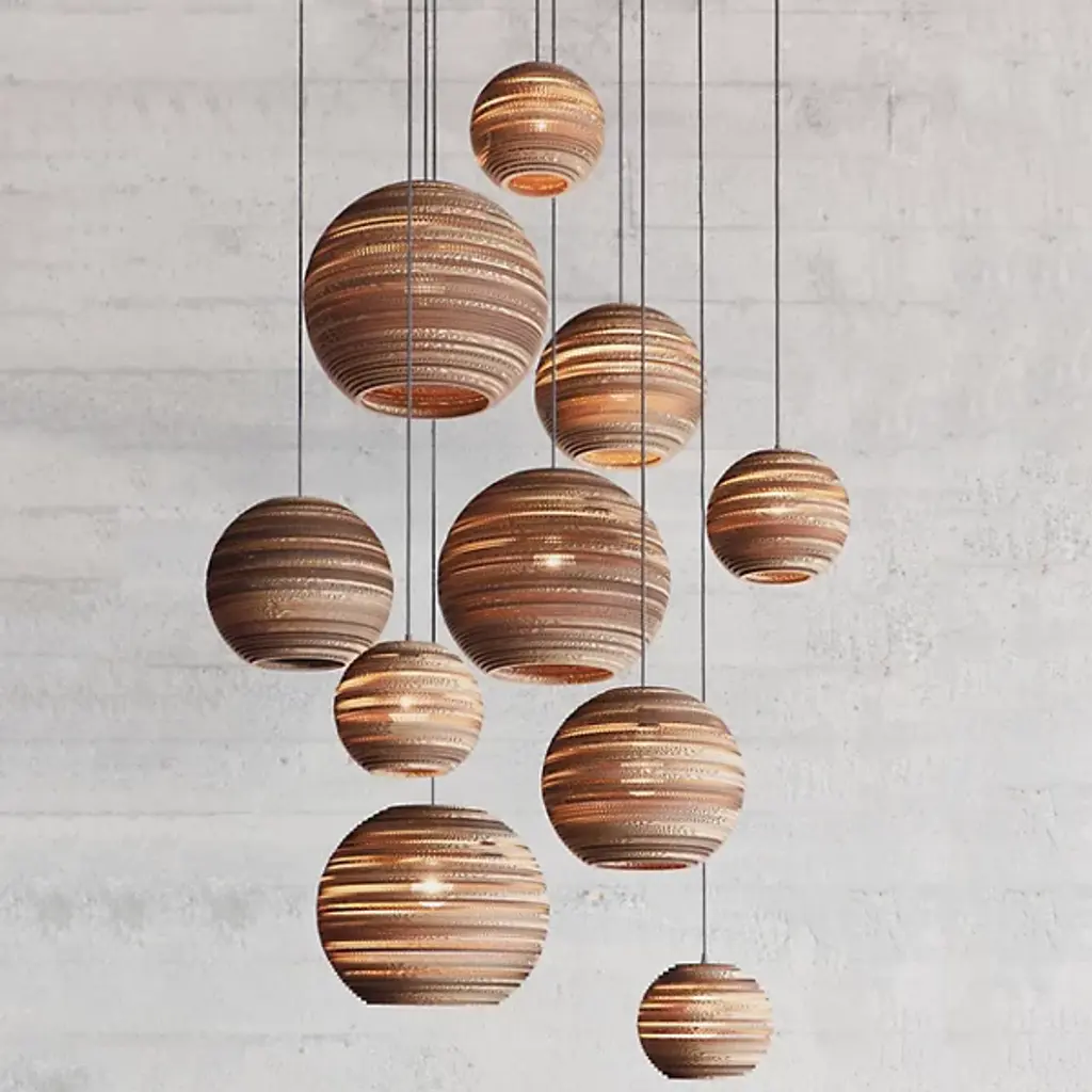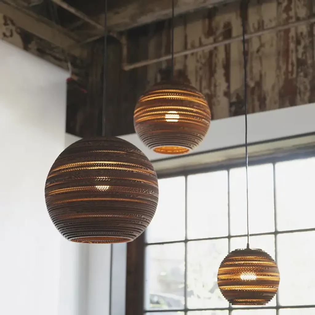 The Graypants Scraplights Moon Pendant will have guests gravitating toward it, the unique nature of the cardboard allowing light to peek through for an intimate, warm glow. MOON encourages a relaxed lifestyle, designed to bring a softening edge to modern landscapes with its eco-friendly makeup and inherent earth tones.