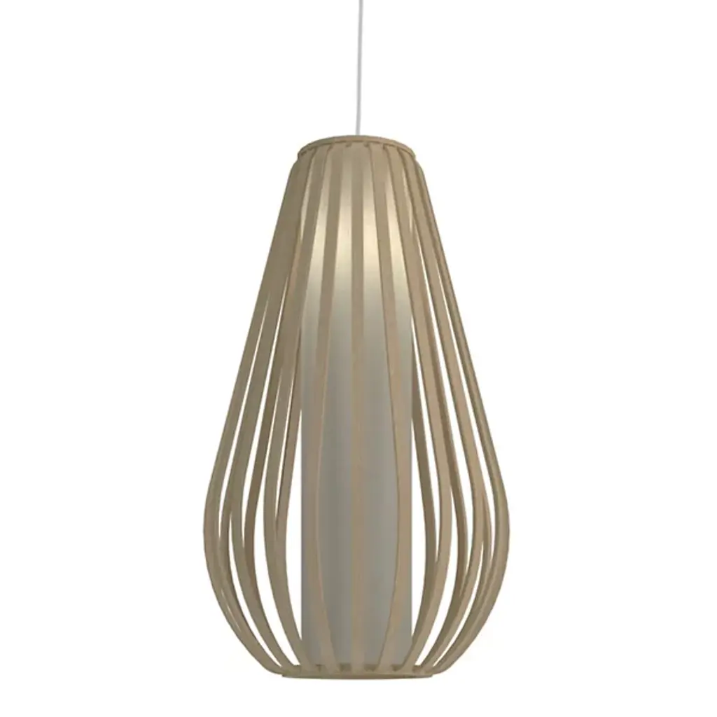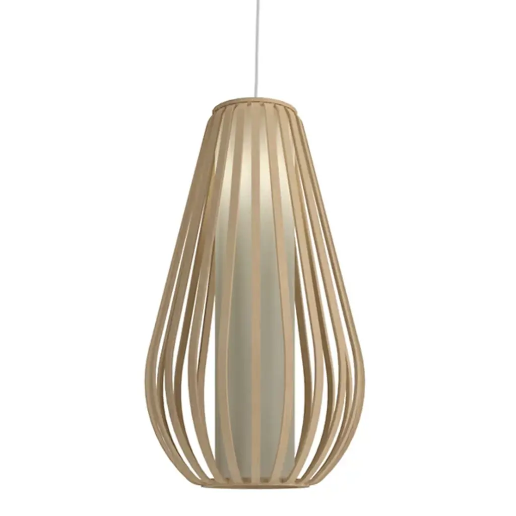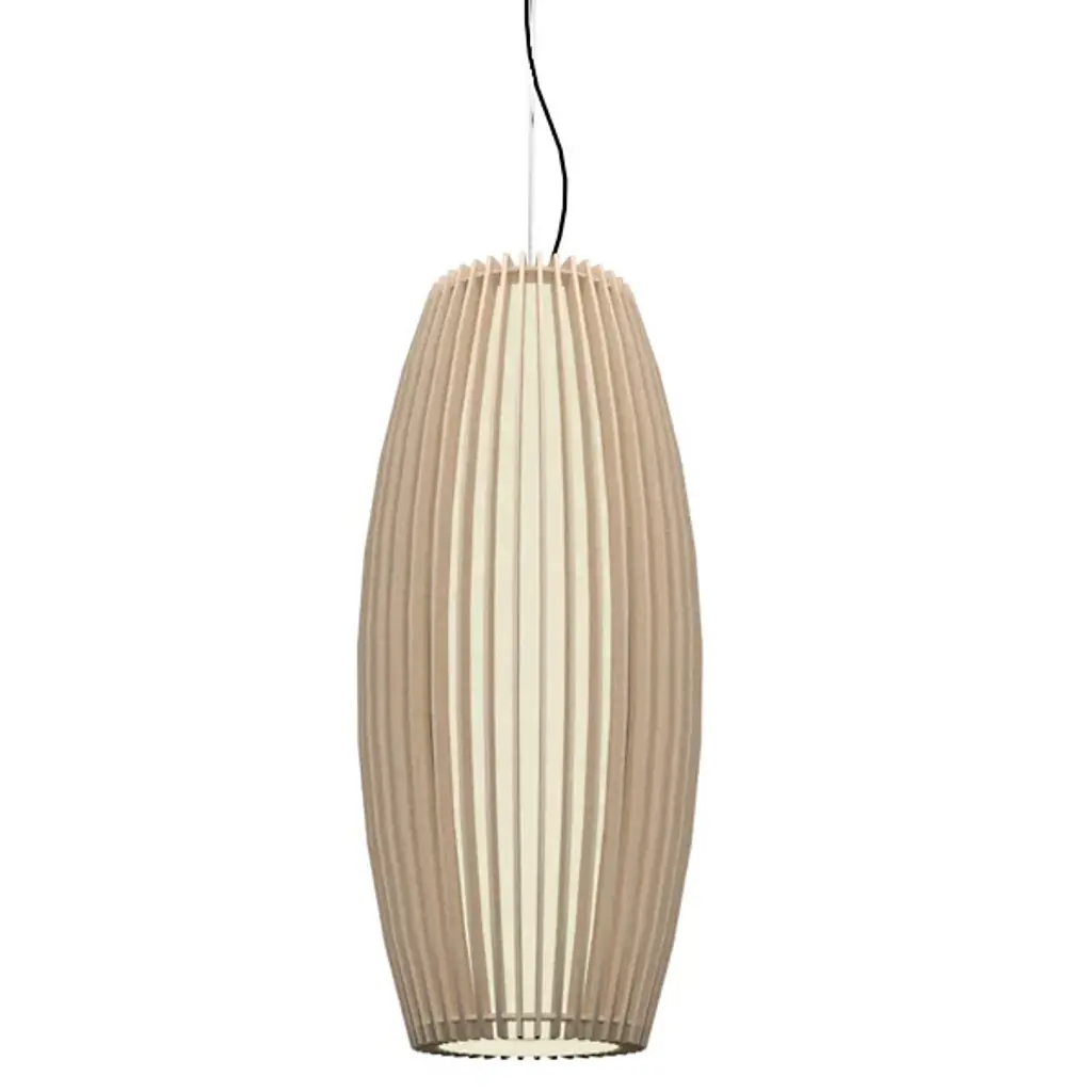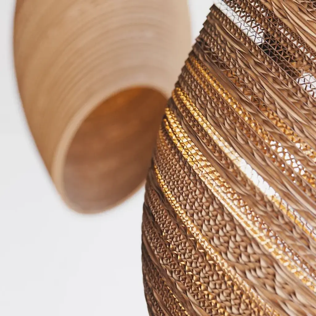 The laser-cut lines and hand assembly of the Nest Pendant from Greypants present a study in functional aesthetics combined with a softer, living shape. A shade of layered, recycled cardboard provides ambient light through the corrugated holes while an offset open base softens any harsh direct downlight. A good decision for minimalist decor best installed in dry conditions like living rooms, hallways or reading nooks, and best cleaned with compressed air and dry dusting.