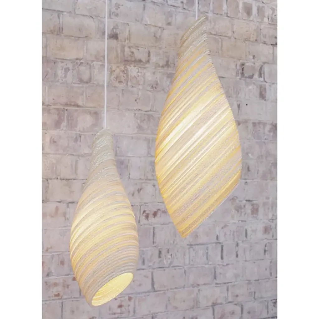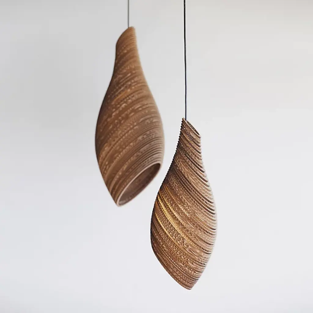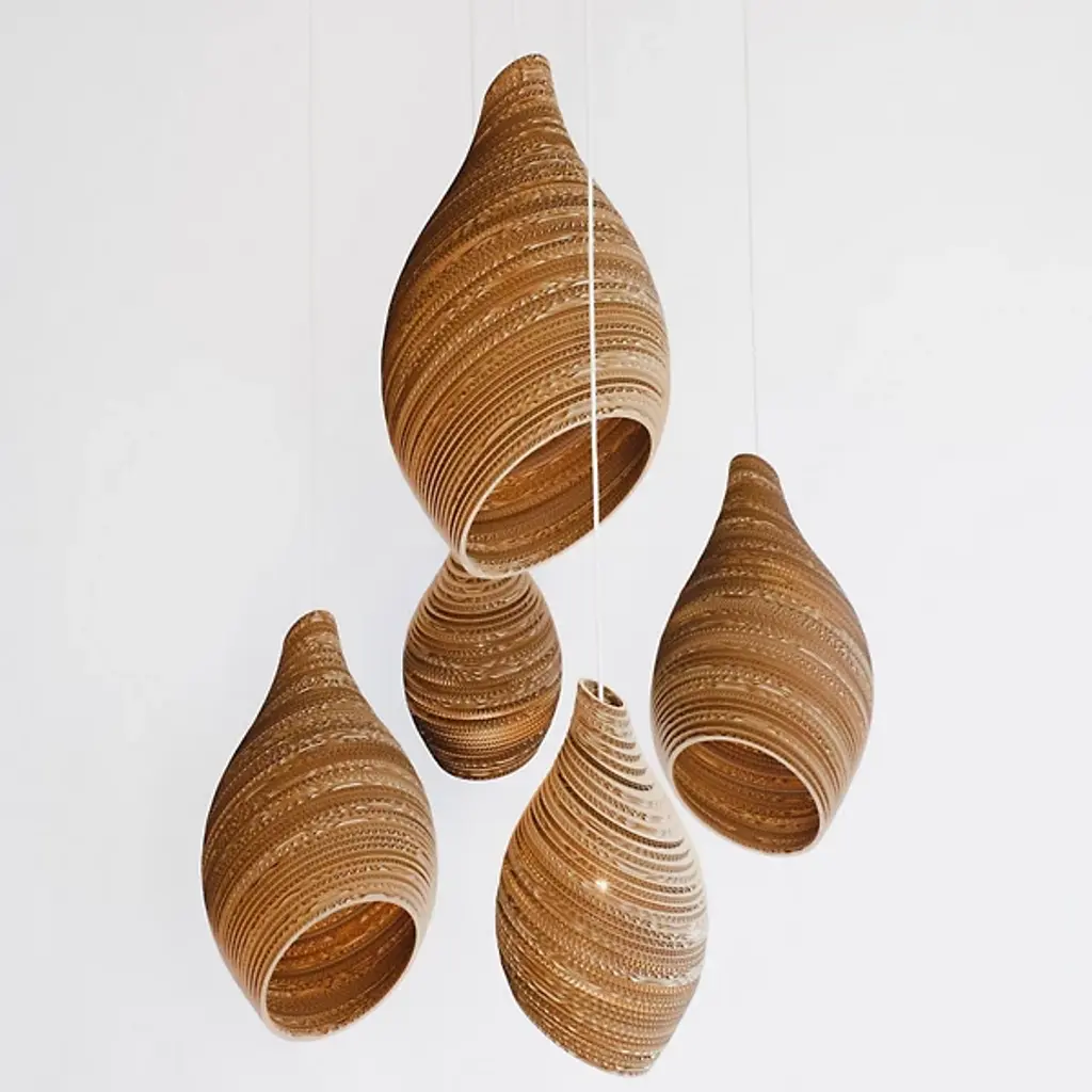 The laser-cut lines and hand assembly of the Nest Pendant from Greypants present a study in functional aesthetics combined with a softer, living shape. A shade of layered, recycled cardboard provides ambient light through the corrugated holes while an offset open base softens any harsh direct downlight. A good decision for minimalist decor best installed in dry conditions like living rooms, hallways or reading nooks, and best cleaned with compressed air and dry dusting.