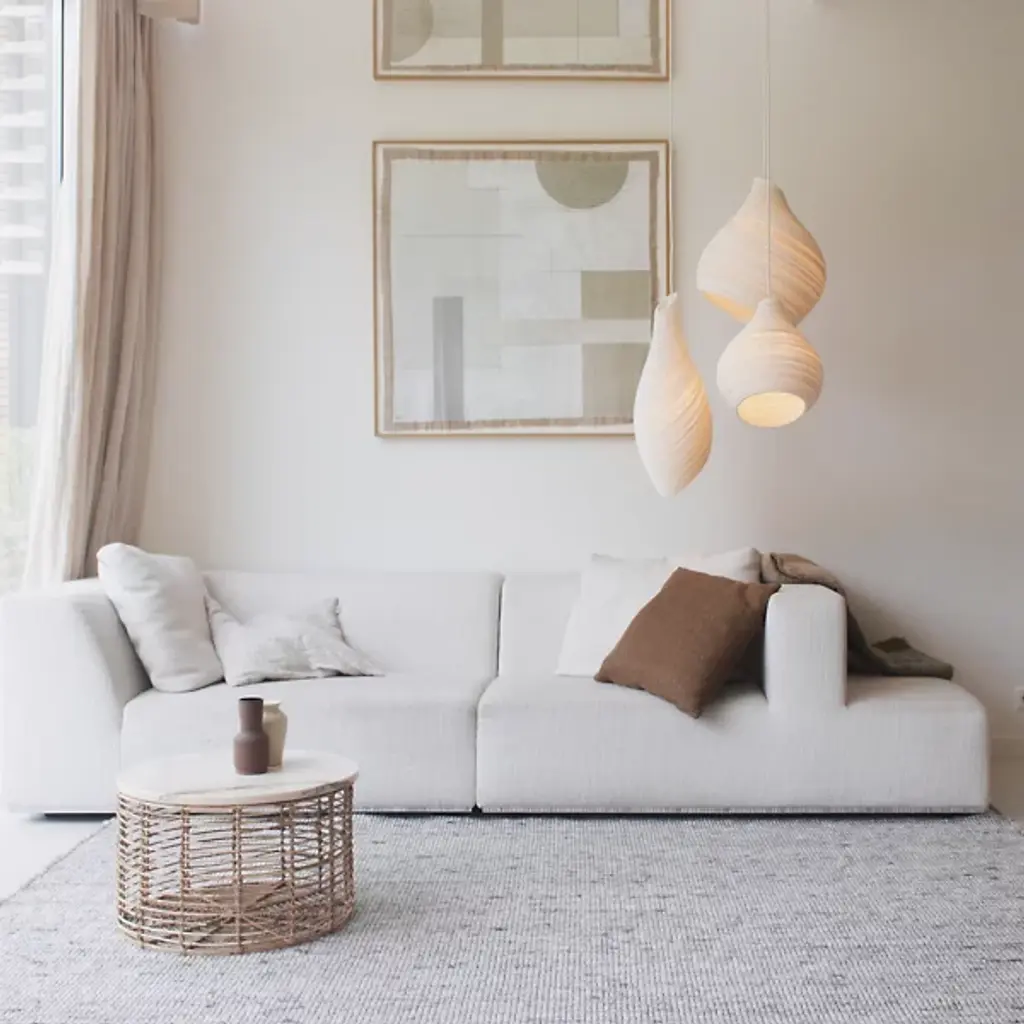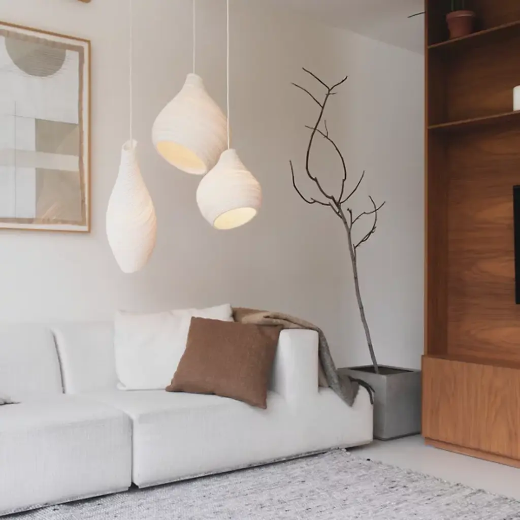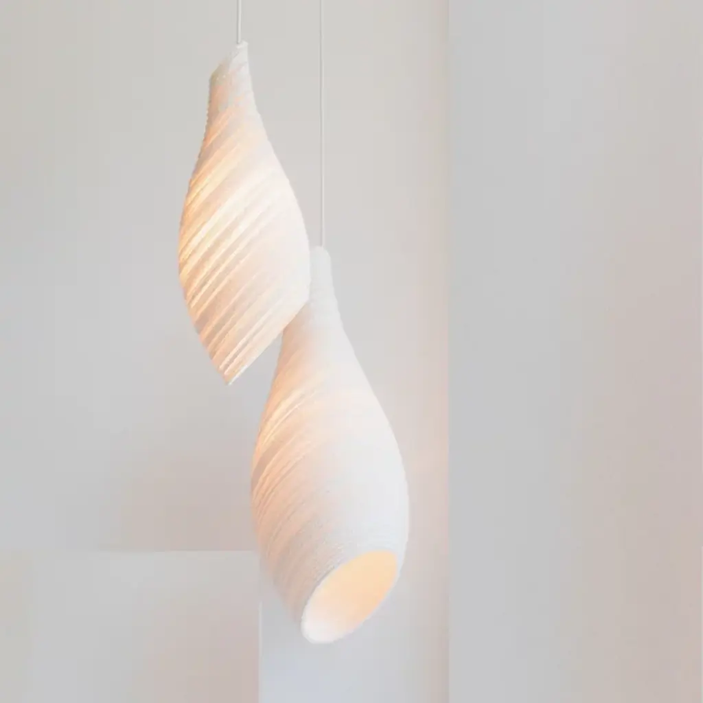 The laser-cut lines and hand assembly of the Nest Pendant from Greypants present a study in functional aesthetics combined with a softer, living shape. A shade of layered, recycled cardboard provides ambient light through the corrugated holes while an offset open base softens any harsh direct downlight. A good decision for minimalist decor best installed in dry conditions like living rooms, hallways or reading nooks, and best cleaned with compressed air and dry dusting.
