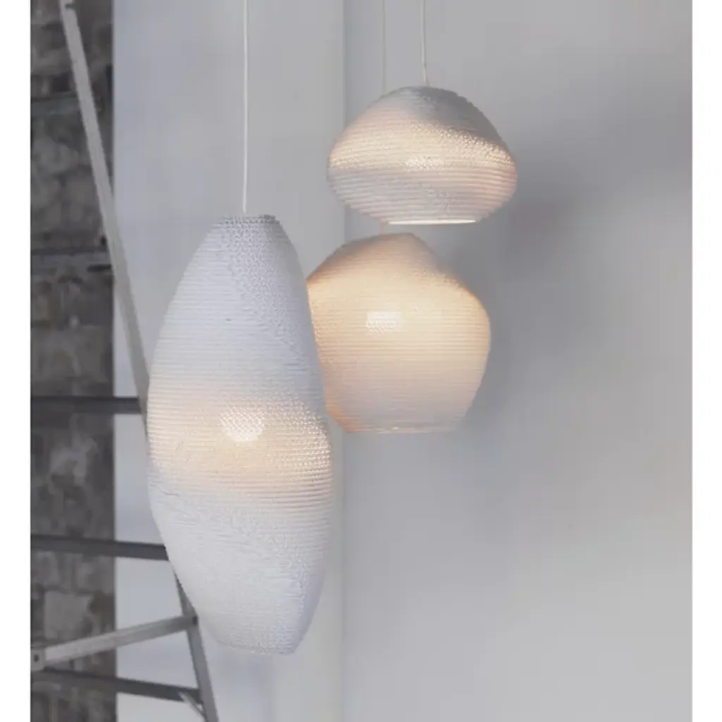 Save the environment and look good doing it. The Pebbles Alki Pendant by Graypants is an environmentalist's dream: recycled cardboard laser cut with impossible precision and handcrafted with non-toxic adhesive makes it a sure stand out in your living space. A single, thin downrod contains a bare bulb. When turned on, this pendant comes to life, showcasing the intricacy of the laser-cut design while gleaming with a clean, soft glow. No other like it, the Graypants is a sure stand out for your living space.