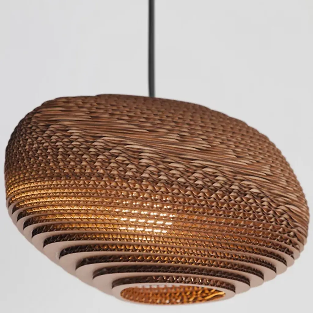 Save the environment and look good doing it. The Pebbles Alki Pendant by Graypants is an environmentalist's dream: recycled cardboard laser cut with impossible precision and handcrafted with non-toxic adhesive makes it a sure stand out in your living space. A single, thin downrod contains a bare bulb. When turned on, this pendant comes to life, showcasing the intricacy of the laser-cut design while gleaming with a clean, soft glow. No other like it, the Graypants is a sure stand out for your living space.