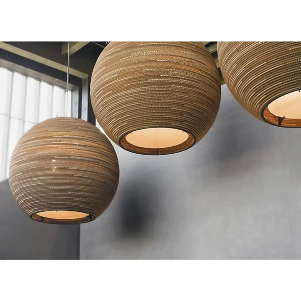 Handmade with layers of corrugated cardboard, the Graypants Scraplights Sun Pendant transforms the raw material with a unique type of warm light. Left in its natural color, the fixture manages to feel contemporary and rustic at the same time, creating a comforting atmosphere once lit. Graypants maintains their ideals of sustainable production with the Scraplights series, using only FSC-certified paper and environmentally-friendly treatments for the cardboard.