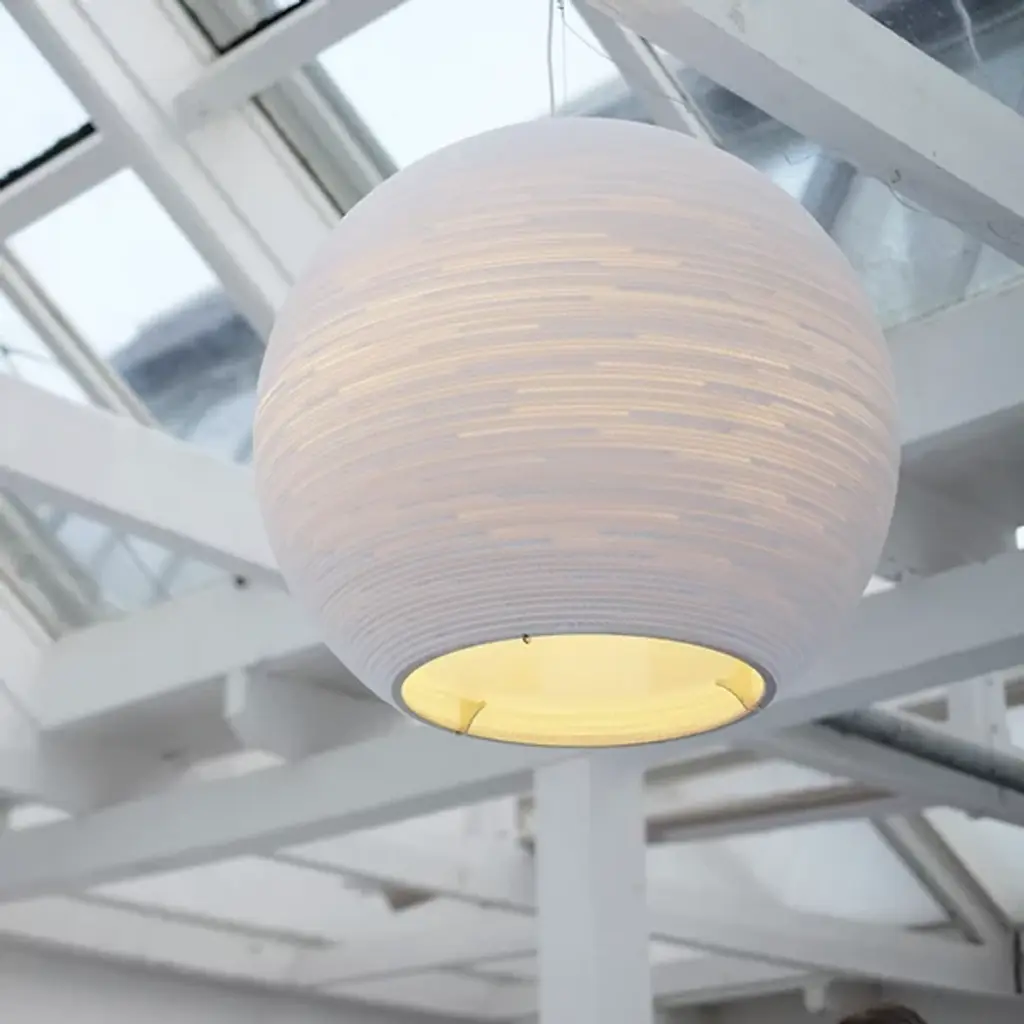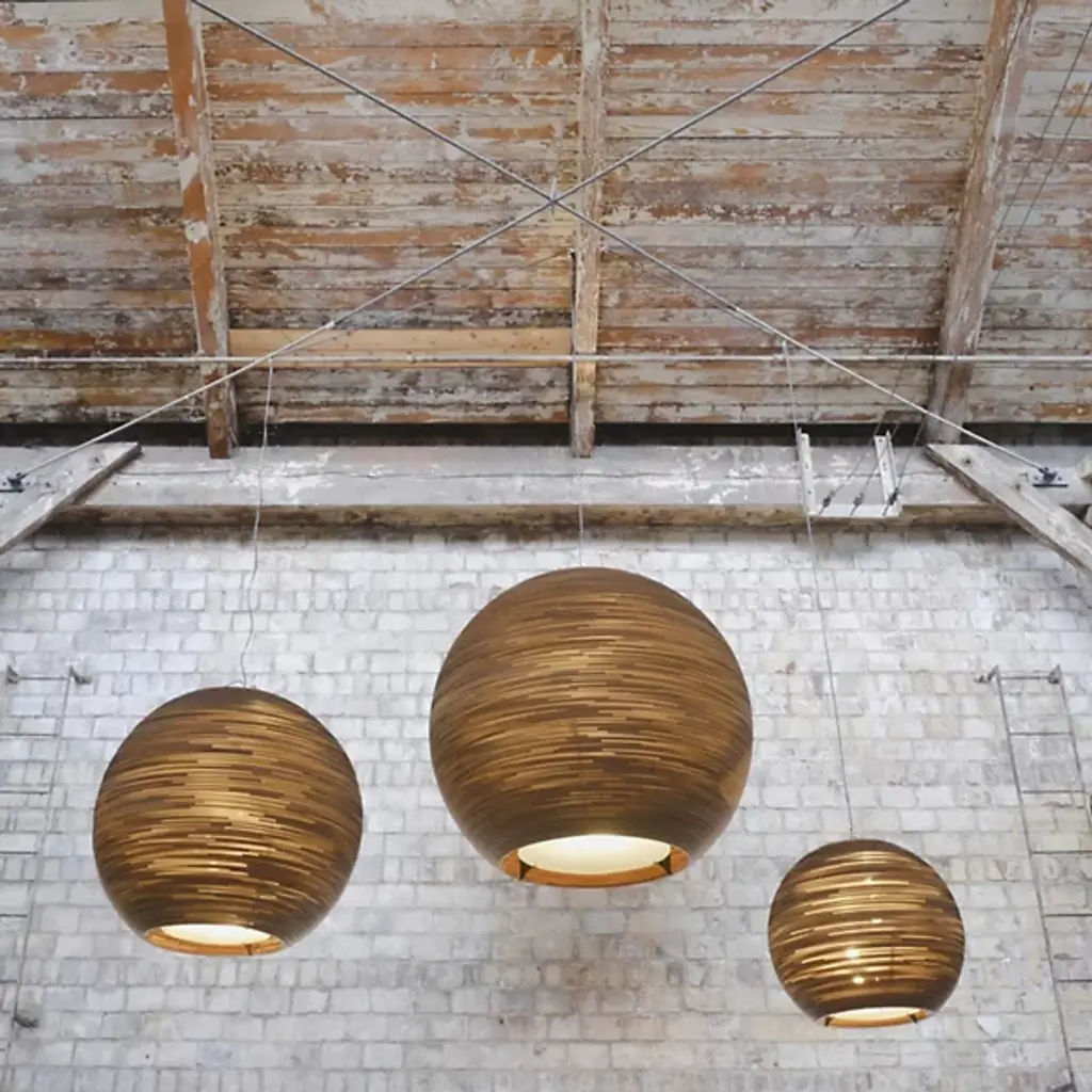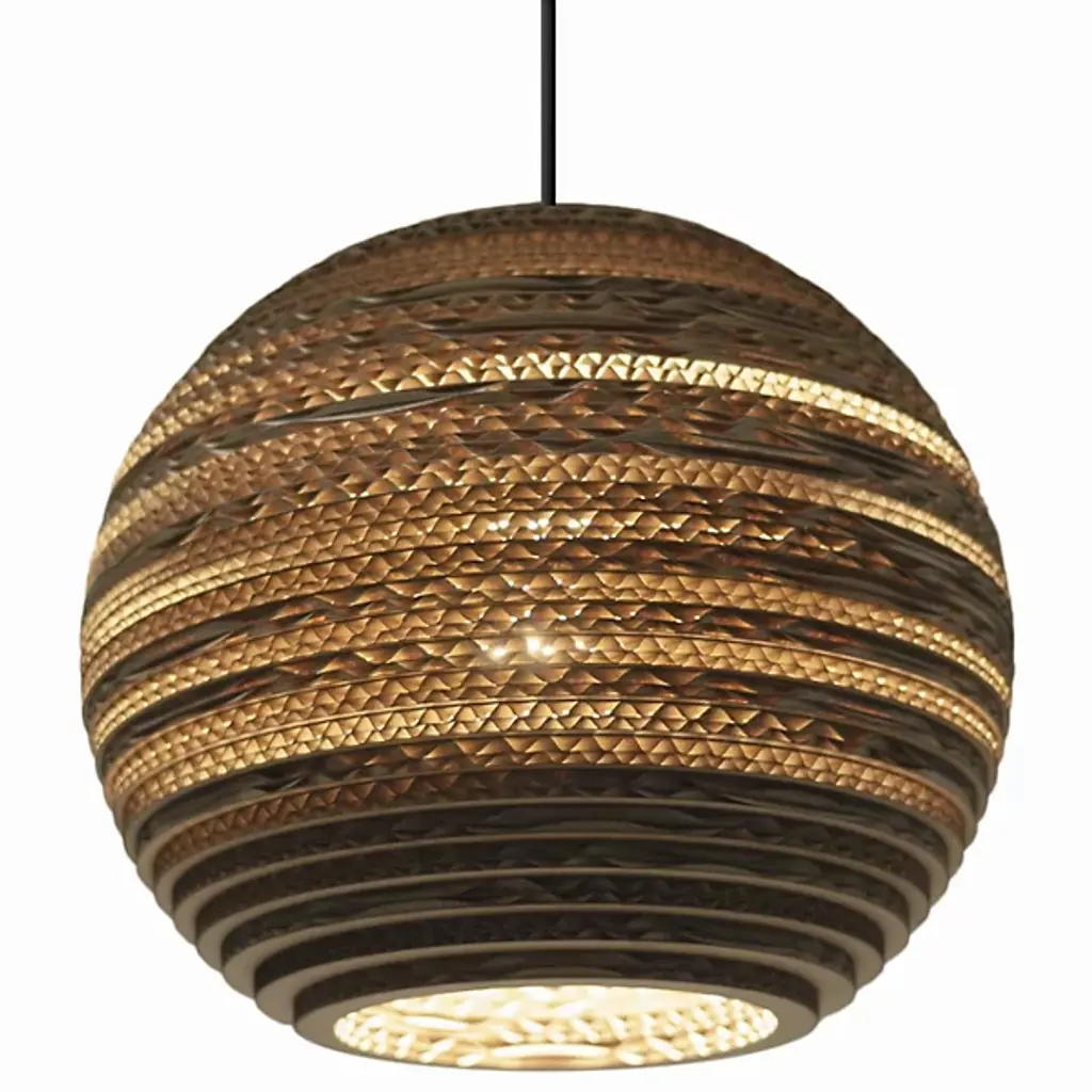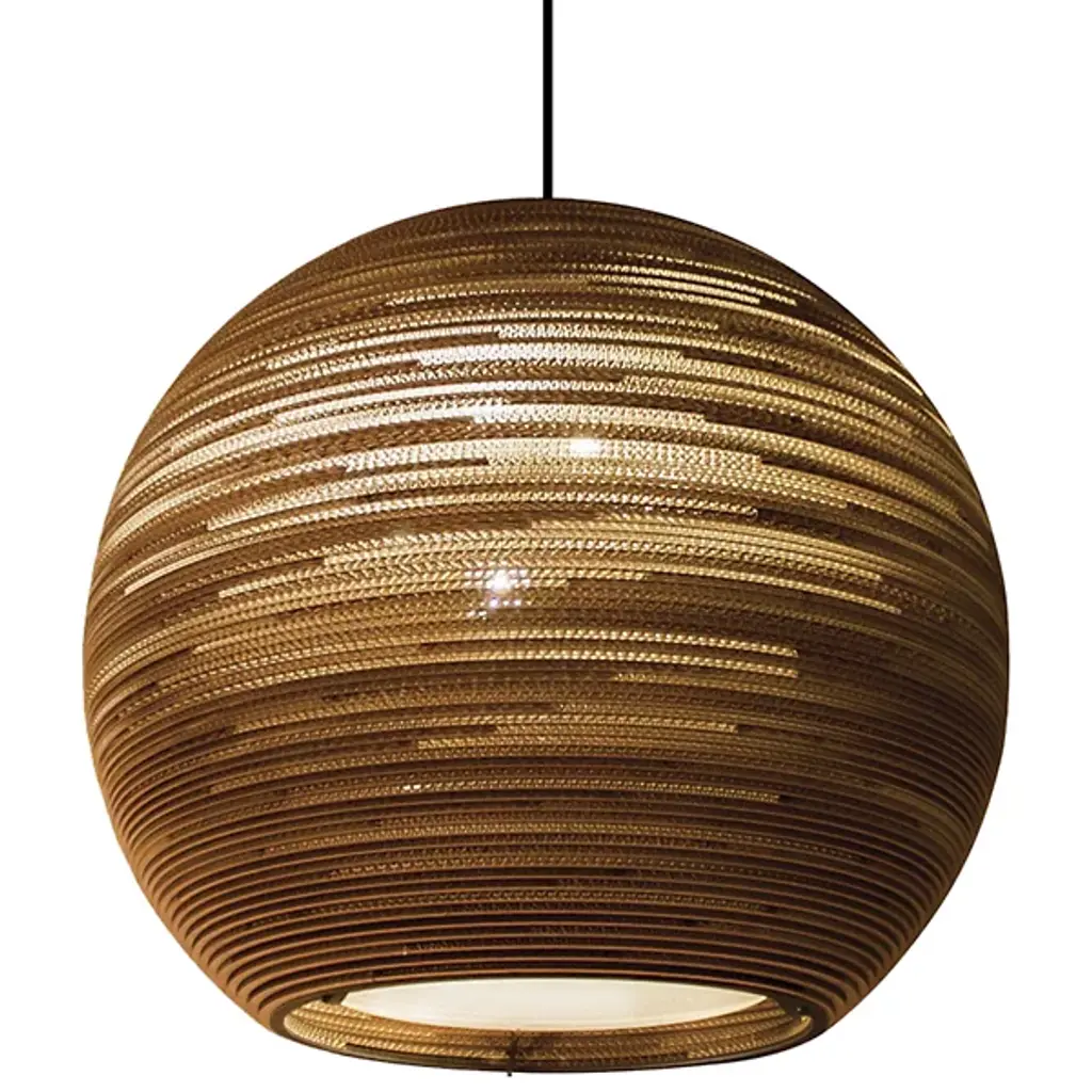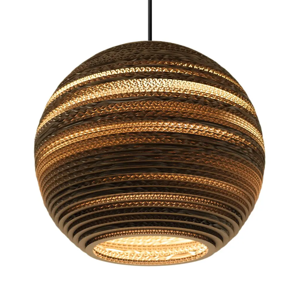 Handmade with layers of corrugated cardboard, the Graypants Scraplights Sun Pendant transforms the raw material with a unique type of warm light. Left in its natural color, the fixture manages to feel contemporary and rustic at the same time, creating a comforting atmosphere once lit. Graypants maintains their ideals of sustainable production with the Scraplights series, using only FSC-certified paper and environmentally-friendly treatments for the cardboard.