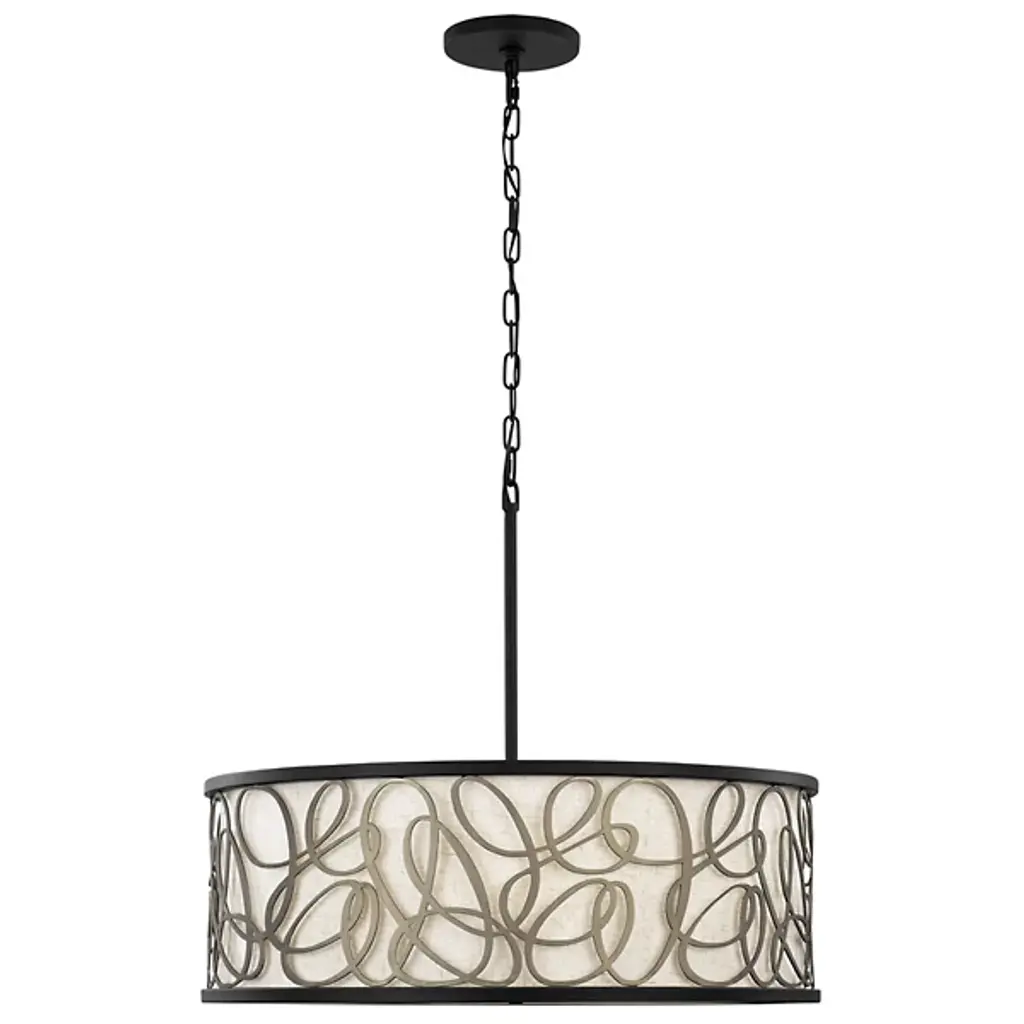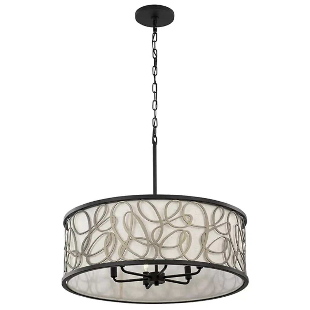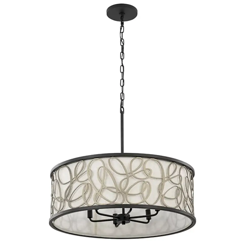 The Scribble Pendant from Varaluz is designed by Ron Henderson. It exudes contemporary elegance. Your meticulously crafted pendant, composed of durable steel, takes on a drum shape. The glass shade material tempers the brilliant, candelabra-style lighting. Scribble takes inspiration from century-old Japanese art, creating a mesmerizing, curvy design. Effortlessly adjust the brightness level using a separately sold ELV dimmer. A downrod attaches to linked chains supported by a ceiling canopy, keeping the pendant suspended in midair.