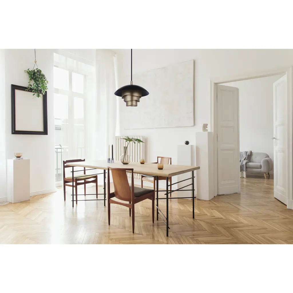 Architectural elegance making a bold & unconventional statement beautifully describes our mesh triple-tiered domed pendant. Part of our Sculptural Statements Collection, this adjustable height rod-hung sleek 19" dome is finished in your choice of flat black or matte white with triple-tiered waves of matte gold mesh. Featuring an integrated dimmable 18W LED disk, this indoor/outdoor damp rated pendant can be mounted on a flat or sloped ceiling up to 60 degrees.