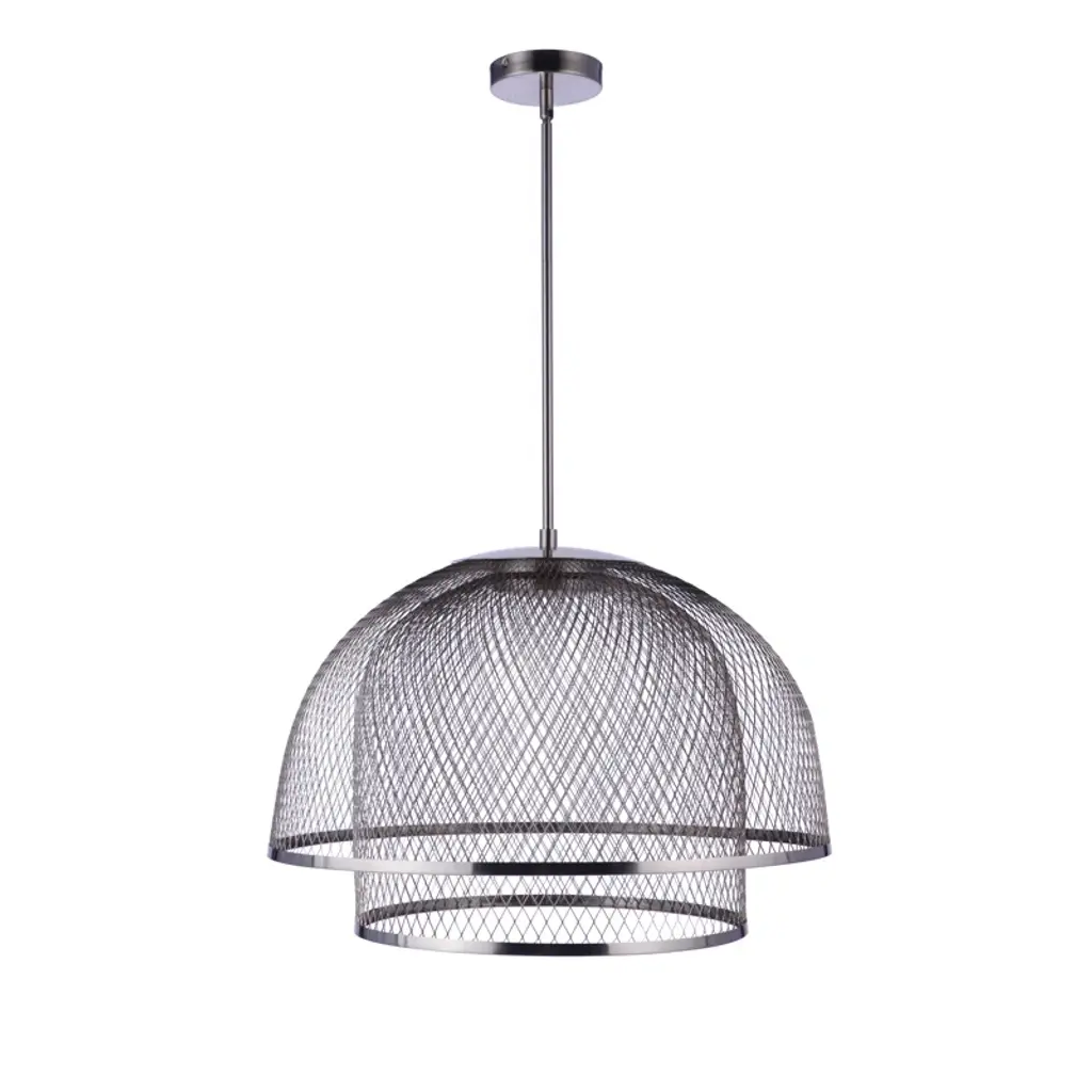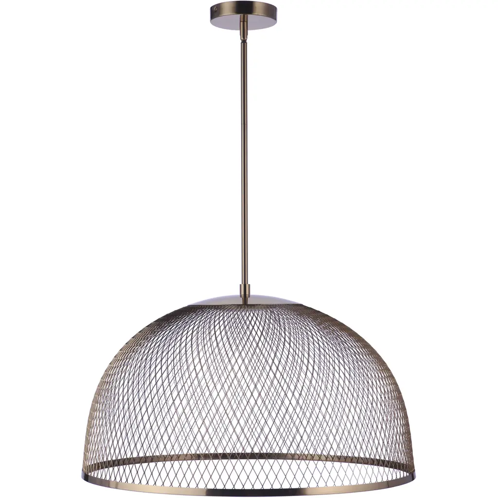Our Sculptural Statements mesh dome pendant embraces the best of the minimaluxe trend by combining the beautiful texture of wide open mesh with a large 24.25" dome silhouette illuminated with an almost hidden integrated dimmable 18W LED disk.