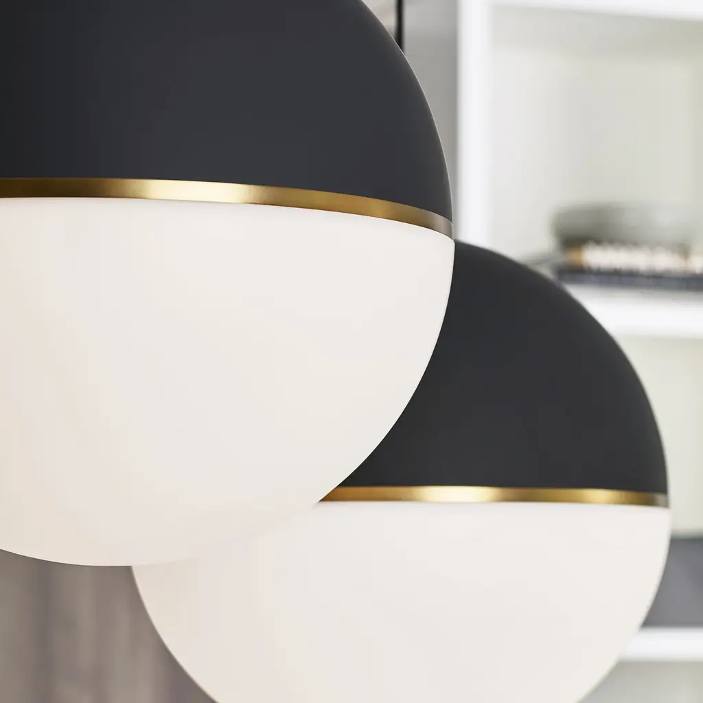 Transforming a sphere into mid-century work of art, the Akova X-Large Pendant by Sean Lavin bands together contemporary finishes with a smooth acrylic diffuser to project a beautiful glow. It offers an elegant contemporary design featuring an upper metal housing available in multiple contemporary finishes. This pendant is beautiful as a standalone piece or clustered in multiples with other complementary sizes in the Akova family.