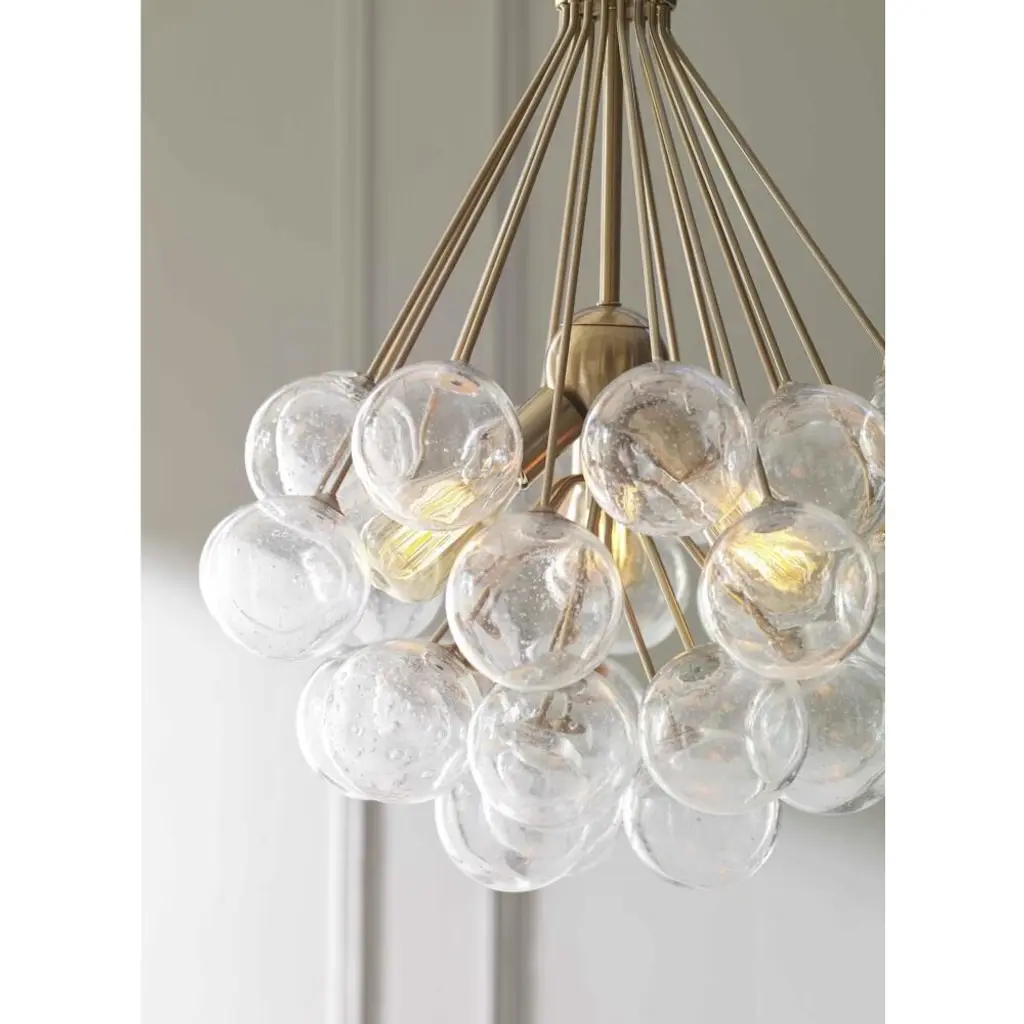 The Bronzeville three light indoor pendant in satin brass supplies ample lighting for your daily needs, while adding a layer of today's style to your home's d?cor. Bronzeville brings a daring, upscale element of mid-century modern design to any space. Hand blown, Seeded Glass globes encircle warm, glowing, filament lamps, diffusing the light to create a serene ambiance of light and shadow. Available in two finishes.