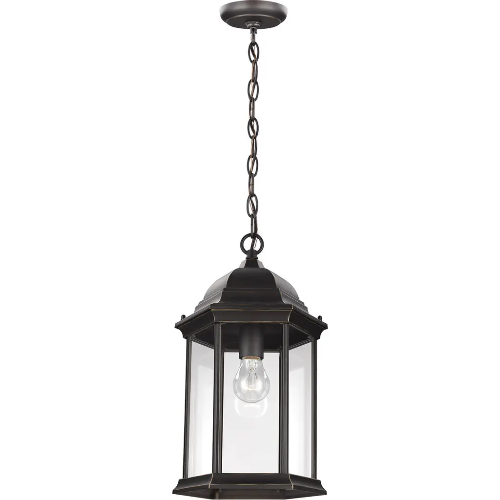 Inspired by traditional Parisian style lanterns, the Shepherd outdoor lighting collection by features a decorative shepherd's crook, a latched and hinged front door panel, an inner Case White glass shade, Clear Seeded outer glass to create the visual appearance of vintage gas lanterns. Made of a proprietary composition for outstanding durability even in the harshest elements, the collection has a 5-year warranty. Offered in either Dark Weathered Zinc or Heritage Copper finishes. Designer: Sean Lavin Canopy: D:5 1/8'' H:1'' Round Shade/Glass: opal etched glass and clear seeded glass Lamping: 1 A19 Medium 75 watt light bulb Voltage: 120 Bulb Included: No Safety Rating Location: damp Max Chain Length (in.): 60