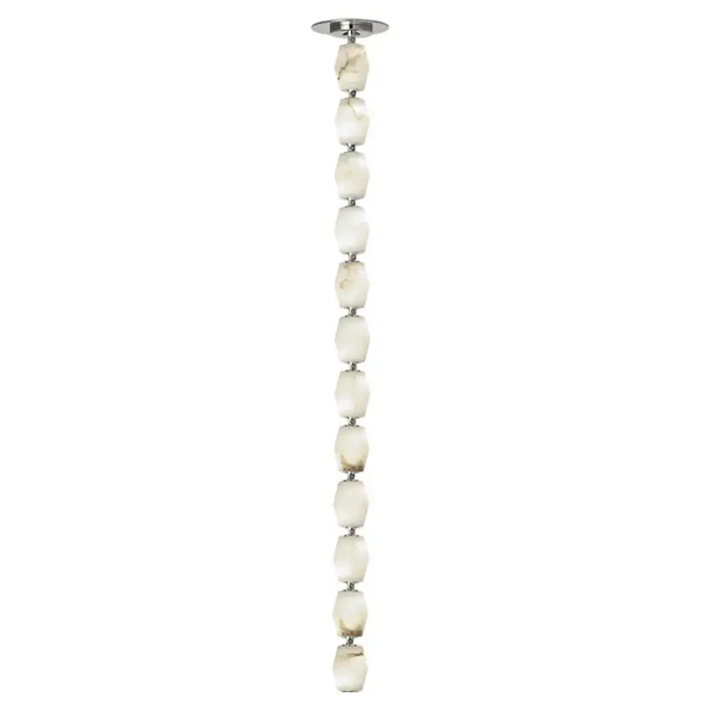 The Collier by Sean Lavin exudes luxury and sophistication. Solid faceted Alabaster Glass fully encapsulates integrated LED modules interlocked by solid brass connectors. Available in multiple-length strands for the ultimate customization. Creates an incredible light sculpture with stunning illumination. The Collier features solid faceted Alabaster Glass manufactured in the Czech Republic. The natural brass connectors are custom engineered to support the glass and add additional beauty to the piece. Available with remote or surface mounted driver options. Predetermined length options allow for easy ordering with virtually unlimited versatility. Contact factory for custom configurations.