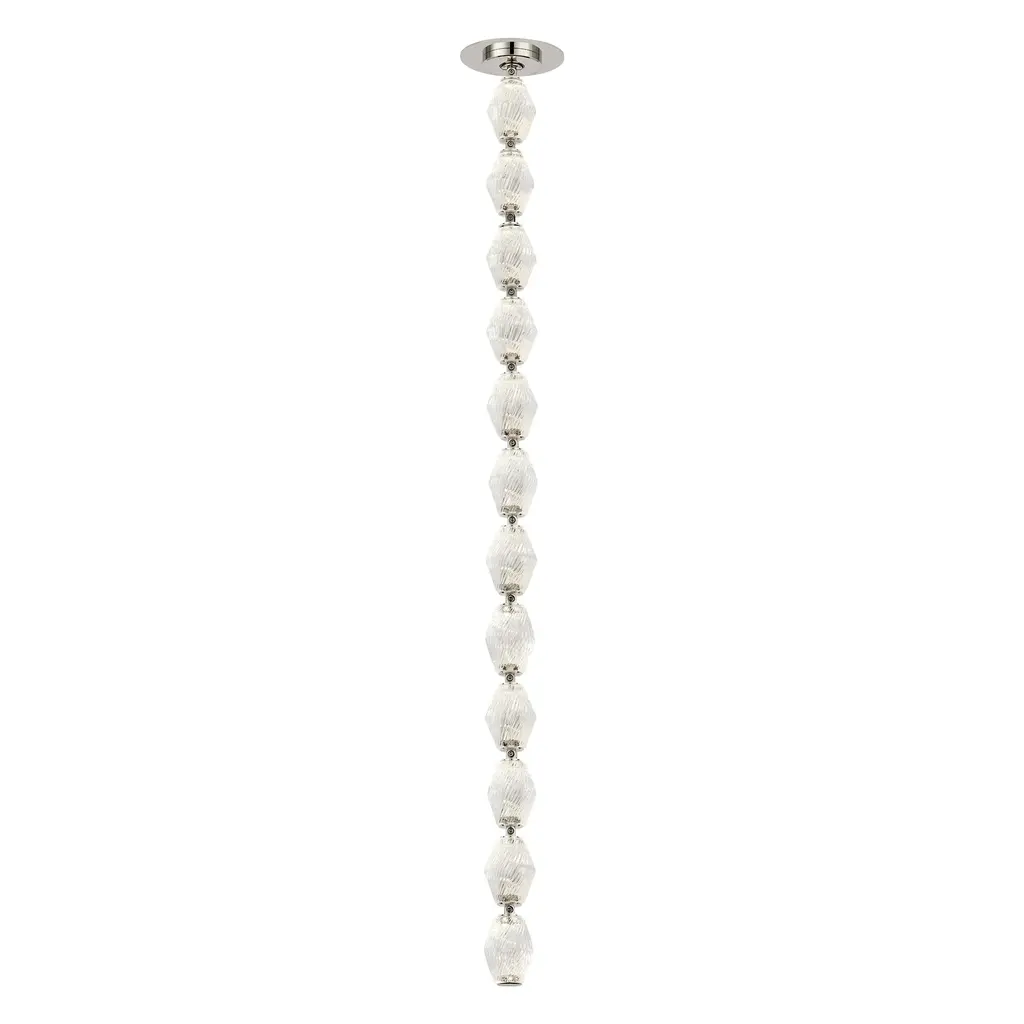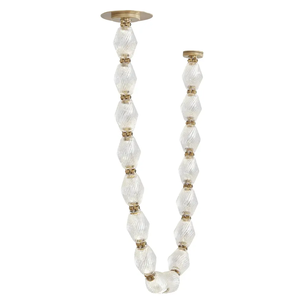 The Sean Lavin Collier Pendant Chandelier exudes luxury and sophistication. Solid faceted crystal fully encapsulates integrated LED modules interlocked by solid brass connectors. Available in multiple length strands for the ultimate in customization. Creates an incredible light sculpture with stunning illumination. The Collier features solid faceted crystal manufactured in the Czech Republic. The natural brass connectors are custom engineered to support the crystal and add additional beauty to the piece. Available with remote or surface mounted driver options. Predetermined length options allow for easy ordering with virtually unlimited versatility. Features