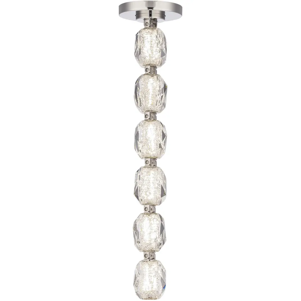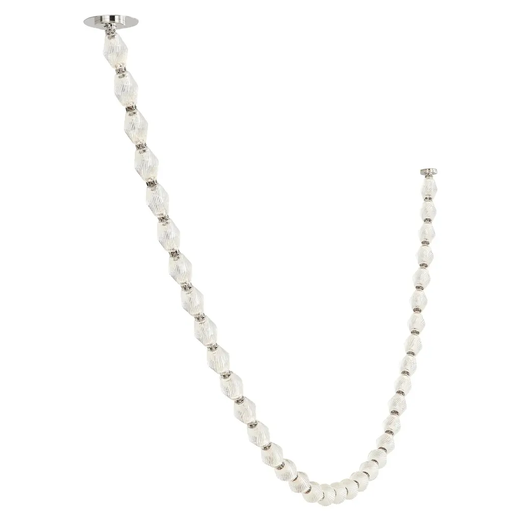 The Sean Lavin Collier Pendant Chandelier exudes luxury and sophistication. Solid faceted crystal fully encapsulates integrated LED modules interlocked by solid brass connectors. Available in multiple length strands for the ultimate in customization. Creates an incredible light sculpture with stunning illumination. The Collier features solid faceted crystal manufactured in the Czech Republic. The natural brass connectors are custom engineered to support the crystal and add additional beauty to the piece. Available with remote or surface mounted driver options. Predetermined length options allow for easy ordering with virtually unlimited versatility. Features